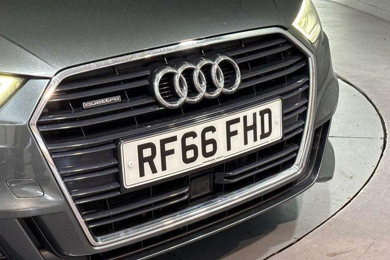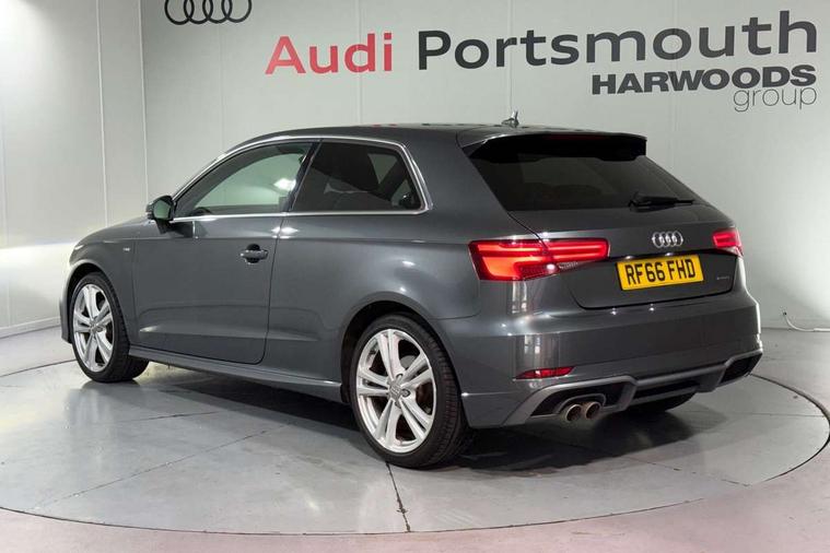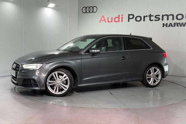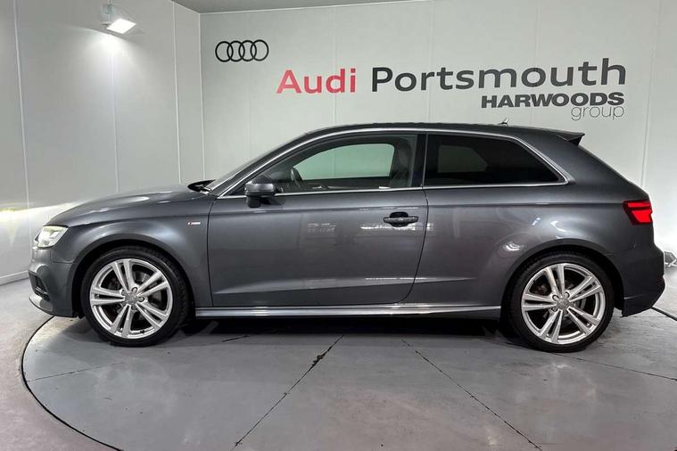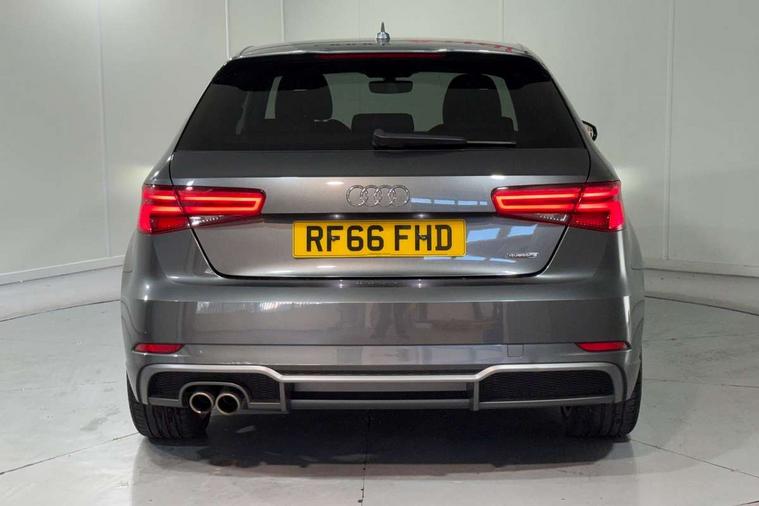 Audi connect, Audi drive select, Audi smartphone interface, Colour driver's information system display, Mobile telephone preparation - bluetooth interface, Service interval indicator, Speed limit display, Voice control system, Diesel particulate filter, 2 USB ports, Audi music interface, Auxiliary input socket, DAB Digital radio, Aluminium window trim, Body colour bumpers, Body colour door mirrors with integral indicators, Body colour roof spoiler, Chrome exhaust tailpipes, Electric front windows, Electric operated/heated door mirrors, Heated windscreen washer jets, LED daytime running lights, Matt black radiator grille, Rear wiper, S Line body styling, Sport specific side air inlet grille and diffuser insert, 3 adjustable rear headrests, 3 spoke flat bottomed multi-function leather steering wheel, 4 lashing points to secure luggage, Adjustable front armrest, Black cloth headlining, Dual zone electronic climate control, Front and rear interior lights with delay, Front passenger seat isofix location point, Front/rear floor mats, Height adjustable front seats, Height/depth adjustable steering column, Illuminated door sills, Illuminated glovebox, ISOFIX child seat preparation+airbag deactivation, Jack and tool kit, Stainless steel pedals, Steering wheel gearshift paddles, Storage compartment in centre console, Storage compartment under front seats, Storage compartments in doors, LED interior light pack - A3/RS3, Light and rain sensor pack - A3 Hatchback/Sportback, Storage and luggage pack - A3/RS3, 3 point seatbelts on all seats, ABS/EBD, Active bonnet, Active front headrests, ASR, Curtain airbags, Driver and passenger side airbags, Driver/Front Passenger airbags, Drivers knee airbag, EDL, Electromechanical parking brake, ESC - Electronic Stability Control + traction control, Front passenger airbag deactivation, Manual rear child locks, Multi-Collision braking, Seatbelt warning, Tyre pressure monitor, Warning triangle and first aid kit, Anti theft alarm, Anti-theft wheel bolts, Remote control central locking, Thatcham category 1 alarm + immobiliser, Aluminium air vent surrounds, Aluminium trim elements, Space saver spare wheel,