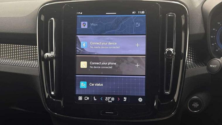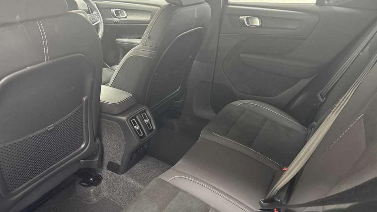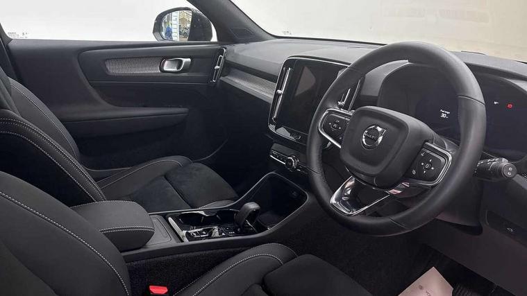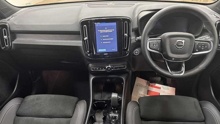 12.3" Progressive Driver Display, 9" centre console portrait touch screen, Adjustable steering wheel force, Android auto (Wired), Apple carplay (wired), Bluetooth handsfree system, Driver alert control, Driver assistance (pilot assist and adaptive cruise control), Driver awareness - Blind spot information system with steer assist, cross traffic alert with autobrake and rear collision warning and mitigation, E-call, Front park assist, Google automotive services - Enabled entertainment apps, navigation with google maps, voice recognition with google assistant, Hands free power tailgate, Intelligent speed assistance, Lane keeping aid, Oncoming Lane Mitigation, Rear park assist, Speed sensitive steering, Volvo cars services with app - Driving journal, emergency and breakdown call, engine remote start, remote door locking/unlocking and vehicle dashboard, Wireless/Inductive Mobile Phone Charging, Automatic transmission with start/stop and manual change functions, Dynamic chassis, DAB Digital radio, Steering wheel mounted remote controls, Adaptive brake lights with high level LED brake lights, Auto dimming feature for exterior door mirrors, Auto dimming interior mirror, Automatic headlamp levelling, Automatic LED Headlights + Active high beam incorporating daytime running lights, Colour coordinated auto folding and heated power door mirrors, Dark tinted windows - rear side windows and rear screen, Front aluminium tread plates, Front and rear electric windows, High gloss black front and rear skid plate, High gloss black front bumper deco, High gloss black front grille strikethrough and ironmark, High gloss black rear model, engine and volvo logo badges, High gloss black window trim, Home safe and approach lighting, Integrated roof rails in high gloss black, LED front fog lights, Puddle lights, Rain sensor with automatic windscreen wiper activation, Rear side wing doors, Rear wiper, Roof antenna, Roof spoiler, Visible VIN plate, 12V socket in front tunnel console and luggage compartment, 2-Zone electronic climate control with CleanZone air quality system and pollen filter, 3 seat bench in 2nd row, 3 Spoke tailored steering wheel with chrome trim, 60/40 versatile split folding rear seat, Centre console cupholders and storage, Charcoal headlining, Connect textile/microtech upholstery, Flexible load floor and grocery bag holder, Floor mats, Front cabin courtesy lights, Front door pocket, front cupholder, ambient front door, rear reading, rear courtesy, instrument panel and tailgate lighting, Front footwell illumination, Front headrests, Front reading lights, Front seat cushion extensions, Front side step illumination (under door), Glovebox bag hook, Heated front seats, Height adjustable passenger seat, Height/reach adjustable steering column, High gloss centre tunnel deco, Illuminated glovebox, Illuminated luggage compartment, Illuminated vanity mirrors + ticket holder, Integrated waste bin, Isofix attachments on outer rear seats, Load cover, Load protection net, Multi directional lumbar support for driver and passenger seat, Power driver seat with memory + exterior mirrors memory, Rear armrest with cupholders, Rear headrests, Single front passenger seat, Underfloor cargo storage, Climate pack without heated front seats - XC40, 3x3 point rear seatbelts, City safety with steering support with Pedestrian + cyclist + front collision warning with full auto brake and rear auto brake, Driver and passenger airbags, Drivers knee airbag, Electronic parking brake with auto hold, First aid kit, Front and outer rear seatbelt reminder and pretensioners, Front seats SIPS airbags, Hill descent control, Hill start assist, Inflatable curtain, Passenger airbag cut-off device, Power child locks on rear doors, Road sign information display, Run off Road Protection, SIPS (Side Impact Protection System), Slippery road and hazard light alert, Stability and Traction Control with Spin control, Engine Drag Control and Corner Traction Control, Tyre pressure monitoring system, Vehicle deceleration control with Anti-lock Brake System, Electronic Brake Distribution and Emergency Brake Assist, Warning triangle, WHIPS whiplash protection system - front, 2 x Key integrated remote control central locking including with deadlocking system and auto open/close windows, Anti-theft alarm including immobiliser/volume sensor + level sensor, Keyless drive includes keyless entry and keyless start, Locking wheel nuts, 20" 5 spoke high gloss black alloy wheels,