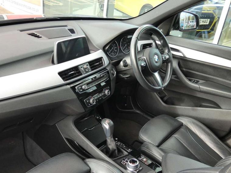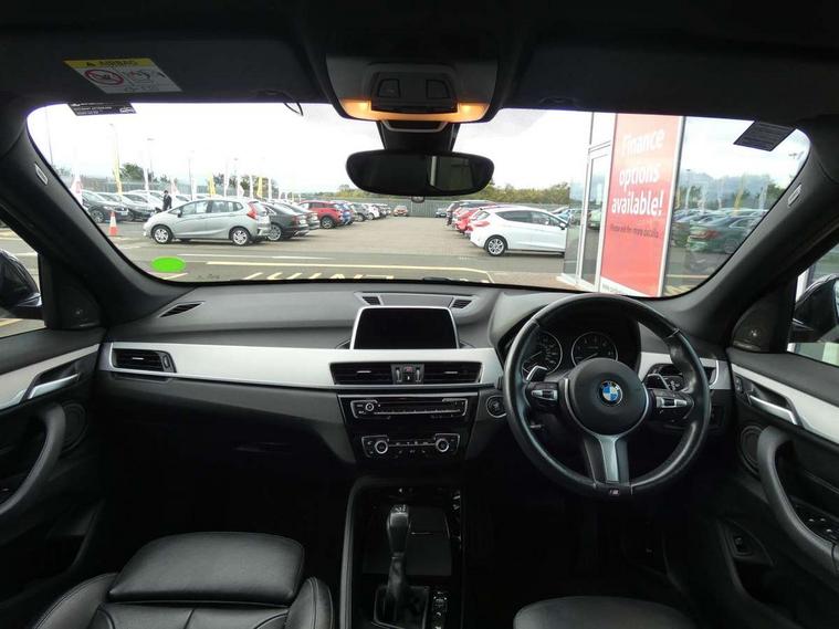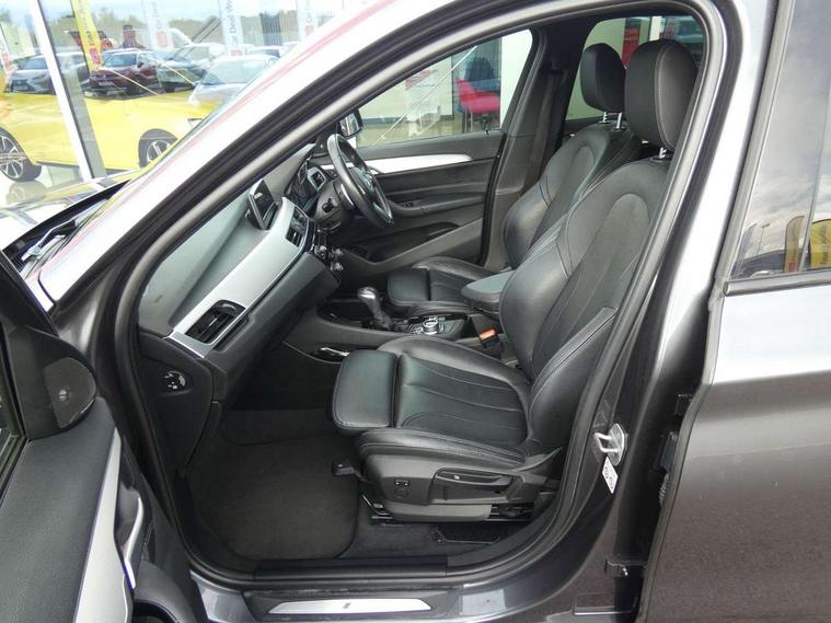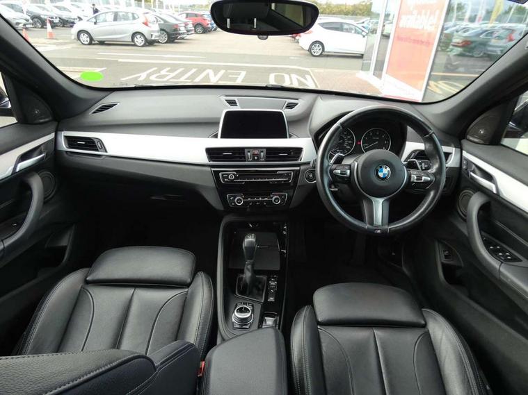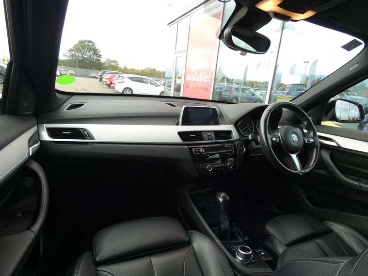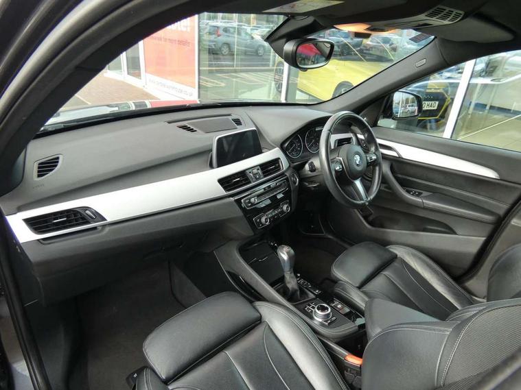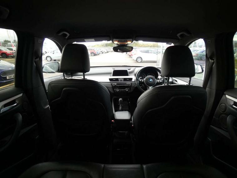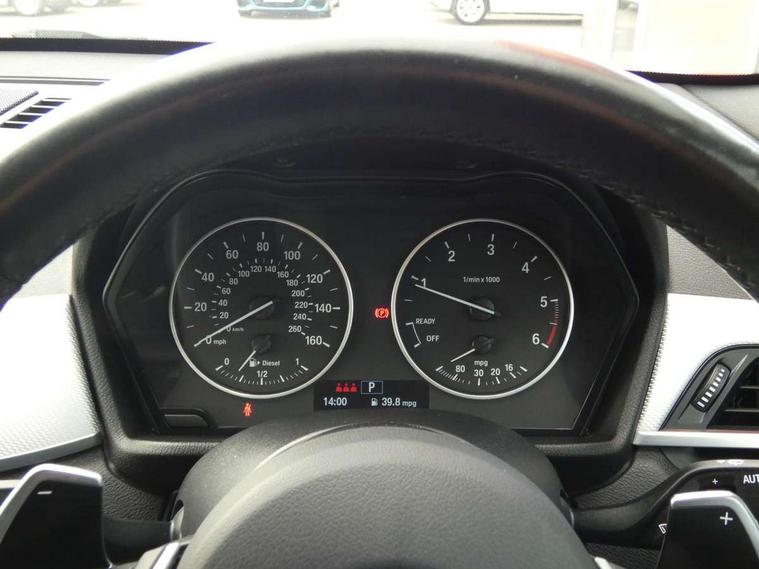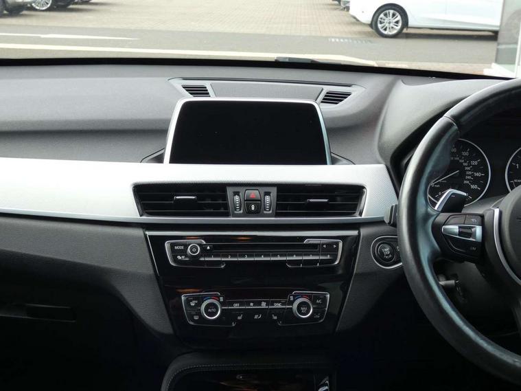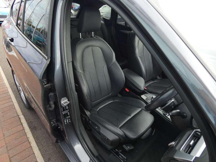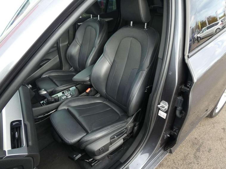 Active Guard incl speed limiting and lane departure functions with auto steering, and front collision warning with brake intervention, Ambient temperature display, Attentiveness assist, Automatic tailgate opening, BMW Online services, BMW Teleservices, Lights on warning, On board computer, Outside temperature gauge, Real time traffic information, Service interval indicator, Speed limiter, Stop/start button, Tyre puncture warning system, Diesel particulate filter, Electronic differential lock, Performance Control, BMW professional radio with CD player, DAB Digital radio, Adaptive LED Headlights, Adjustable headlights, Body colour bumpers, Body colour door handles, Body colour door mirrors, Chrome tailpipe finisher, Electrically adjustable and heated door mirrors, Fingertip control / anti-trap function on electric window, Follow me home headlights, Front and rear electric windows, Front fog lights, Heat insulating tinted glass, Heated windscreen washer jets, kidney grille with high gloss black vertical slats, LED daytime running lights, Rain sensor including auto headlights activation, Welcome home function, 12v power point in centre console, 12V power socket in passenger footwell, 3 spoke sport nappa leather steering wheel, 4 grab handles, Anthracite headlining, Boot light, Centre console with cupholders, Driver/passenger sunvisors with ticket holders, Drivers folding storage compartment, Dual zone automatic air conditioning, Front and rear door armrests, Front centre armrest/sliding cover, Front passenger isofix child seat attachment, Front sports seats, Front/rear adjustable head restraints, Heated front seats, Illuminated glovebox, Isofix rear child seat preparation, Leather gearknob/gaiter/handbrake grip, LED ambient lighting in door trim, Luggage area underfloor compartment, Multifunction steering wheel, Rake/reach adjustable steering wheel, Sliding/split/reclining 40/20/40 rear seat with 60/40 split rear seat base, Steering wheel gearshift paddles, Extended storage package - X1, 3 rear 3 point seatbelts, ABS/EBD, Audio/visual collision warning system, Automatic Stability Control (ASC), BMW emergency call, Cornering brake control (CBC), Crash Sensor - activates hazard/interior lighting + unlocks doors, Driver/Front Passenger airbags, Driver/front passenger side airbags, DSC - Dynamic Stability Control, Dynamic brake control, Dynamic Traction Control - DTC, Electronic parking brake, Front and rear head airbags, Front passenger airbag deactivation, Front seatbelt force limiters, Hill start assist, Pyrotechnically pre-tensioned front seatbelts, Rear door child safety locks, Seatbelt warning, Tyre pressure monitor, Warning triangle and first aid kit, Auto door lock when driving, Central locking including boot and fuel flap with deadlocks, Engine immobiliser, Locking wheel nuts, Remote control Thatcham category 1 alarm, High gloss black centre console, Low rolling resistance tyres,