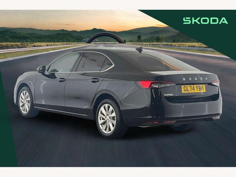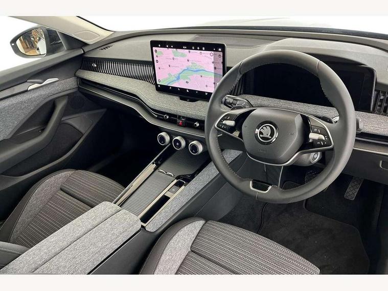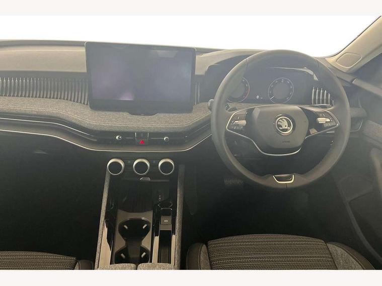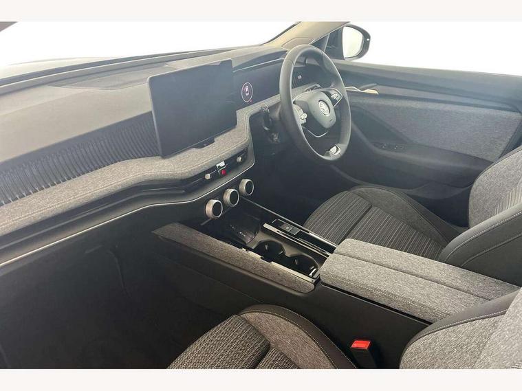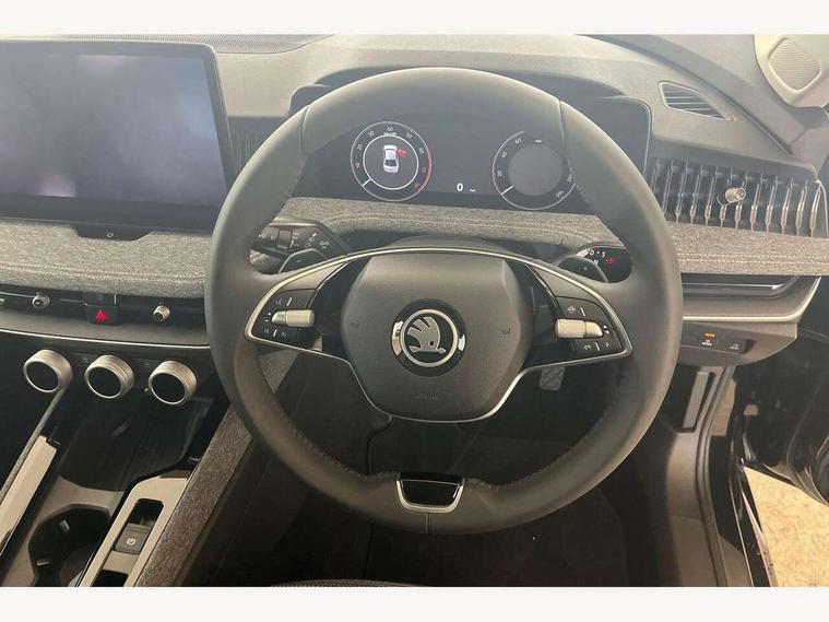 13" touchscreen display with satellite navigation, 4x USB-C ports (2x in front centre console and 2x in rear) (45W), Adaptive cruise control with speed assist, lane assist plus and traffic tram assist, Blind spot detection with door exit warning, Bluetooth system, CareConnect and Emergency Call, ChatGPT functionality, Driver fatigue sensor, Front assist with extended predictive pedestrian protection, Front cross traffic assist, PAS, Quick start all heating software functionality, Rear view camera with washer, Stop/start engine system, Traffic sign recognition, Turn assist with evasive assistance, Virtual Cockpit - 10.25" digital display, Voice control system, Wireless charging for one smartphone (15W) with cooling function, Wireless smartlink apple carplay, SmartLink+ android auto, 8 Speakers, DAB Digital radio, Display cleaner, FM radio connection, Web radio connection, Acoustic side windows and interior noise suppression, Backdrop lighting, Body colour door handles, Body coloured door mirrors, Chrome window surround, Electrically adjustable, heated, folding and driver side auto-dimming door mirrors with integrated indicators and logo projection, Frameless auto-dimming rear view mirror with USB-C, Front windscreen with heat-insulating glass, Ice scraper in fuel tank cap, LED 3rd brake light, Light assist with High beam control, Light assistant (coming/leaving home/tunnel light), Privacy glass, Rear fog light (x1), Rear side wing doors, Tow bar preparation, Unique dark chrome design logo on alloy wheels, Unique dark chrome grille surround with dark chrome rib elements, Windscreen wipers with rain sensor, 12V socket 1x centre console 1x boot, 12V socket and 2x cargo elements in boot, 2 spoke multifunction steering wheel with DSG paddles, 3 seat bench in 2nd row, 60:40 Split folding rear seats, Bottle holders in the front doors 1.5 litre bottle and rear 1.5 litre bottle, Cup holder in front with easy open mat, Front and rear footwell illumination, Front armrest with storage box, Front comfort seats, Heated front seats, Height adjustable driver and front passenger seats with 2-way electric tilt, 4-way pneumatic lumbar support, and extendable thigh support, Height adjustable front and rear head restraints, Height adjustable front passenger seat, Illuminated glovebox, Interior lights with control switches, Isofix child seat fittings in outer rear and front passenger seats, LED front and rear reading lights, Massage function for front seats, Single front passenger seat, Skoda lettering on steering wheel, Storage pockets on back of front seats, Sun visors with illuminated vanity mirrors, Ticket holder on A Pillar, Tri zone climate control, Umbrella in driver's door, 3 rear seatbelts, 8 Airbags - Front driver and passenger, front side driver and passenger, centre, curtain front and rear, drivers knee, Crew protect assist, Driver and passenger seatbelts with warning light, Electronic parking brake, ESC including ABS, EBV, MSR, ASR, EDS, HBA, DSR, RBS, CBC, multi-collision brake (MKB) and Auto hold, Hill hold assist, Power operated child lock in rear doors, Alarm with interior monitoring tilt sensor and back up horn, Backrest remote release from trunk, Electronic engine immobiliser, Keyless start/stop, Remote central locking with SAFE system, Third key, Decorative front door sills,