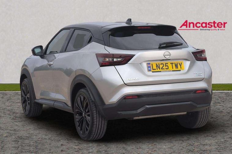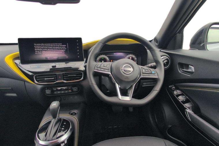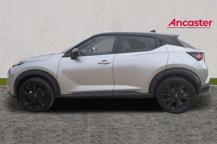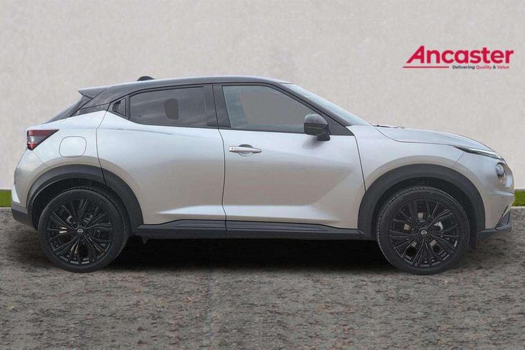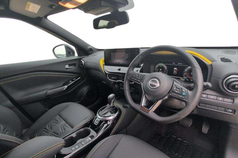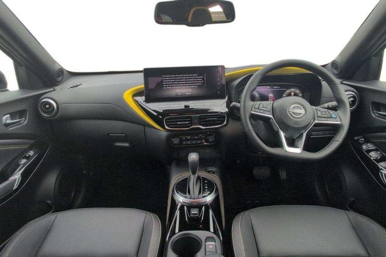 12.3" full colour TFT screen combimeter, Drive modes select (Eco, normal and sport), e-Pedal step, Emergency and breakdown call, EV mode switch, Front parking sensor, Intelligent driver alert system, Intelligent lane intervention, Lane departure warning system, Nissan connect 12.3" touch screen entertainment system, Nissan connect nav with TomTom traffic, Nissan connect services, Outside temperature sensor, Power Steering, Rear parking sensor, Stop/start button, Traffic sign recognition, Trip computer, Voice recognition, WiFi connectivity, Wireless Apple CarPlay and Google Android auto, Wireless Smartphone charger, 10 Bose speakers 8 speakers and 2 headrest speakers for driver/passenger seats, 2 X Rear console USB port, Bluetooth system, USB, Aux-in and 12V socket, Bose personal plus audio system, DAB Digital radio, Auto dimming frameless rear view mirror, Automatic hazard signal with emergency stop signal, Body colour door handles, Electrically adjustable door mirrors with integrated indicators, Follow me home headlights, Front and rear electric window with one touch driver window, High beam assist, LED 3rd brake light, LED daytime running lights, LED front fog lights, LED headlamps, LED rear fog lamp, LED rear lamps, One touch passenger window, Rear privacy glass, Rear side wing doors, Rear wiper, Roof spoiler, Shark fin roof antenna in solid Black, Solid black door mirrors, Three blink turn signal, 3 height adjustable rear headrests, 3 seat bench in 2nd row, 60/40 split folding rear seat, Card holder on driver sunvisor, Door ambient lighting, Driver seat back pocket, Driver side rear coat hanger, Driver/passenger sunvisors and vanity mirrors, Front and rear cabin lights, Front armrest, Front door pockets with bottle holders, Front head restraints, Front/rear passenger grab handles, Gear console ambient circle lighting, Height adjustable driver's seat, Internal chrome door handles, Luggage board, Luggage space lighting, Monoform sporty seats, Multifunction steering wheel, Passenger seat back pocket, Rear door bottle holders, Single front passenger seat, Smooth synthetic leather steering wheel, Synthetic leather kneepad, Synthetic leather shift knob, Telescopic steering wheel adjustment, Two cupholders in front centre console, Two rear isofix child seat anchorage points with top tether, Welcome light and console tray ambient lighting, Comfort pack - Juke, Gloss black exterior personalisation pack - Juke, Heat pack with height adjustable passenger seats - Juke, Interior personalisation pack - Juke, ProPilot pack - Juke Auto, ABS with EBD and brake assist, Active ride control, Active Trace Control, Driver and passenger airbags, Driver and passenger side airbags, Electric handbrake with auto hold function, Electronic Stability Programme (ESP), Front and rear curtain airbags, Height adjustable seatbelts, Hill start assist, Intelligent emergency braking with pedestrian and cyclist recognition, Rear door child safety locks, Seatbelt reminder for driver/front passenger and rear seats, Three 3 point rear seatbelts, Traction control, Tyre pressure monitoring system, VDC Dynamic Vehicle Control, Alarm, Immobiliser, Intelligent key and start push button with walk away lock and approach unlock functions, Remote central locking, Tyre puncture repair kit,