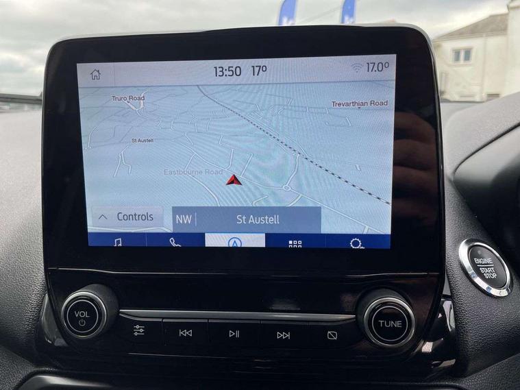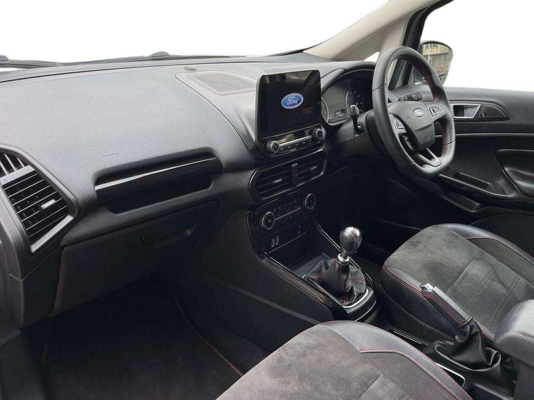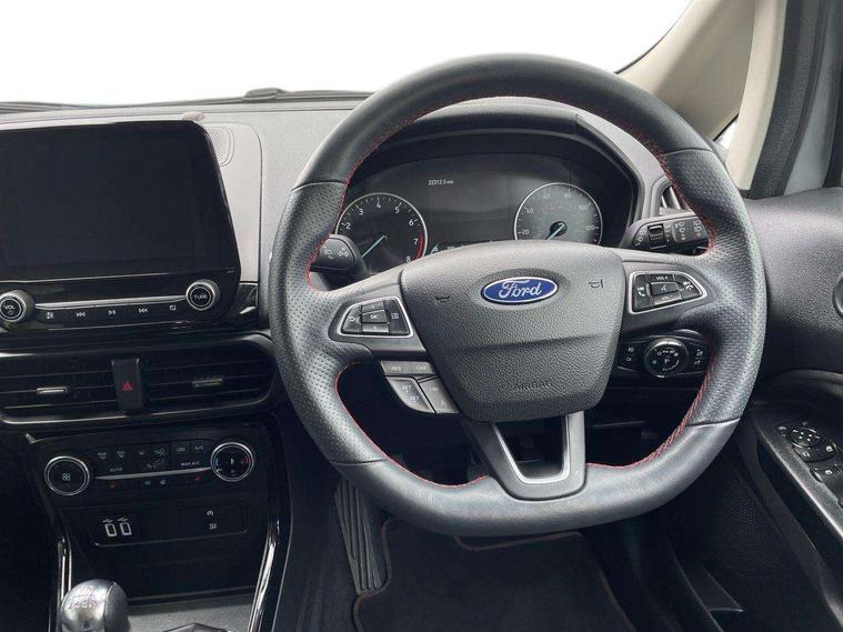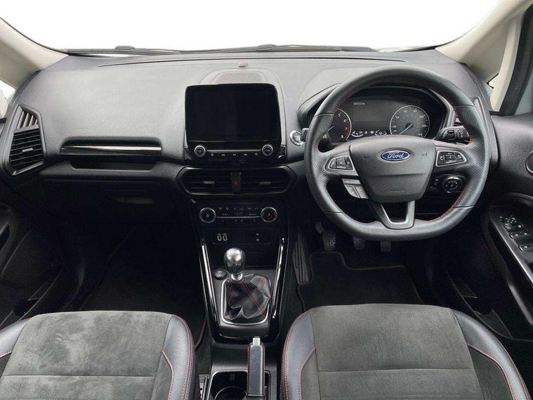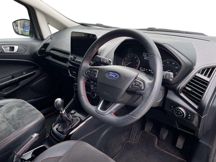 Cruise control, e-Call (emergency call), Easy fuel capless refuelling system, Ford SYNC 3 nav system with DAB radio, 8" screen, emergency assistance, Apple car play/Android auto, 2x USB, 6 speakers, Ford pass connect, Intelligent speed limiter, PAS, Rear parking sensors, Rear view camera, Traffic sign recognition, Trip computer, Sports suspension, Steering wheel mounted audio controls, Auto dimming rear view mirror, Automatic front wipers, Automatic headlights, Black roof rails, Body colour door handles, Body coloured bumpers, Chrome lower window surround, Electrically adjustable and heated door mirrors, Front fog lights, Front grille bars and surround in black, Headlight levelling control, Large rear roof spoiler, LED day running lights, LED third brake light, Power front and rear windows, Puddle lights, Quick-clear heated windscreen, Rear side wing doors, Rear wiper, ST Line body styling kit - Black headlamp bezel, front and rear sport bumpers, body colour lower door claddings, 12V socket in front and rear, 3 seat bench in 2nd row, 60/40 split rear seats, Ambient lighting, Centre console with sliding front armrest, Cooled glovebox, Courtesy lights with map reading light, Driver seat height/lumbar adjust, Driver's side glovebox, Driver/passenger sunvisors and lidded vanity mirrors, EATC - Electronic Auto Temperature control, Folding grab handles, Front head restraints, Front seat back map pockets, Illuminated glovebox, Illuminated luggage compartment, Isofix system on outer rear seats, Luggage compartment carpet, Neosuede/Partial sensico leather upholstery, Overhead console with sunglasses holder, Rake adjustable rear seats, Reach + rake adjustable steering column, Rear headrests, Sensico trimmed steering wheel, handbrake and gearshift gaiter with red stitching, Single front passenger seat, ST-Line Front floor mats with red stitching, Stainless steel sports pedals, Storage drawers under front seats, Tie down hooks, Variable boot floor, 3x3 point rear seatbelts, ABS, Autonomous emergency braking, Child locks on rear doors, Curtain airbags, Driver airbag, Drivers knee airbag, Electronic Stability Programme with hill launch assist, Front passenger airbag deactivation, Front side airbags, Passenger airbag, Pre collision assist system with AEB, Seatbelt reminder for driver and front passenger, Traction control, Tyre pressure monitoring system, Immobiliser, MyKey system, Remote central locking, Thatcham 1 volume sensing alarm, Low rolling resistance tyres, Tyre inflation kit,