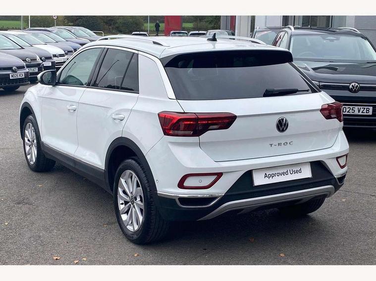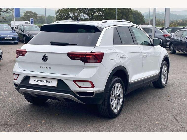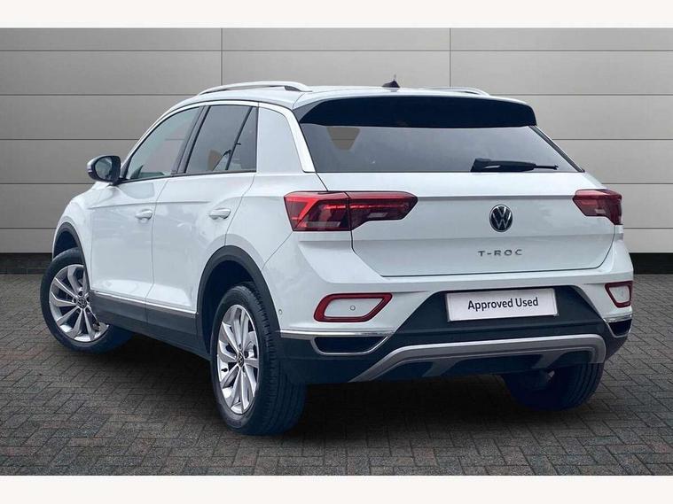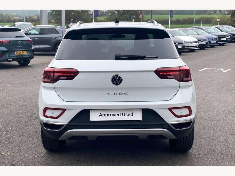 10.25" Digital cockpit pro, Bluetooth mobile phone interface, Driver alert system with fatigue detection, Driver tips and journey analysis, Emergency call service, Lane keeping system Lane Assist, Modified key software - reduce switch off time for key status change to Long no motion, Online services, Park assist including front and rear parking sensors, Service interval indicator, Tailgate/trunk lid release from outside, Think blue trainer driver tips and journey analysis, Warning sound and light for front seatbelts unfastened, Wireless app connect, Battery regeneration during braking, Start/stop function with battery regeneration, Diversity antenna for FM reception, Front and rear 6 speakers, Music playback - MP3, WMA and AAC files, Premium USB cable in choice of either Apple or Android smartphone compatibility, SD card slot, Simultaneous pairing of 2 compatible mobile devices, Title and cover art display, We Connect and We Connect Plus functionality, 3rd brake light, Auto dimming interior rear view mirror, Automatic hazard lights activation under emergency braking, Automatic headlight control with LED separate daytime running lights with coming/leaving home function, Body colour sports bumpers with silver metallic underbody fascia, Dynamic headlight range control with self adjusting whilst driving, Extended roof spoiler, Exterior mirrors aspherical on driver side, convex on front passenger side, External USB type C socket and charging sockets, Front windscreen wiper with intermittent wipe and 4 position delay, Heated rear window, LED Plus headlamps, LED rear combination lamps, LED rear number plate lights, LED tail lamp rear comination lamps, Light mode for poor weather, rain, fog or snow, Power windows with comfort operation and circuit breaker, Rain sensor, Rear exhaust tailpipe, Rear fog light on one side and reversing lights on both sides, Rear side wing doors, Rear wash/wipe with intermittent wipe setting, Remote electrically foldable door mirrors, puddle lights and reverse activated passenger's door mirror, 12V power socket in centre console, 3 rear head restraints, 3 seat bench in 2nd row, 4 load lashing points in luggage compartment, Air care climatronic air conditoning system with active combination filter and 2-zone temperature control, Chrome plated radiator grille inserts, air vent surrounds and light switch surrounds, Door and side trim panel with leatherette insert, Drawer under drivers seat, Front + rear carpet mats, Front centre armrest, Front comfort sports seats, Front cupholders x 2, Front footwell illumination, Instrument lighting, white adjustable panel illumination, Interior ambient lighting and surround lighting, Interior light delay, Isofix child seat preparation, Leather gearshift handle, LED interior light with switch off delay/dimmer and 2 front/rear LED reading lights, Load-through provision with cup holder when folded down ('Unsplit rear seat bench, split folding backrest, with centre armrest), Luggage compartment lighting, Non-folding front passenger seat backrest, Single front passenger seat, Storage compartment in left and right luggage area, Storage compartment in rear doors, Storage compartments in driver and front passenger doors, Sunvisors with illuminated vanity mirrors, Variable boot floor, height adjustable and removable, Driver assistance pack without proactive passenger protection - T-Roc, 3 point height adj front seatbelts + pretensioners, 3 point seatbelts in outer rear with ECE label, ABS, Child locks on rear doors, Driver and front passenger airbag with front passenger airbag deactivation, Driver and front passenger safety-optimised head restraints, Drivers seatbelt reminder, Electronic parking brake, Electronic Stability Control (ESC) inc EDL (Electronic Differential Lock) and ASR (Traction Control), Front and rear passengers curtain airbag system including front side airbags, Front assist with city emergency braking and pedestrian monitoring, Front seat side impact airbags, Predictive pedestrian protection, Rear disc brakes, Single tone horn, Tyre pressure loss indicator, Volkswagen roadside assistance, Alarm with interior protection, Anti-theft alarm system with interior monitoring, backup horn, and towing protection, Remote central locking with SAFELOCK, radio remote control with 2 remote control folding keys, Trims for alloy wheels,