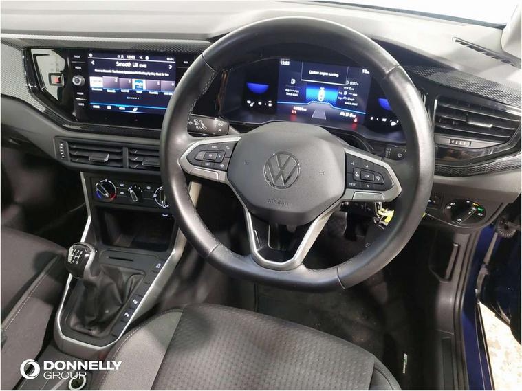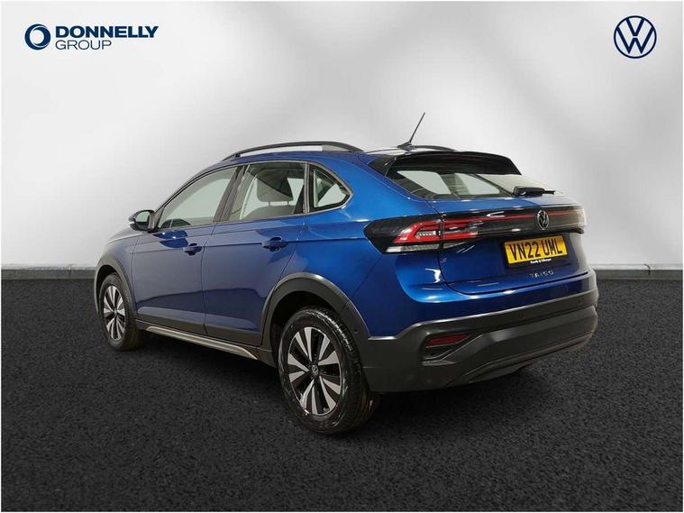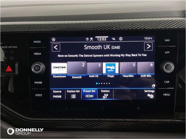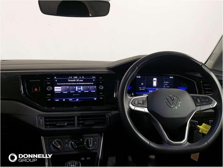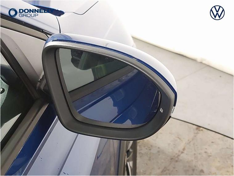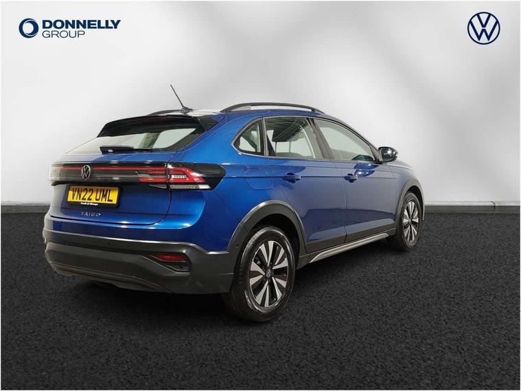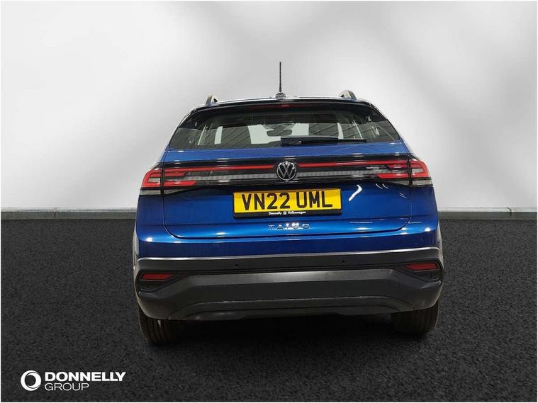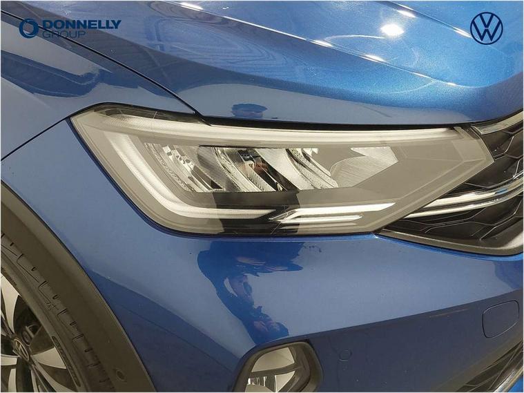 App-Connect including App-Connect Wireless, Driver alert system, e-Call (emergency call), Power Steering, Travel assist including emergency assist, Washer fluid level indicator, Wireless Charging including Bluetooth, Start-stop system with battery regeneration (recuperation - energy recovery during braking), Digital radio reception (DAB+), Diversity antenna for FM reception, WeConnect plus, Ambient lighting with logo projection, Aspherical driver's exterior mirror, Auto headlights, Body coloured bumpers, Body coloured exterior mirror housings and door handles, Electric windows, External USB type C socket and charging sockets, Front fog lamps with cornering function, Headlight range control, Heat insulating glass windscreen, LED headlamps, LED rear combination lamp, LED third brake light, Left convex exterior mirror, Power folding adjustable/heated exterior mirrors and front passenger exterior mirror lowering function, Rear fog light on one side, reversing light on both sides, Rear side wing doors, Rear wash/wipe with intermittent wipe setting, 'Slash/ Austin' Cloth upholstery, 12V socket in centre console, 2 front reading lights, 3 rear head restraints, 3 seat bench in 2nd row, Black carpets, Child seat anchor for child seat system i-Size, 2x top tether and child seat anchor in front on front passenger side, Door and side trim panels in titan black, Driver and front passenger seat height adjustment, Front centre armrest, Handbrake lever handle in leather, Height and reach adjustable steering wheel, Leather trimmed gear knob, Leather wrapped multifunction steering wheel, Luggage compartment floor, Luggage compartment light, Lumbar support for driver's and front passengers seat, Seat covers in titanium black, Single front passenger seat, Split folding backrest with centre armrest and unsplit rear seat bench, Storage compartment under front seats, Sun visors with illuminated vanity mirrors, Chrome Package - Taigo, Drivers assistance pack - Taigo, Light and Sight pack including High beam assist - Taigo, 2 x 3-point seatbelts/outer rear seats with ECE label, 3-point seat belts in front with pretensioner and height adjustment, 3-point seatbelt for centre rear seat, Driver and front passenger airbags with front passenger airbag de-activation, front side and curtain airbags, Driver and front passenger safety-optimised head restraints, Electronic stability control, Extended and predictive pedestrian/ cyclist protection, Front and rear disc brakes, Front curtain and side airbags with center airbag, Hill start assist, Manual rear child locks, Single tone horn, Tyre pressure loss indicator, Anti-theft alarm system with interior monitoring, backup horn, and towing protection, Anti-theft wheel bolts, Lava stone black gloss/matt decorative inserts in dash and front door panels, Low rolling resistance tyres,
