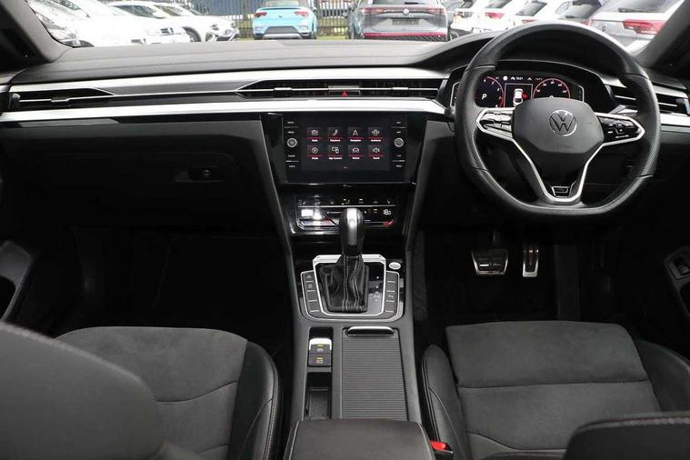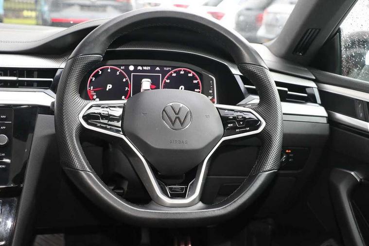 Adaptive cruise control (ACC) with speed limiter, front assist (reacting vehicles pedestrian and cyclists) and follow to stop, App connect including wireless Apple CarPlay, Camera for warning system, Digital cockpit with 10.25" high resolution TFT display screen with customisable menus and information, Driver alert system with fatigue detection, Driver profile selection including ECO function, Dynamic road sign display, eCall - Emergency call service for SOS calls to emergency response, Emergency assist, Hands free boot opening, Press and drive key, Progressive steering, Speedo and rev counter, electronic odometer, trip, service interval display and exterior temperature gauge, Travel assist - Lane keeping assist and traffic jam assist, Voice activation for telephone and navigation, Start/stop function with battery regeneration, Premium USB cable in choice of either Apple or Android smartphone compatibility, Auto dimming interior rear view mirror, Automatic headlights, Body colour door handles, Body colour side skirt, Body coloured top and matt black lower door mirrors with integrated indicators, Chrome plated radiator grille inserts and light switch surrounds, Chrome side window surrounds, Dynamic headlight range control, Electric folding door mirror, adjustable, heated with front passenger exterior mirror lowering function, Front and rear electric windows, Front and rear stainless steel door sill protection, Front windscreen washers and wipers with 4x interval delay, Heat insulating side and rear windows, Heated rear windscreen, Heated windscreen washer jets, High level 3rd brake light, LED rear combination lamp with dynamic indicators, LED rear number plate lights, Panoramic sunroof with tilting and sliding including integrated roller blind, R Line design body coloured bumpers, Rain sensor, Rear fog lamp on one side and reversing lamp on both sides, Rear side wing doors, Rear tinted glass from B pillar backwards, approx 65% tinted, Rear wash/wipe, Tailpipes behind rear bumper, 12V socket in front centre console, 12V socket on rear of front centre armrest, 3 rear head restraints, 3 seat bench in 2nd row, 30 colours options interior ambient lighting, 60:40 split folding rear seat backrests with centre armrest, Air care climatronic 3 Zone electronic air conditioning with automatic air recirculation, Black roof lining, Chrome trim on upper and lower air vents extending across cockpit, Driver and front passenger sunvisor with vanity mirror, Front + rear carpet mats, Front cupholders x 2, Front footwell illumination, Front sports comfort seats, Glovebox, Heated front seats, Height/reach adjust steering wheel, Isofix child seat preparation easy fit for two outer rear seats, Luggage compartment lighting, Removable luggage compartment cover, Single front passenger seat, Split folding front seat backrest with front centre armrest, Stainless steel pedals, Two LED front reading light, 3 rear three point seatbelts, ABS+EBD+Brake assist, Child locks on rear doors, Driver airbag and front passenger airbags with deactivation switch including driver knee airbags, Electronic parking brake, Electronic stability control (ESC) and Electromechanical brake booster, Front disc brakes, Front side airbags with curtain airbags, Hill start assist, Pro active occupant protection to detect critical situations with elevated accident potential from the front, Rear disc brakes, Three point height adjust front seatbelts + pretensioners, Two tone horn, Tyre pressure loss indicator, Warning buzzer for seatbelts if unfastened, Warning triangle, Alarm with interior protection with deactivation via infotainment system, Electronic engine immobiliser, Keyless entry system including start/stop button on centre console, Aluminium decorative inserts, Chrome trim on lower doors in front and rear, Leatherette insert on door and side trim panel in foam film, Piano black decorative inserts in centre console,