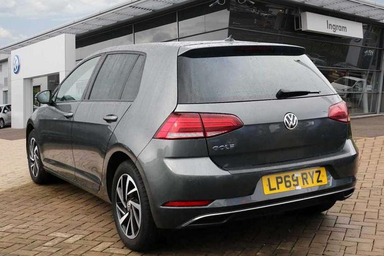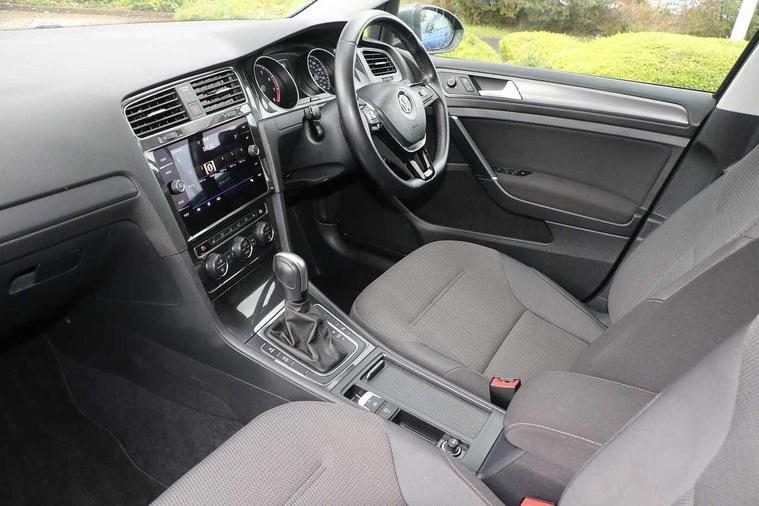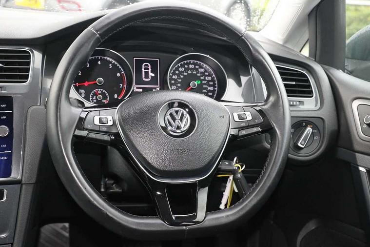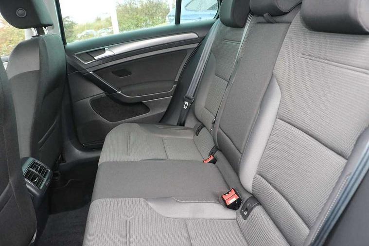 'Lights On' Reminder warning buzzer, ACC - Adaptive cruise control with front assist, forward collision warning, distance monitoring, city emergency brake and speed limiter, Bluetooth telephone and audio connection for compatible devices, Brake pad wear indicator warning light, Driver alert system, Driving Mode Selection with four preset modes - Eco, normal, sport or individual modes, Multifunction computer with visual gear change recommendation for fuel consumption, Power assisted speed sensitive electro-mechanical steering, Push tank flap, Speed limit display, Speedo, rev counter, electronic odometer, trip, service interval display, exterior temperature and fuel gauge, Stop/start system, Think blue trainer driver tips and journey analysis, Warning buzzer and light for front seatbelts unfastened, Battery regeneration during braking, XDS electronic differential lock, Composition media system, DAB Digital radio receiver, Driver Personalisation profile selection, MP3/WMA compatability, Multi device interface (MDI) via USB connection, Premium USB cable in choice of either Apple or Android smartphone compatibility, SMS Functionality, Title and cover art display, USB and SD card connectivity, Volkswagen media control, Black front air intake and radiator grille with chrome insert, Black rear diffuser, Body colour bumpers, Body colour door handles, Body colour door mirrors with integrated indicators, Dusk sensor + automatic driving lights, Electric front windows, Electric rear windows, Electrically adjustable and heated door mirrors, Fully galvanised body, Heated rear windscreen, High level 3rd brake light incorporating LED Technology, LED front fog lights with static cornering light function, Range adjustable headlights via infotainment system with LED daytime running lights, Rear fog lamp, Rear number plate lights incorporating LED technology, Rear tinted glass 65% light absorbing from B pillar backwards, Rear window aerial, Rear window wash/wipe with intermittent wipe, Reflectors in all doors, Tailgate with integrated rear roof spoiler, Windscreen wipers/ intermittent wipe + 4 position delay, 12V socket in luggage compartment, 3 rear headrests, 4 load lashing points in luggage compartment, 60/40 split folding rear seat backrest, Bag hook in luggage compartment x 2, Climate control - 2 zone electronic air conditioning with automatic air recirculation and allergy filter, Cooled glovebox, Cover for storage compartment in centre, Dust/pollen filter, Front and rear reading lights X 2, Front centre armrest with storage compartment and two rear air vents, Front seat back storage pockets, Grab handles front x 2, rear x 2 with integrated coat hooks, Height and reach adjustable steering wheel, Illuminated vanity mirrors, Instrument lighting white adjustable panel illumination, Interior light delay, Isofix preparation for 2 rear child seats, Load through provision with rear centre armrest and cupholders x2, Luggage compartment lighting, Overhead storage box, Pearl grey headlining, Storage box in luggage compartment, Storage compartment in roof console with cover, Storage compartments in centre console, Storage compartments in front doors, Storage compartments in rear doors, Stowable luggage compartment cover, Sun visors, Variable boot floor, height adjustable and removable, Convenience Pack - Golf, Mirror pack - Golf, Winter pack - Golf, 3 rear three point seatbelts, Airbags - Driver's and front passenger's, curtain airbag, Driver's knee, front side impact and passenger's airbag deactivation switch, Anti-lock Braking System (ABS) with Hydraulic Brake Assist (HBA), Automatic post collision braking system, Child locks on rear doors, Driver/Passenger optimised head restraints, Electronic parking brake with auto hold, Electronic stability control (ESC) including Electronic differential lock (EDL) and ASR (Traction control) with deactivation via infotainment system, Front ventilated disc brakes and rear disc brakes, Pre crash preventive occupant protection, Three point height adjustable front seatbelts with tensioners, Tyre pressure loss indicator, Alarm with interior protection and deactivation via infotainment system, Electronic engine immobiliser, Brushed dark silver decorative inserts in dash and door panels, Chrome plated air vent surround, Chrome-plated light switch surround, Polar night black decorative inserts in centre console, Steel space saver spare wheel,