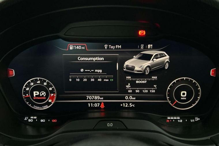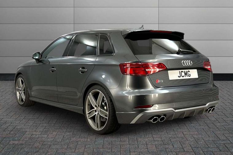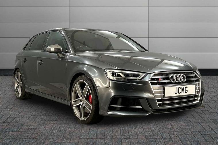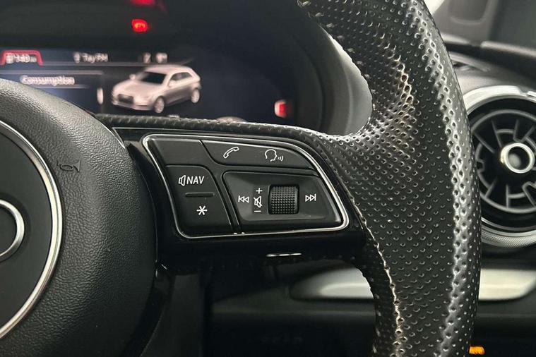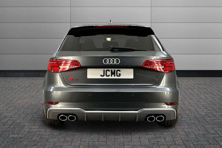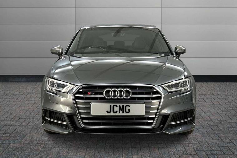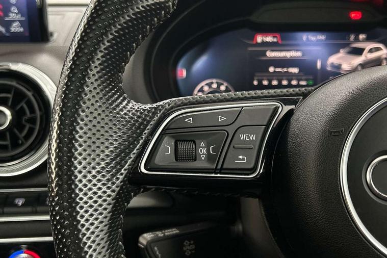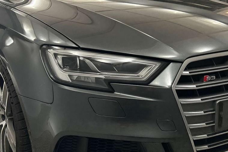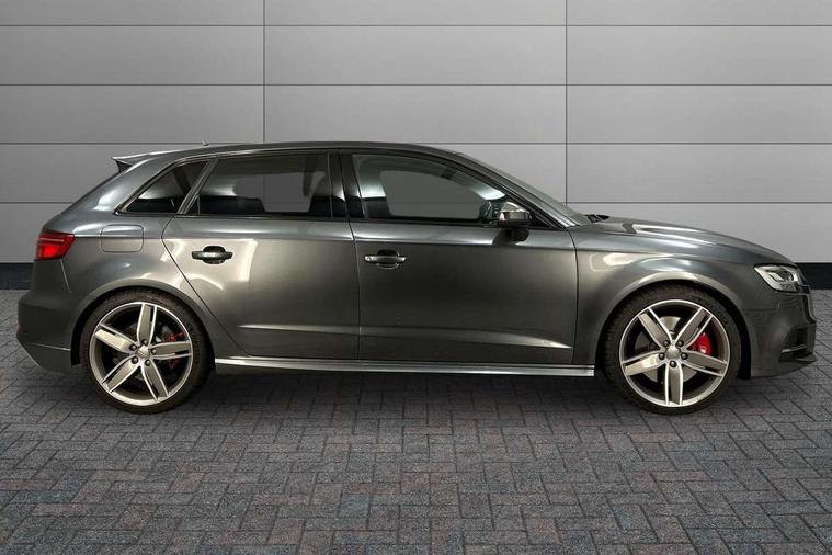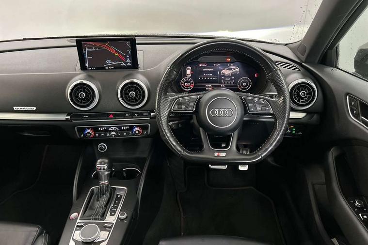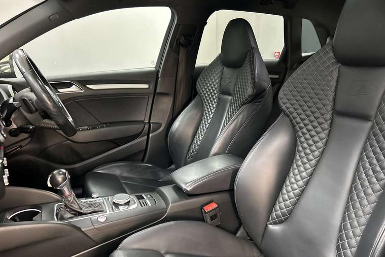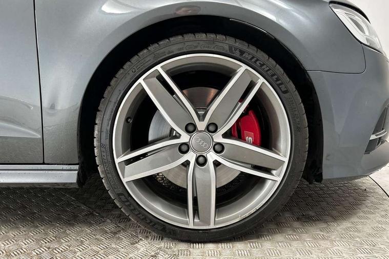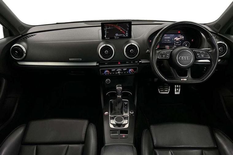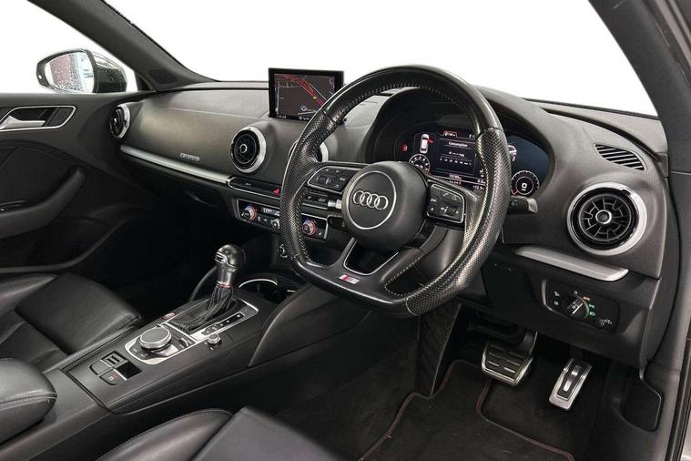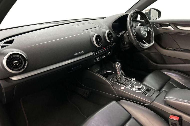 Audi connect, Audi drive select, Audi smartphone interface, Colour driver's information system display, Mobile telephone preparation - bluetooth interface, Progressive power assisted steering, Service interval indicator, Speed limit display, Voice control system, S sports suspension, 2 USB ports, Audi music interface, Auxiliary input socket, DAB Digital radio, Aluminium door mirror housings, Aluminium window trim, Body colour bumpers, Body colour roof spoiler, Electric front windows, Electric operated/heated door mirrors, Electric rear windows, Headlight washers, Heated windscreen washer jets, Matt black radiator grille, Platinum grey radiator grille with double chrome bars, Rear wiper, S body styling, Single exhaust tailpipe, Twin oval chrome trimmed exhaust tailpipes, 3 adjustable rear headrests, 3 spoke flat bottomed multi-function leather steering wheel, 4 lashing points to secure luggage, Adjustable front armrest, Black cloth headlining, Dual zone electronic climate control, Front and rear interior lights with delay, Front passenger seat isofix location point, Front/rear floor mats, Heated front seats, Height/depth adjustable steering column, Illuminated glovebox, Illuminated luggage compartment, ISOFIX child seat preparation+airbag deactivation, Jack and tool kit, Stainless steel pedals, Steering wheel gearshift paddles, Storage compartment in centre console, Storage compartment under front seats, Storage compartments in doors, LED interior light pack - A3/RS3, Light and rain sensor pack - A3 Hatchback/Sportback, Storage and luggage pack - A3/RS3, 3 point seatbelts on all seats, ABS/EBD, Active bonnet, Active front headrests, ASR, Curtain airbags, Driver and passenger side airbags, Driver/Front Passenger airbags, Drivers knee airbag, EDL, Electromechanical parking brake, ESC - Electronic Stability Control + traction control, Front passenger airbag deactivation, Manual rear child locks, Multi-Collision braking, Seatbelt warning, Tyre pressure monitor, Warning triangle and first aid kit, Anti-theft wheel bolts, Remote control central locking, Thatcham category 1 alarm + immobiliser, Aluminium air vent surrounds, Aluminium trim elements, Space saver spare wheel,