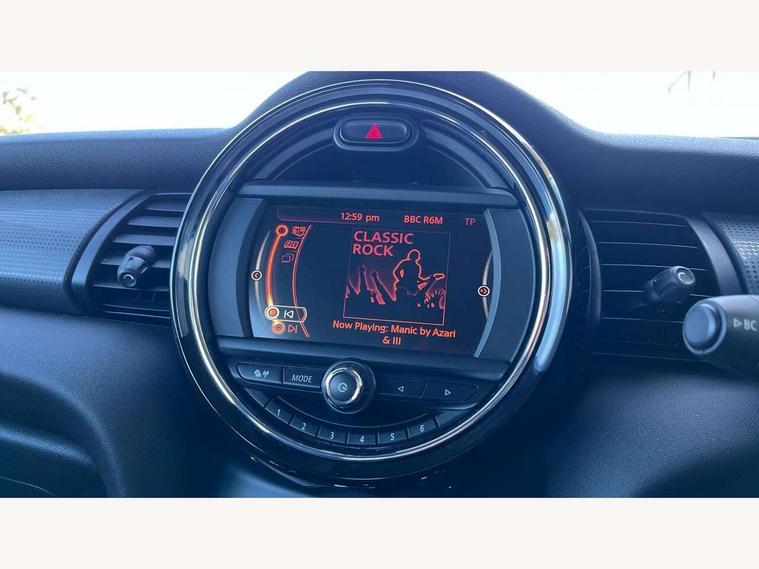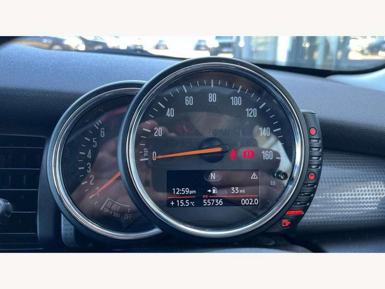 Acoustic seat-belt warning, Brake fluid level warning light, Brake pad wear indicator warning light, DTC - Dynamic traction control, Exterior temperature gauge, Intelligent emergency call, MINI TeleServices, Oil level indicator, On board computer, Push button starter, Service interval indicator, Servotronic PAS, Electronic differential lock, Auxiliary input socket, DAB digital radio module, 2 speed wipers+intermittent wipe, Aluminium tailgate, Anti dazzle mirror, Anti trapping/one touch open close front windows, Body coloured bumpers, Chrome bezels around rear lights and headlights, Chrome door handles, Chrome exhaust tailpipe, Chrome plated radiator grille, Chrome plated trim on bottom edge of window, Chrome strip on lower grille, Electric front windows, Electrically adjustable door mirrors, Flared wheel arches, Follow me home headlights, Green tinted heat insulating glass, Heated door mirrors/heated windscreen washers, Heated rear window with auto timer, Metal look door sill finishers, Rear wiper, Roof spoiler in roof colour, 2 rear head restraints, 4 boot load lashing points, 4 way manually adjustable passenger seat with height, reach, tilt, backrest and headrest, 6-way manually adjustable driver's seat, Active carbon filter, Air recirculation system, Auxiliary socket in centre console storage compartment, Centre console storage, Driver's seat height adjuster, Driver/passenger sunvisors, Front and rear cupholders, Front head restraints, Front interior light, Front passenger grab handle, Gear/selector and handbrake in artificial leather, Internal chrome door handles, Isofix child seat preparation, Luggage compartment lighting, Reach + rake adjustable steering column, Rear grab handles, Rear storage trays, Split folding rear seats, Storage compartments in doors, Toolkit in luggage compartment, Vanity mirrors, 3 point seatbelts, ABS/EBD, ASC+T, Cornering brake control (CBC), Crash Sensor - activates hazard/interior lighting + unlocks doors, Driver and passenger airbags, Driver/front passenger side airbags, DSC - Dynamic Stability Control, Fuel cut off safety device, Head airbags, Hill start assist, Passenger airbag deactivation system, Seatbelt pretensioners, Tyre pressure warning, Ventilated front disc brakes, Drive away door locking, Locking wheel bolts, Remote central locking/doors+fuel cap+tailgate, Second remote key, Thatcham category 1 alarm + immobiliser,