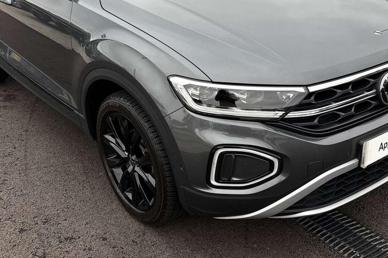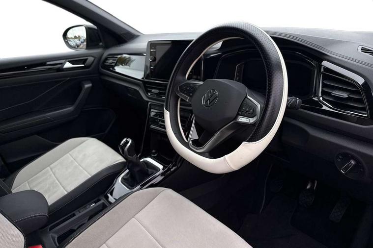 10.25" Digital cockpit pro, Bluetooth mobile phone interface, Driver alert system with fatigue detection, Driver tips and journey analysis, Dynamic road sign display, Emergency call service, Lane keeping system Lane Assist, Modified key software - reduce switch off time for key status change to Long no motion, Online services, Park assist including front and rear parking sensors, Power assisted speed sensitive steering, Service interval indicator, Tailgate/trunk lid release from outside, Think blue trainer driver tips and journey analysis, Warning sound and light for front seatbelts unfastened, Wireless app connect, Battery regeneration during braking, Front shock absorption, Rear shock absorption chassis with increased ride height, Start/stop function with battery regeneration, Diversity antenna for FM reception, Music playback - MP3, WMA and AAC files, Premium USB cable in choice of either Apple or Android smartphone compatibility, SD card slot, Simultaneous pairing of 2 compatible mobile devices, Title and cover art display, We Connect and We Connect Plus functionality, 3rd brake light, Auto dimming interior rear view mirror, Automatic hazard lights activation under emergency braking, Automatic headlight control with LED separate daytime running lights with coming/leaving home function, Body colour sports bumpers with silver metallic underbody fascia, Dynamic headlight range control with self adjusting whilst driving, Extended roof spoiler, Exterior mirrors aspherical on driver side, convex on front passenger side, External USB type C socket and charging sockets, Front windscreen wiper with intermittent wipe and 4 position delay, Heated rear window, LED rear combination lamps, LED rear number plate lights, LED tail lamp rear comination lamps, Light mode for poor weather, rain, fog or snow, Power windows with comfort operation and circuit breaker, Rain sensor, Rear exhaust tailpipe, Rear fog light on one side and reversing lights on both sides, Rear side wing doors, Rear wash/wipe with intermittent wipe setting, Remote electrically foldable door mirrors, puddle lights and reverse activated passenger's door mirror, 12V power socket in centre console, 3 rear head restraints, 3 seat bench in 2nd row, 4 load lashing points in luggage compartment, Air care climatronic air conditoning system with active combination filter and 2-zone temperature control, Chrome plated radiator grille inserts, air vent surrounds and light switch surrounds, Door and side trim panel with leatherette insert, Drawer under drivers seat, Front + rear carpet mats, Front centre armrest, Front comfort sports seats, Front cupholders x 2, Front footwell illumination, Instrument lighting, white adjustable panel illumination, Interior ambient lighting and surround lighting, Interior light delay, Isofix child seat preparation, Leather gearshift handle, LED interior light with switch off delay/dimmer and 2 front/rear LED reading lights, Load-through provision with cup holder when folded down ('Unsplit rear seat bench, split folding backrest, with centre armrest), Luggage compartment lighting, Non-folding front passenger seat backrest, Single front passenger seat, Storage compartment in left and right luggage area, Storage compartment in rear doors, Storage compartments in driver and front passenger doors, Sunvisors with illuminated vanity mirrors, Variable boot floor, height adjustable and removable, Driver assistance pack without proactive passenger protection - T-Roc, 3 point height adj front seatbelts + pretensioners, 3 point seatbelts in outer rear with ECE label, ABS, Child locks on rear doors, Driver and front passenger airbag with front passenger airbag deactivation, Driver and front passenger safety-optimised head restraints, Drivers seatbelt reminder, Electronic parking brake, Electronic Stability Control (ESC) inc EDL (Electronic Differential Lock) and ASR (Traction Control), Front and rear passengers curtain airbag system including front side airbags, Front assist with city emergency braking and pedestrian monitoring, Front disc brakes, Front seat side impact airbags, Predictive pedestrian protection, Rear disc brakes, Single tone horn, Tyre pressure loss indicator, Volkswagen roadside assistance, Anti-theft alarm system with interior monitoring, backup horn, and towing protection, Remote central locking with SAFELOCK, radio remote control with 2 remote control folding keys, Trims for alloy wheels,