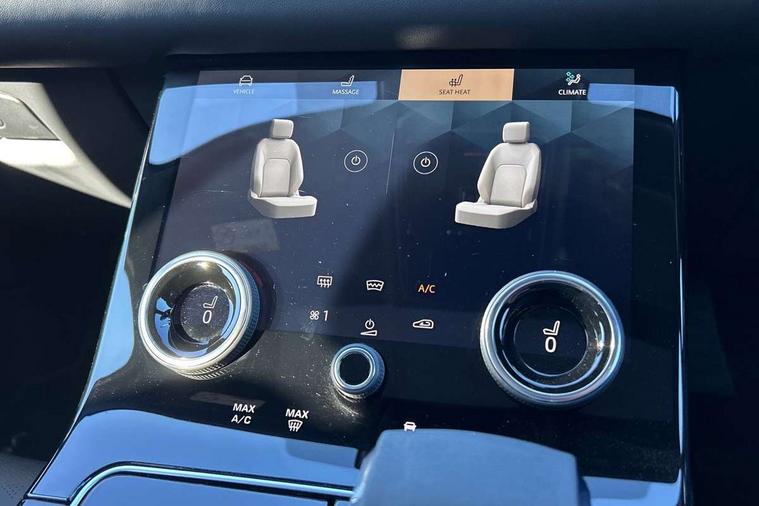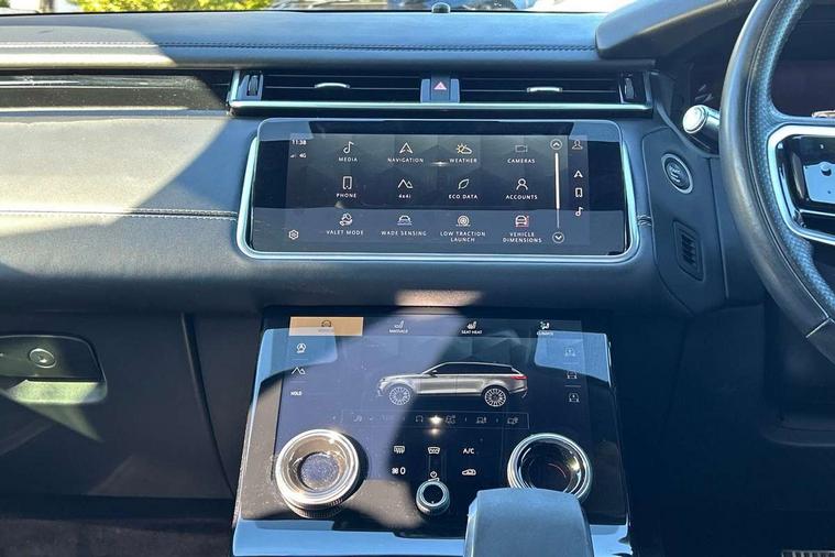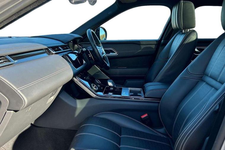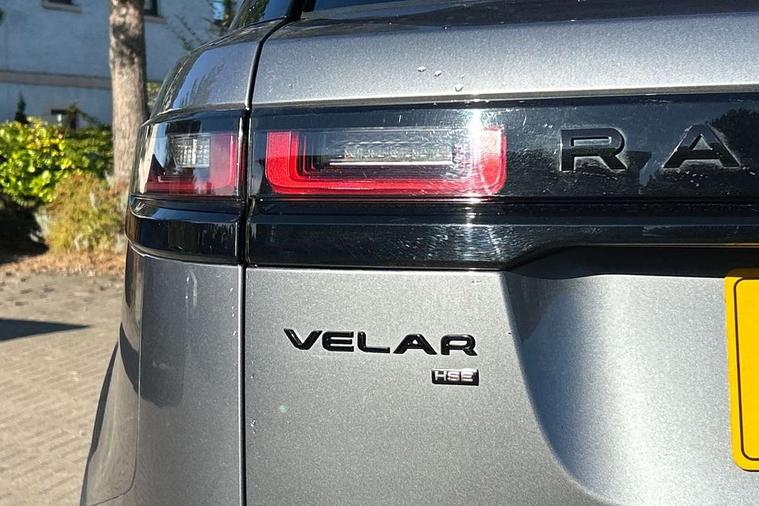 10" touch screen, Adaptive cruise control with steering assist, Android Auto, Apple car play, Blind spot assist, Bluetooth connectivity, Brake pad wear indicator warning light, Driver condition monitor, InControl remote, Interactive Driver display instrument cluster, Land Rover InControl apps, Lane keep assist, Pivi pro connected includes upgraded infotainment, smart settings, connected navigation pro, Nuance speech licence, Push button start, Rear collision monitor, Rear traffic monitor, Service indicator, Speed proportional electronic power assisted steering (EPAS), Traffic sign recognition with adaptive speed limiter, Trip computer, Voice control system, 8 speed automatic transmission, Adaptive dynamics, All terrain progress control, Electronic air suspension, Open differential with torque vectoring by braking, Single speed transfer box, Digital Audio Broadcast radio-DAB, Steering wheel mounted controls, Acoustic laminated windscreen, Adaptive front lighting system, Auto dimming interior rear view mirror, Automatic headlamp levelling, Automatic headlights, Body coloured bumpers, Boot protection plate, Electric heated/power fold door mirrors with approach lights and auto dimming driver side, Electric windows with one touch open/close and anti trap, Flush deployable exterior door handles, Follow me home headlights, Heated rear window with timer, Heated windscreen, HSE badge, Metal load space scuff plates, Rain sensor windscreen wipers, Rear fog lights, Rear wash/wipe, Tailgate/boot lid spoiler, Trailer stability assist, Velar and R-dynamic badge, Ambient lighting, Bright metal pedals, Driver/passenger sunvisors with illuminated vanity mirrors, Electric adjustable steering column, Isofix system on outer rear seats, Loadspace cover, Overhead lighting console, Overhead stowage for sunglasses, Passive front headrests, Rear air vents, Rear centre headrest, Satin chrome gearshift paddles, Twin front cupholders, Twin sliding front centre armrest, Online pack with data plan - Velar, 355mm front brakes and 325mm rear brakes, 3x3 point rear seatbelts, Anti-lock braking system (ABS), Cornering brake control, Curtain airbags, Customer configurable autolock, Door side intrusion beams, Driver airbag, DSC - Dynamic Stability Control, Electronic brake force distribution, Electronic parking brake, Electronic traction control, Emergency brake assist, Emergency braking, Front and rear seatbelt reminder, Hill descent control, Hill launch assist, Low traction launch, Passenger airbag, Power operated child locks, Rear airbags, Roll stability control, Side airbags, Tyre pressure monitoring system, Unpainted brake calipers, Global lock and unlock switch on driver door, Immobiliser, Intrusion sensor, Keyless entry, Lock only switch on front passenger door, Locking wheel nuts, Perimetric alarm, Remote central locking,