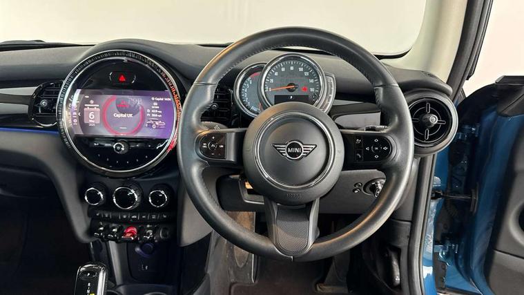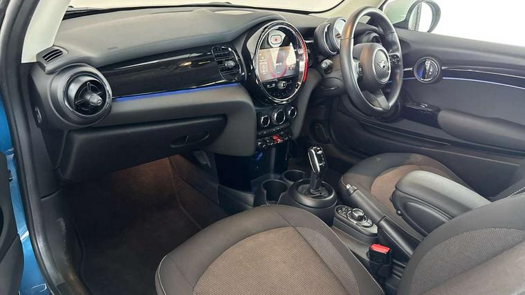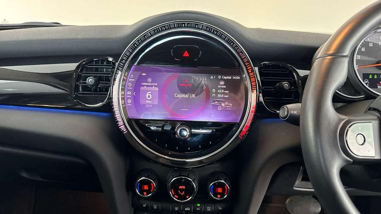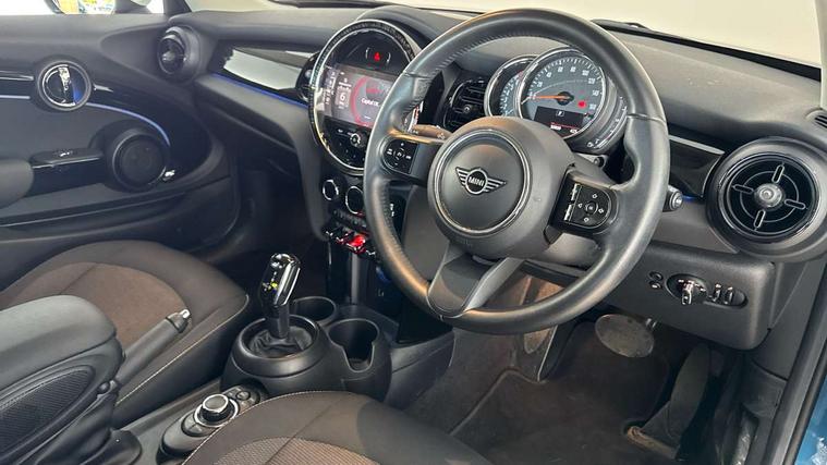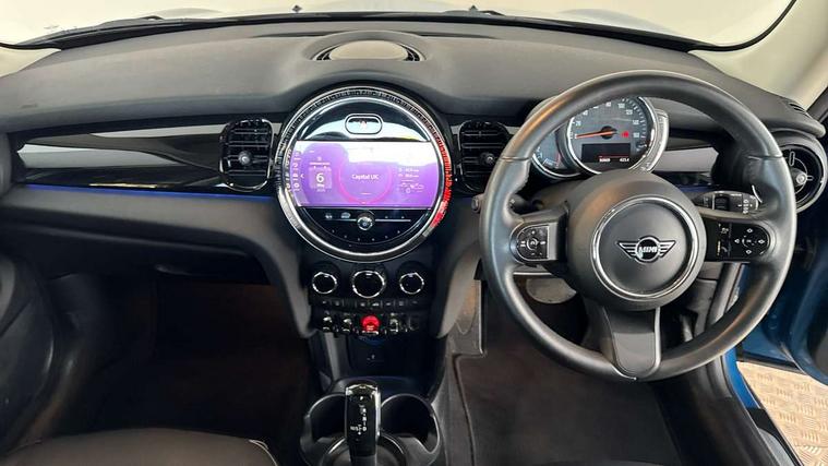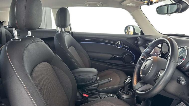 Apple CarPlay, Automatic start/stop function with brake energy recuperation, Compatible mobile phone bluetooth with audio streaming, Cruise control with brake assist, Electro-mechanical speed dependant steering assistance, Flexible car sharing preparation, Instrument cluster, Mini E-call, MINI TeleServices, On board computer, Service interval indicator, Double Vanos system, Fully variable valve control, High precision injection, Performance Control, Steptronic transmission with double clutch, 8.8" touchscreen with LED ring, FM tuner and DAB digital radio, 3rd brake light, Automatic headlight activation switch, Body colour fuel filler cap, Chrome border high gloss black slats radiator grille, Dynamic brake lights, Electric front windows, Exhaust tailpipe on left with chrome finisher, Heated rear window, Heated windscreen washer jets, LED headlight with closed ring and daytime driving lights, Metal door sill strips with MINI imprint, Model logo Cooper on right of tailgate, Rain sensor window wipers, Rear fog lights, Rear LED lights with union jack design, Rear window wiper, Side scuttle panel with integrated indicator, Sun/heat protection glass, White indicator lenses, 12V Accessory socket in centre console, 2 seat bench in 2nd row, 4 lashing eyes in luggage compartment, 60/40 split folding rear seat, Ambient lighting, Carbon black colour line - Knee roll and door armrest, Chrome interior highlights, Cupholders, Front and rear head restraints, Front and rear isofix with front passenger airbag deactivation, Front floor mats in velour, Glove compartment, Height and length steering column adjustment, Interior lighting with 12 different colours across the dashboard, underneath door bezel with illuminated laser-engraved design on central display, Leatherette gearshift lever and handbrake gaiters, LED reading lights, vanity mirror lights, front foot well light and spotlight on front seats, Manual air conditioning, Mechanical seat adjustment - forward/back & backrest for front seats and driver seat height adjust, Multifunction steering wheel, Passenger seat height adjuster, Satellite grey headlining including grab handles and clothes hooks, Single front passenger seat, Sport leather steering wheel with speed limiter and audio/communication controls, Storage compartments in doors, Sunvisors with vanity mirrors, Tool kit, 3 point seatbelts on all four seats, 6 Airbags - front, side, head and seat belt tensioners, Anti-lock braking system (ABS), DSC - Dynamic Stability Control, Front and rear disc brakes, Single tone fanfare horn, Tyre pressure monitoring system, Alarm system with tilt sensor, monitoring doors, bonnet interior and tailgate, Electronic vehicle immobiliser, Start/stop toggle with keyless go, Piano black interior trim, Tyre repair kit,
