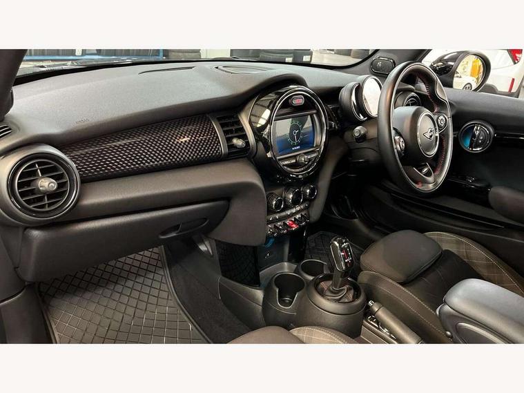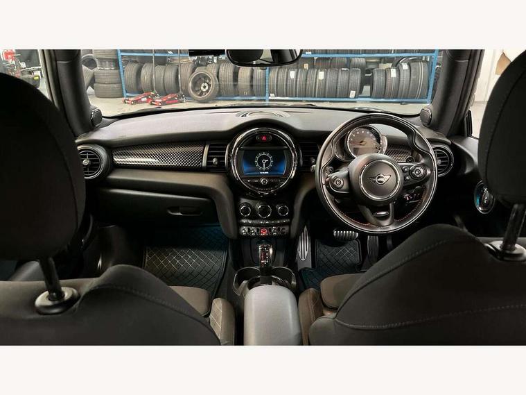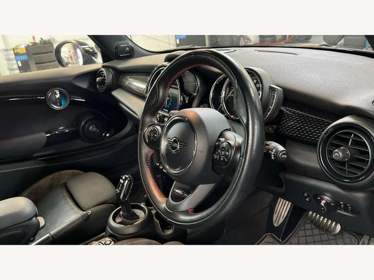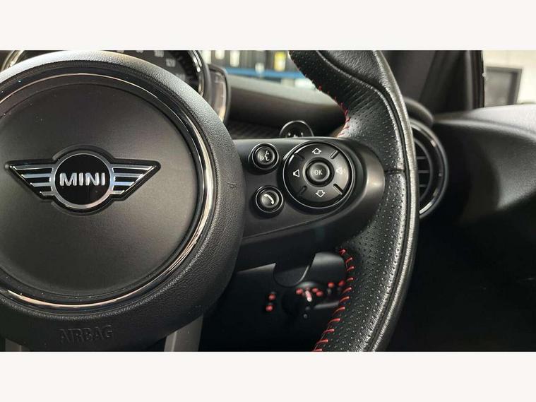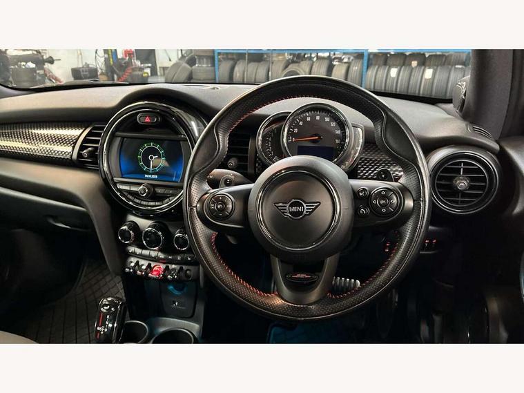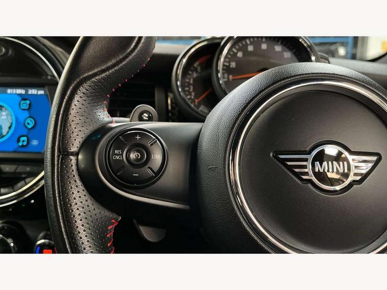 Compatible mobile phone bluetooth with audio streaming, Instrument cluster, Mini E-call, MINI TeleServices, On board computer, Service interval indicator, Performance Control, Steptronic sport transmission with double clutch and steering wheel paddles, 6.5" touchscreen with LED ring, FM tuner and DAB digital radio, Automatic headlight activation switch, Bonnet scoop, Chrome border honeycomb structure radiator grille with S badge, Chrome plated fuel cap, Dynamic brake lights, Electric front+rear windows, Heated rear window, Heated windscreen washer jets, John Cooper Works - aerodynamic kit (front and rear apron, spoiler), front and rear sport bumpers and part-painted side sills with door sill finishers, John Cooper Works rear spoiler, LED headlight with closed ring and daytime driving lights, Metal door sill strips with Cooper S imprint, Model logo Cooper S on right of tailgate, Rain sensor window wipers, Rear fog lights, Rear LED lights with union jack design, Rear window wiper, Side scuttle panel with integrated indicator, Sun/heat protection glass, Two central exhaust tailpipes with chrome finisher, White indicator lenses, 12V Accessory socket in centre console, 4 lashing eyes in luggage compartment, 60/40 split folding rear seat, Anthracite headlining, Chrome interior highlights, Cupholders, Front and rear isofix with front passenger airbag deactivation, Glove compartment, Height and length steering column adjustment, Interior lighting with 12 basic colours selectable via toggle switch in roof, John Cooper Works leather steering wheel with contrasting stitching in Chilli Red with John Cooper Works logo, John Cooper Works Logo in seat, Leather gearshift lever and handbrake gaiters, LED reading lights, vanity mirror lights, front foot well light and spotlight on front seats, Manual air conditioning, Mechanical seat adjustment, driver seat height adjust, forward/back and front seats backrest, Mini logo projection on floor from drivers exterior mirror, Multifunction steering wheel, Storage compartments in doors, Storage pocket on back of front seats, Sunvisors with vanity mirrors, 3 point seatbelts on all four seats, 6 Airbags - front, side, head and seat belt tensioners, Anti-lock braking system (ABS), DSC - Dynamic Stability Control, Front and rear disc brakes, Hill start assist, Two tone horn, Tyre pressure monitoring system, Alarm system with tilt sensor, monitoring doors, bonnet interior and tailgate, Electronic vehicle immobiliser, Start/stop toggle with keyless go, Tool kit,