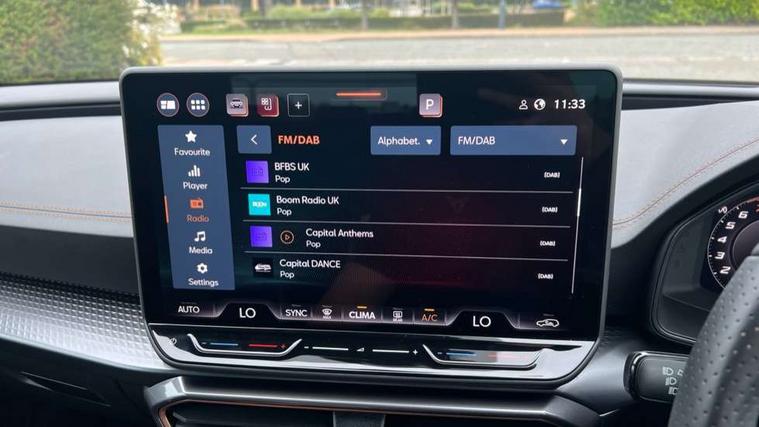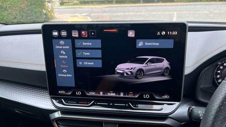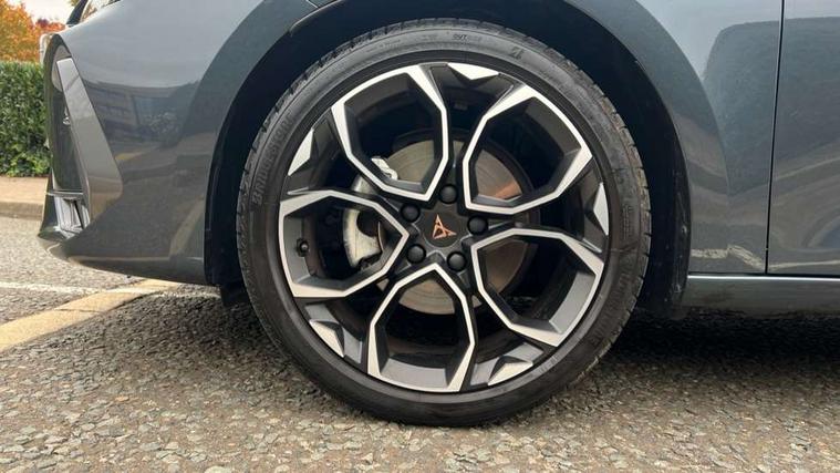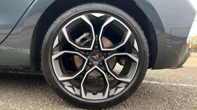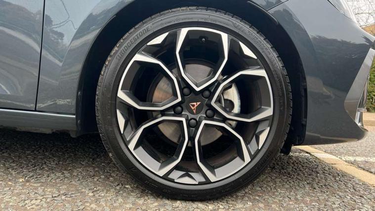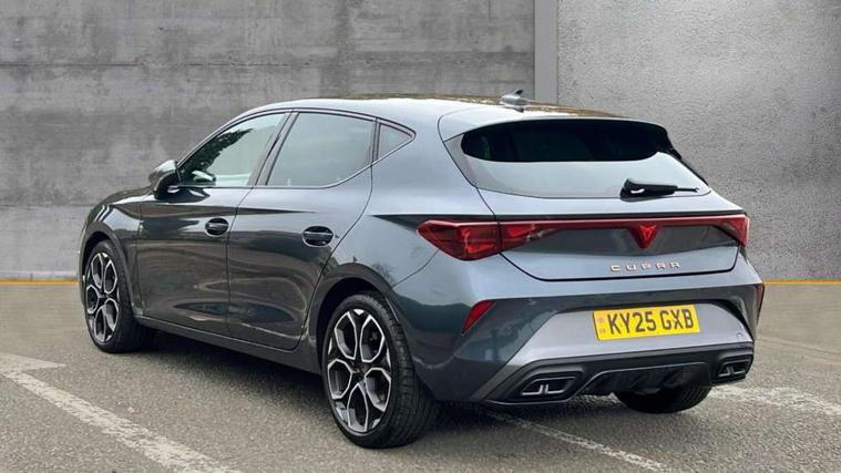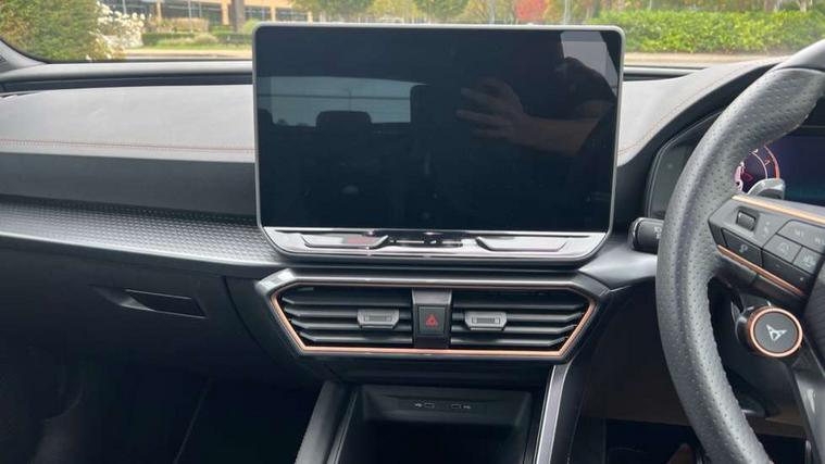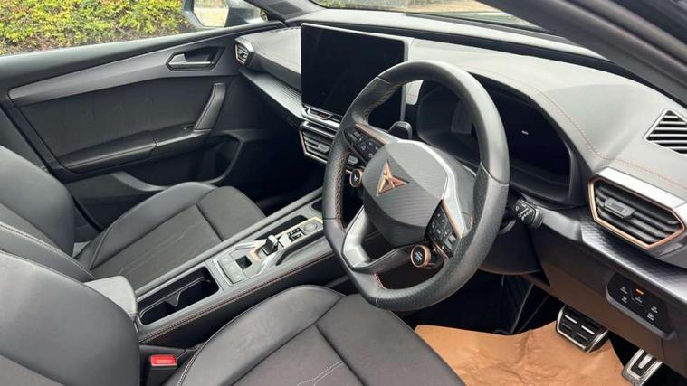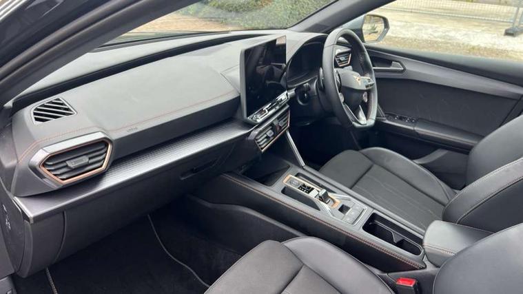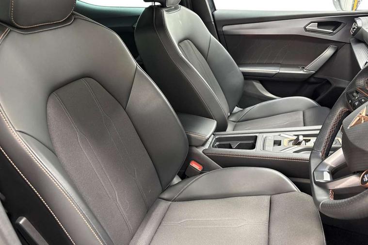 Adaptive cruise control with follow-to-stop and speed limiter, CUPRA drive profile selection with (Comfort/Sport/Individual), throttle response and gearshift mode, Digital cockpit, Dynamic road sign display, E-call, Four x USB Type C ports (2 in front and 2 in rear), Front and rear parking sensors, Front assist with forward collision warning braking reaction to vehicles, pedestrians and cyclists, Full link smartphone integration with Mirror Link, wireless Apple CarPlay and wired Google Android Auto, Lane assist, Lockable tailgate, PAS, RPM, trip computer, outside temp gauge, instrument light brightness, low fuel warning light, lights on reminder, gearshift indicator, Service interval indicator, Start/stop system with regenerative braking, Wireless phone charger, 7 speakers, Auxiliary input socket, Auto dimming rear view mirror, Body colour door handles, Body coloured bumpers, Cupra sports bumpers, Dark tinted rear windows, Electric front/rear windows, Electrically adjustable, heated and folding door mirrors, High beam assist, LED front fog lamps with cornering function, LED headlights with dynamic turn signals, tail lights, rear fog lights with rear coast to coast lighting, LED rear fog lamp, Rain sensing wipers, Rear side wing doors, Rear wash/wipe, Separate daytime running light with automatic headlight control and coming home feature, Third brake light, Welcome light with logo projector in door mirrors, 12v power supply in centre console, 3 seat bench in 2nd row, 5 headrests, 60/40 split rear bench seat with armrest, Ambient lighting with glovebox, footwell and single monocolour, Black headlining, Cloth/PVC upholstery, Cupra sports pedals, CUPRA Supersports, heated steering wheel with satellite buttons, Driver and passenger seat with manual height and lumbar adjustment, Folding boot cover, Front and rear reading lights X 4, Front centre armrest, Height/reach adjust steering wheel, Illuminated interior front door sills, ISOFIX points in outer rear seats with top tether anchorage points, Single front passenger seat, Storage pockets on rear of front seats, Sunvisors with illuminated mirror, Three zone climate control, Media system plus with 12.9" display + navigation pack - Leon Cupra, 3 point seatbelts on all rear seats, ABS, Brake control system - ESC and brake booster, Child proof door locks, Cupra black brake calipers, Driver and front passenger airbags with front passenger airbag de-activation, front side and curtain airbags, Electronic parking brake, Hill hold control, Rear disc brakes, Seat belt reminder for front and rear seats, Tiredness recognition system, Tyre pressure monitoring system, Anti theft alarm system with interior monitoring in cab, backup horn and towing protection, Central locking system Keyless Go, Locking wheel bolts, Chrome and copper interior detailing, 18" Windstorm machined sport black matt and silver alloy wheel with 92Y XL tyres, Tool kit,