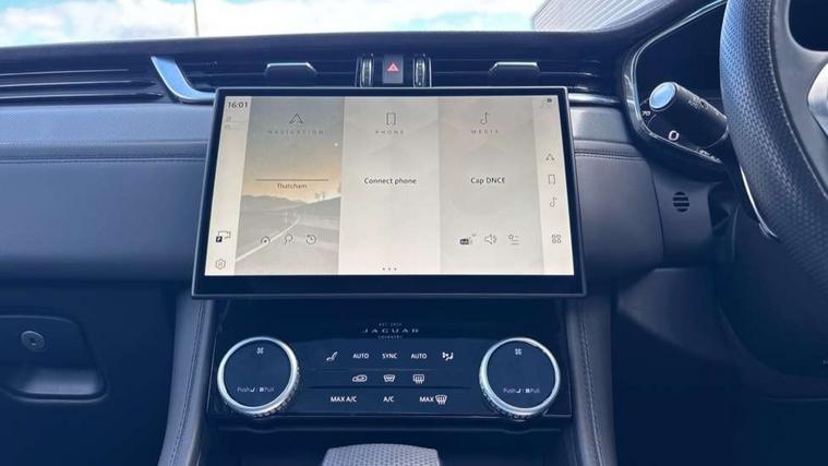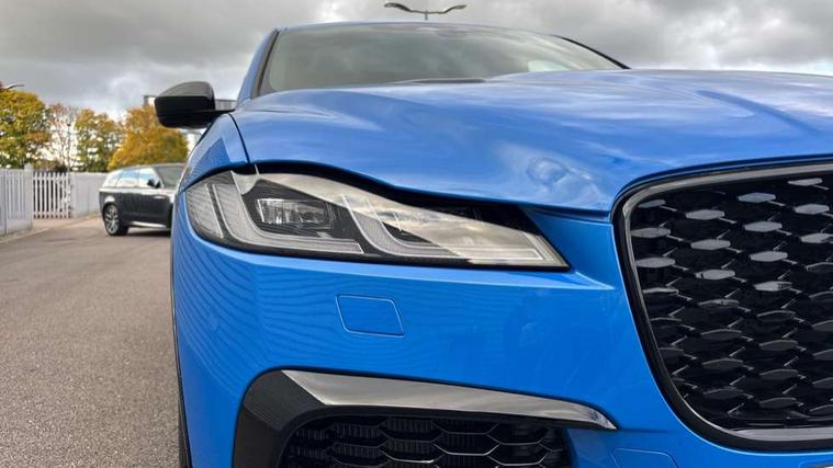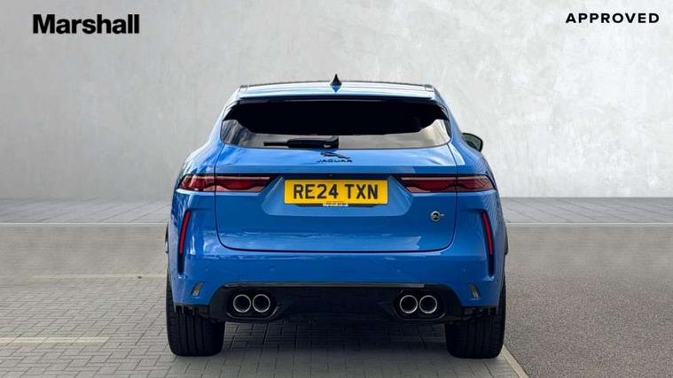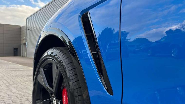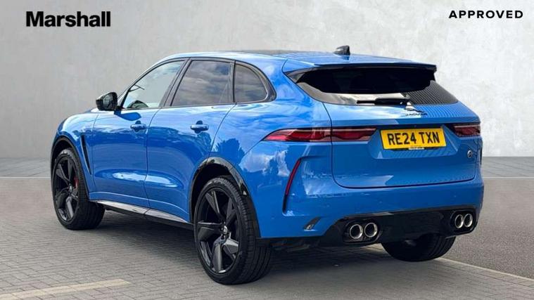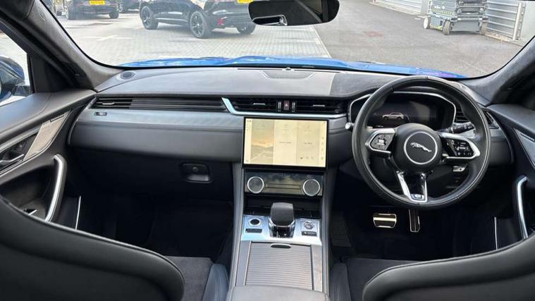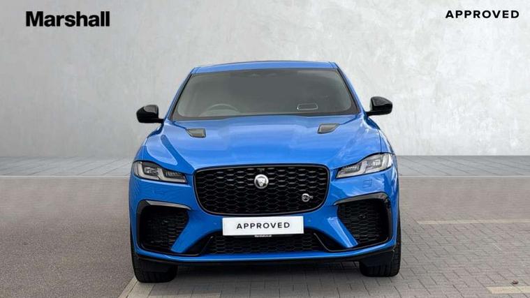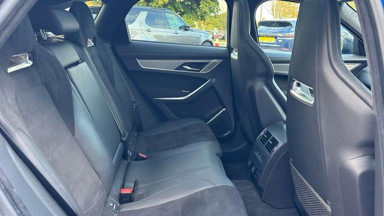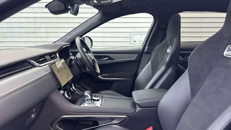 11.4" touchscreen, 3D surround camera, Adaptive cruise control with steering assist, Android Auto, Apple car play, Blind spot assist, Bluetooth connectivity, Clear exit monitor, Driver alert system, Driver condition monitor, eCall emergency call system, Eco driving style assistant, Electric power assisted steering, InControl remote, Interactive driver display digital with 12" TFT display, Jaguar drive control with adaptive surface response, Jaguar Toggle shift selector, Lane departure warning system, Lane keep assist, Outside temperature gauge, Personalisation profile management, Pivi pro connected navigation system with app interface and media storage, Power tailgate/boot lid, Pro services and wifi hotspot, Push button starter, Rear collision monitor, Rear traffic monitor, Service interval indicator, Speed proportional steering, Start up sequence with movement in dials and lighting, Traffic sign recognition with adaptive speed limiter, Trip computer, Voice control system, Wireless device charging, 8 speed automatic transmission, Adaptive dynamics, All terrain progress control, All Wheel Drive (AWD), Configurable dynamics, Electronic active differential with torque vectoring by braking, AM/FM radio, Bluetooth streaming, DAB Radio (Digital Audio Broadcasting), Dynamic volume control, InControl apps, InControl protect, iPod integration, Meridian 650W surround sound audio system with 17 speakers, subwoofer and active road noise cancellation, 'SVR' badge, 3 flash lane change indicators, AHBA and animated directional indicators, Approach Illumination, Auto dimming rear view mirror, Automatic headlights, Electric heated/power fold memory door mirrors with approach lights and auto dimming driver side, Electric windows with one touch open/close and anti trap, Front and rear wheel arch spats, Green tinted glass, Heated front windscreen + heated washer jets, Heated rear window with timer, Illuminated metal tread plates with Jaguar script, Jaguar script and leaper, LED High level third brake light, LED tail lights, Metal load space scuff plates, Non acoustic front windscreen, Privacy glass (rear side windows and rear screen), Rain sensor windscreen wipers, Rear fog lights, Rear metal tread plates, Rear side wing doors, Rear wiper, SVR front bumpers with lower meshes, Switchable active sports exhaust, Trailer stability assist, Variable front intermittent wipers, 12V power point front, 14 way electric heated and cooled driver and passenger memory performance front seats, 3 rear headrests, 3 seat bench in 2nd row, 40:20:40 SVR folding, heated rear seats with centre armrest, Additional power sockets - Two additional USB sockets in rear centre console and one 12V socket in trunk, Air distribution speed, Bright metal foot pedals, Centre armrest console, Centre console with side storage, Configurable cabin lighting, Deletion loadspace storage rails, Door sill tread plates, Ebony suede cloth headlining, Electrically adjustable steering column, Fold flat front seats, Front centre armrest with storage compartment, Front door storage space, Front headrests with SVR embossing, Glovebox finisher with jaguar script, Heated steering wheel, Hooks in loadspace, Illuminated glovebox, Interior front door handles with separate locking switches, ISOFIX on outer rear seats, Jaguar sense, Luggage tie downs in loadspace, Mist sensing, Multifunction steering wheel, Overhead lighting console, Overhead stowage for sunglasses, Passive front head restraints, Performace style individual rear seats for outer positions, Rear air vents, Rear armrest with twin cupholders, Rear centre headrest, Rear door storage space, Reversible boot floor, Satin chrome gearshift paddles, Shopping bag hook, Single front passenger seat, Sunvisors with illuminated vanity mirrors, SVR front fender with functional vents, SVR leather steering wheel with Black R logo, SVR lower valance/splitter, SVR luxury carpet mats, SVR vented bonnet, Twin front cupholders with cover, Online Pack with data plan - F-Pace, 395mm front and rear brakes, 3x3 point rear seatbelts, ABS, All surface progress control (ASPC), Brake pad warning light, DSC - Dynamic Stability Control, Electric parking brake (EPB), Emergency brake assist, Front airbags with passenger seat occupant detector, Front and rear seatbelt reminder, Front side airbags, Full length side window curtain airbag, Hill launch assist, Power operated child locks, Red brake calipers, Traction control, Tyre pressure monitoring system, Immobiliser, Keyless entry, Keyless Start, Locking wheel nuts, Perimeter alarm, Remote central locking, Valet mode, Summer tyres,