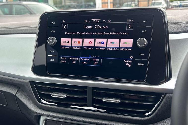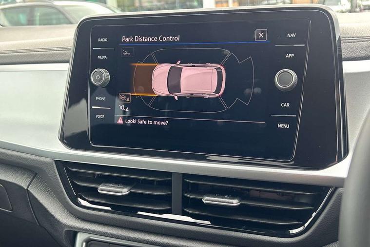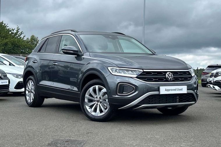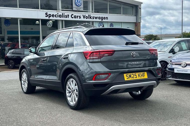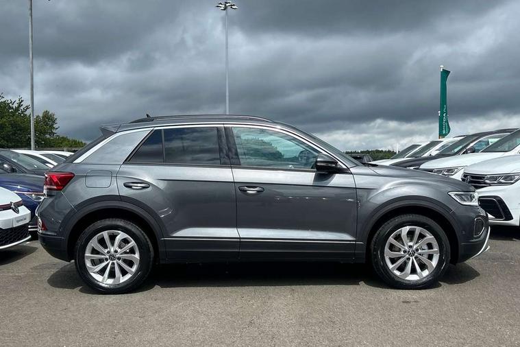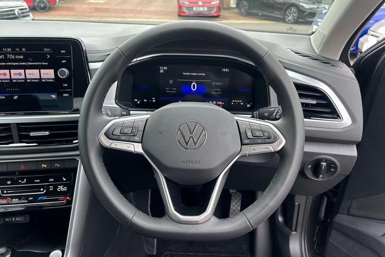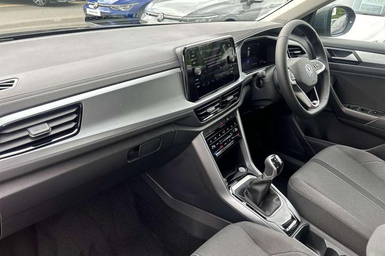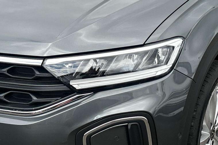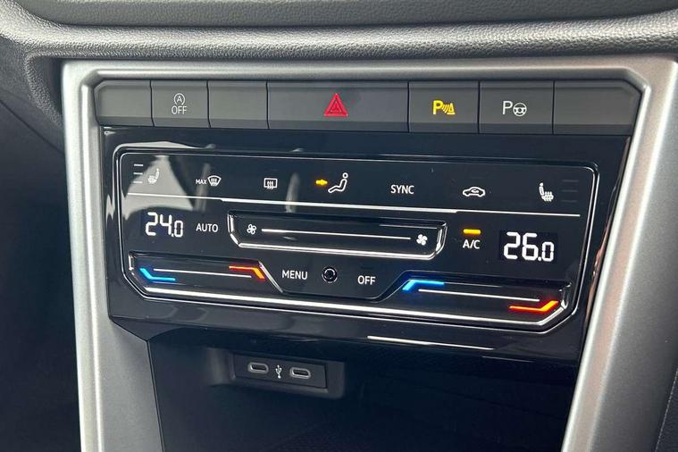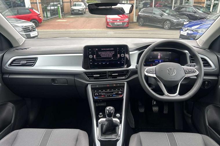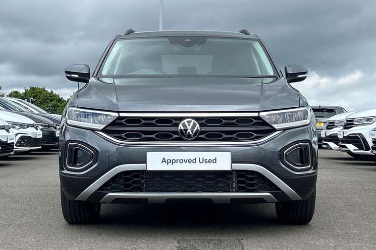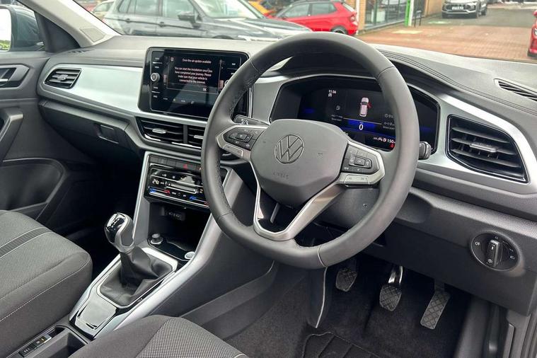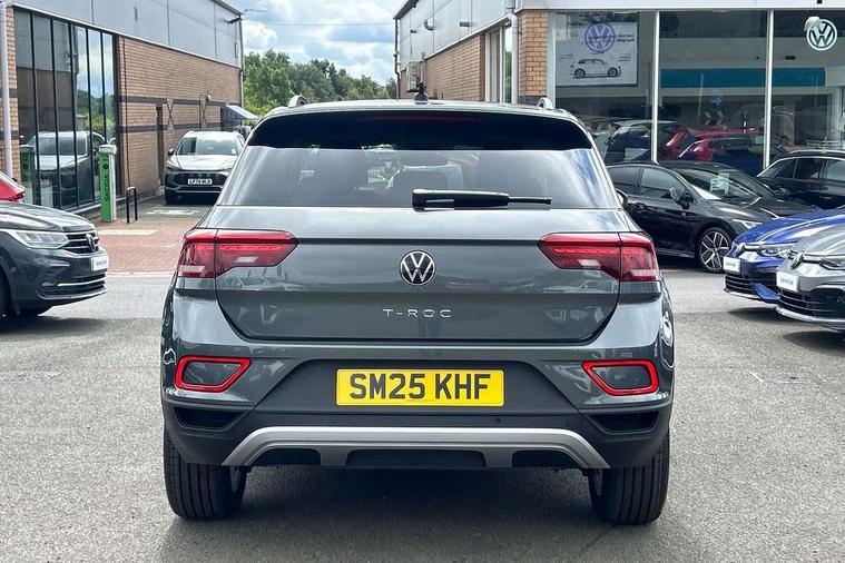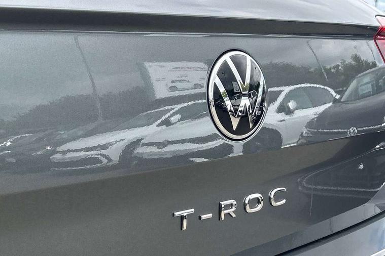 Advanced driver attention and drowsiness monitor, Dynamic road sign display, Emergency call service, Lane keeping system Lane Assist, Mobile phone interface, Modified key software - reduce switch off time for key status change to Long no motion, Online services, Park assist including front and rear parking sensors, Power assisted speed sensitive steering, Rear view camera, Service interval indicator, Tailgate/trunk lid release from outside, Think blue trainer driver tips and journey analysis, Warning sound and light for front seatbelts unfastened, Wireless app connect, Battery regeneration during braking, Front shock absorption, Rear shock absorption chassis with increased ride height, Start/stop function with battery regeneration, DAB Digital radio, Diversity antenna for FM reception, Music playback - MP3, WMA and AAC files, Premium USB cable in choice of either Apple or Android smartphone compatibility, SD card slot, Simultaneous pairing of 2 compatible mobile devices, Title and cover art display, We Connect and We Connect Plus functionality, Auto dimming interior rear view mirror, Automatic hazard lights activation under emergency braking, Automatic headlight control with LED separate daytime running lights with coming/leaving home function, Black roof rails, Body coloured bumpers and radiator grille with chrome trim and front fog lamps with chrome bezel, Body coloured exterior mirror housings and door handles, Electrically adjustable and heated door mirrors, Extended roof spoiler, Exterior mirrors aspherical on driver side, convex on front passenger side, External USB type C socket and charging sockets, Front windscreen wiper with intermittent wipe and 4 position delay, Heated rear window, LED 3rd brake light, LED rear combination lamps, LED rear number plate lights, Power windows with comfort operation and circuit breaker, Privacy glass for rear side windows and rear window, Rain sensor, Rear exhaust tailpipe, Rear fog light on one side and reversing lights on both sides, Rear side wing doors, Rear wash/wipe with intermittent wipe setting, Remote electrically foldable door mirrors, puddle lights and reverse activated passenger's door mirror, 12V power socket in centre console, 3 rear head restraints, 3 seat bench in 2nd row, 4 load lashing points in luggage compartment, Air care climatronic air conditoning system with active combination filter and 2-zone temperature control, Black stitching for floor mats, Ceramique roof liner, Cloth upholstery, Door and side trim panel in cloth, Drawer under drivers seat, Driver/front passenger seat height adjustment, Front centre armrest, Front comfort sports seats, Front cupholders x 2, Front reading light, Front seat back storage pockets, Glove compartment door with light, Instrument lighting, white adjustable panel illumination, Interior ambient lighting and surround lighting, Interior light delay, Isofix child seat preparation, Leather gearshift handle, Load-through provision with cup holder when folded down ('Unsplit rear seat bench, split folding backrest, with centre armrest), Luggage compartment lighting, Lumbar support for driver's and front passengers seat, Non-folding front passenger seat backrest, Single front passenger seat, Storage compartment in left and right luggage area, Storage compartment in rear doors, Storage compartments in driver and front passenger doors, Sunvisors with illuminated vanity mirrors, Variable boot floor, height adjustable and removable, Driver assistance pack without proactive passenger protection - T-Roc Life/Match, 3 point height adj front seatbelts + pretensioners, 3 point seatbelts in outer rear with ECE label, ABS, Child locks on rear doors, City emergency braking and pedestrian monitoring, Driver and front passenger airbag with front passenger airbag deactivation, Driver and front passenger safety-optimised head restraints, Drivers seatbelt reminder, Electronic parking brake, Electronic Stability Control (ESC) inc EDL (Electronic Differential Lock) and ASR (Traction Control), Front and rear passengers curtain airbag system including front side airbags, Front disc brakes, Hill start assist, Predictive pedestrian protection, Rear disc brakes, Two tone horn, Tyre pressure loss indicator, Volkswagen roadside assistance, Alarm with interior protection, Keyless locking and starting system keyless access with safelock, Pewter matt decorative inserts for intrument panel, centre console and door panels at the front, Trims for alloy wheels,