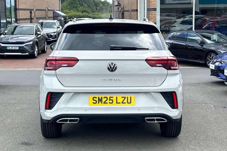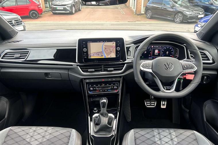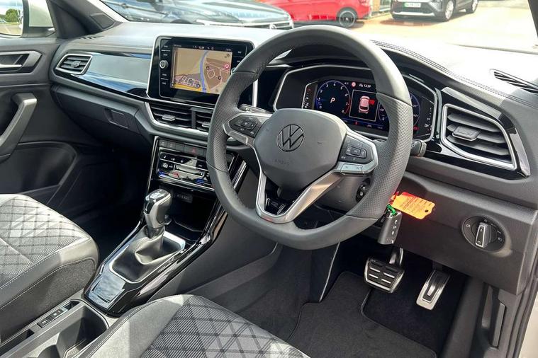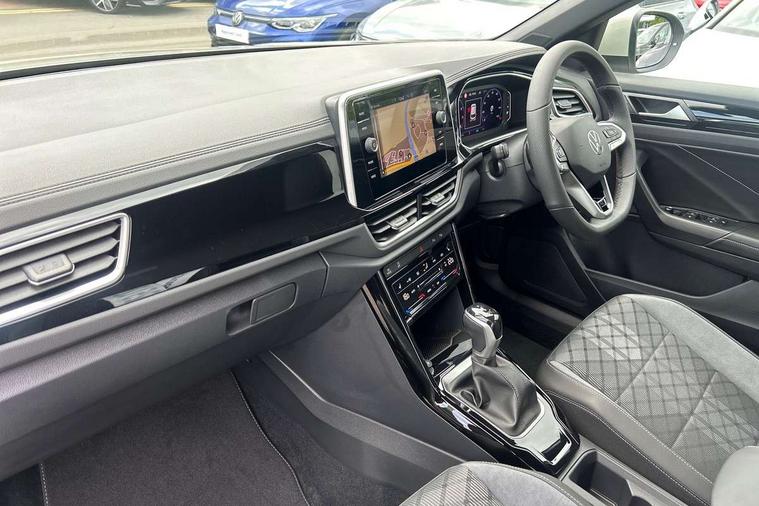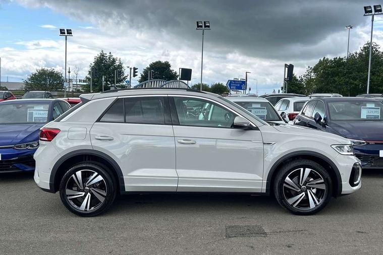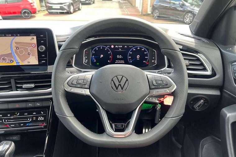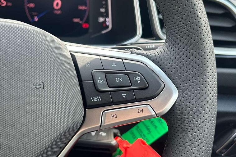 10.25" Digital cockpit pro, Advanced driver attention and drowsiness monitor, Emergency call service, Lane keeping system Lane Assist, Mobile phone interface, Modified key software - reduce switch off time for key status change to Long no motion, Online services, Park assist including front and rear parking sensors, Service interval indicator, Tailgate/trunk lid release from outside, Think blue trainer driver tips and journey analysis, Warning sound and light for front seatbelts unfastened, Wireless app connect, Battery regeneration during braking, Start/stop function with battery regeneration, DAB Digital radio, Diversity antenna for FM reception, Front and rear 6 speakers, Music playback - MP3, WMA and AAC files, Premium USB cable in choice of either Apple or Android smartphone compatibility, SD card slot, Simultaneous pairing of 2 compatible mobile devices, Title and cover art display, We Connect and We Connect Plus functionality, Auto dimming interior rear view mirror, Automatic hazard lights activation under emergency braking, Automatic headlight control with LED separate daytime running lights with coming/leaving home function, Body coloured exterior mirror housings and door handles, Electrically adjustable and heated door mirrors, Extended roof spoiler, Exterior mirrors aspherical on driver side, convex on front passenger side, External USB type C socket and charging sockets, Front windscreen wiper with intermittent wipe and 4 position delay, Heated rear window, LED 3rd brake light, LED rear combination lamps, LED rear number plate lights, Power windows with comfort operation and circuit breaker, Privacy glass for rear side windows and rear window, R-Line design body coloured bumpers, Rain sensor, Rear exhaust tailpipe, Rear fog light on one side and reversing lights on both sides, Rear side wing doors, Rear wash/wipe with intermittent wipe setting, Remote electrically foldable door mirrors, puddle lights and reverse activated passenger's door mirror, 12V power socket in centre console, 3 rear head restraints, 3 seat bench in 2nd row, 4 load lashing points in luggage compartment, Air care climatronic air conditoning system with active combination filter and 2-zone temperature control, Black roof lining, Chrome plated decorative trims, Chrome plated radiator grille inserts, air vent surrounds and light switch surrounds, Door and side trim panel with leatherette insert, Front + rear carpet mats, Front centre armrest, Front cupholders x 2, Front footwell illumination, Front reading light, Front scuff plates with R Line logo, Front seat back storage pockets, Glove compartment door with light, Instrument lighting, white adjustable panel illumination, Interior ambient lighting and surround lighting, Interior light delay, Isofix child seat preparation, Leather gearshift handle, Load-through provision with cup holder when folded down ('Unsplit rear seat bench, split folding backrest, with centre armrest), Luggage compartment lighting, Single front passenger seat, Stainless steel pedals, Storage compartment in left and right luggage area, Storage compartment in rear doors, Storage compartments in driver and front passenger doors, Sunvisors with illuminated vanity mirrors, Variable boot floor, height adjustable and removable, Driver assistance pack without proactive passenger protection - T-Roc, 3 point height adj front seatbelts + pretensioners, 3 point seatbelts in outer rear with ECE label, ABS, Child locks on rear doors, City emergency braking and pedestrian monitoring, Driver and front passenger airbag with front passenger airbag deactivation, Driver and front passenger safety-optimised head restraints, Drivers seatbelt reminder, Electronic parking brake, Electronic Stability Control (ESC) inc EDL (Electronic Differential Lock) and ASR (Traction Control), Front and rear passengers curtain airbag system including front side airbags, Hill start assist, Predictive pedestrian protection, Rear disc brakes, Two tone horn, Tyre pressure loss indicator, Volkswagen roadside assistance, Piano black decorative inserts in dashboard and front door trim panels, Trims for alloy wheels,