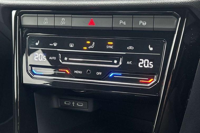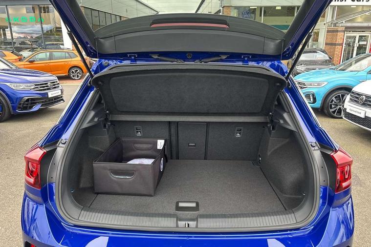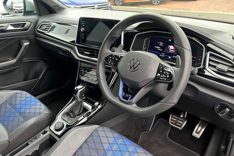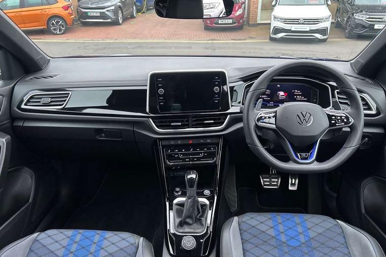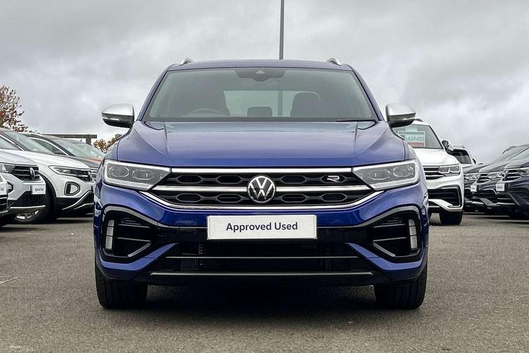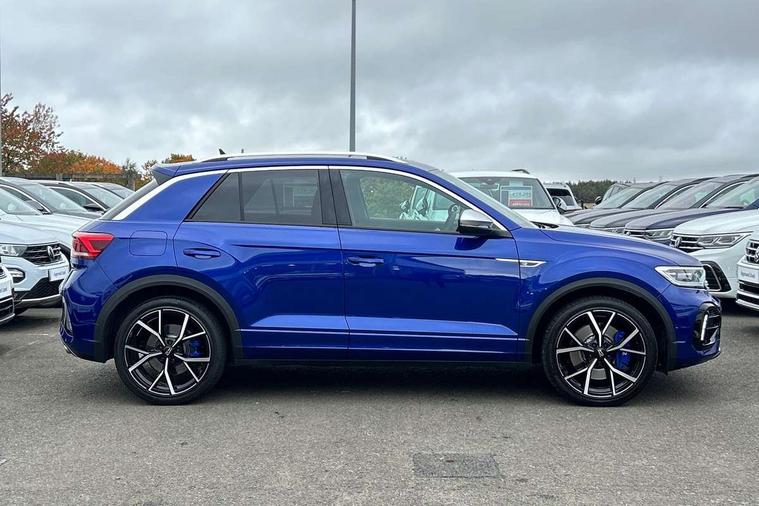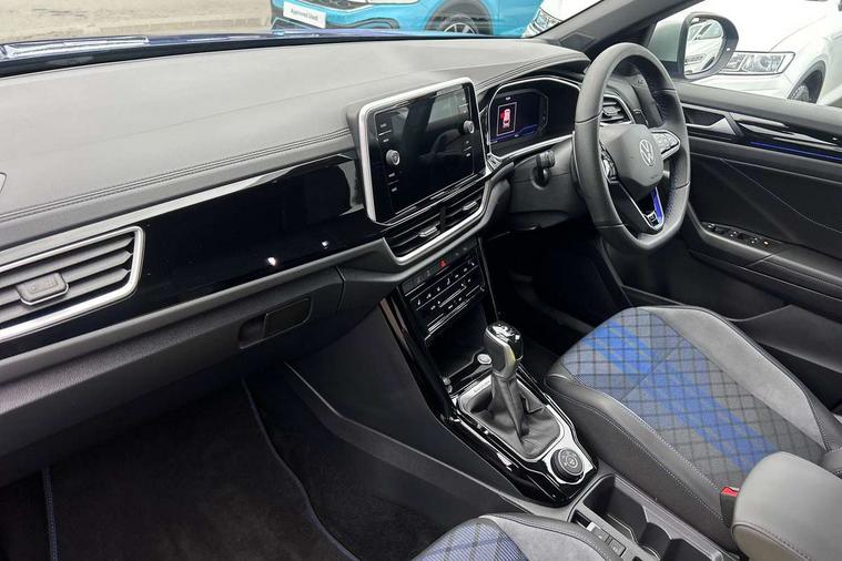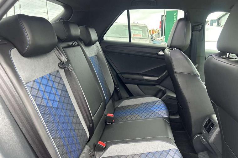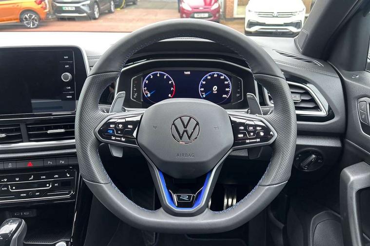 10.25" Digital cockpit pro, Advanced driver attention and drowsiness monitor, Emergency call service, Lane keeping system Lane Assist, Mobile phone interface, Modified key software - reduce switch off time for key status change to Long no motion, Online services, Park assist including front and rear parking sensors, Service interval indicator, Tailgate/trunk lid release from outside, Think blue trainer driver tips and journey analysis, Warning sound and light for front seatbelts unfastened, Wireless app connect, Battery regeneration during braking, Four wheel drive, Start/stop function with battery regeneration, DAB Digital radio, Diversity antenna for FM reception, Music playback - MP3, WMA and AAC files, Premium USB cable in choice of either Apple or Android smartphone compatibility, SD card slot, Simultaneous pairing of 2 compatible mobile devices, Title and cover art display, We Connect and We Connect Plus functionality, Auto dimming interior rear view mirror, Automatic hazard lights activation under emergency braking, Automatic headlight control with LED separate daytime running lights with coming/leaving home function, Body colour door handles, Electrically adjustable and heated door mirrors, Extended roof spoiler, Exterior mirror housings painted, Exterior mirrors aspherical on driver side, convex on front passenger side, External USB type C socket and charging sockets, Front windscreen wiper with intermittent wipe and 4 position delay, Heated rear window, LED 3rd brake light, LED rear combination lamps, LED rear number plate lights, Power windows with comfort operation and circuit breaker, Privacy glass for rear side windows and rear window, R-Line design body coloured bumpers, Rain sensor, Rear fog light on one side and reversing lights on both sides, Rear side wing doors, Rear wash/wipe with intermittent wipe setting, Remote electrically foldable door mirrors, puddle lights and reverse activated passenger's door mirror, 12V power socket in centre console, 3 rear head restraints, 3 seat bench in 2nd row, 4 load lashing points in luggage compartment, Air care climatronic air conditoning system with active combination filter and 2-zone temperature control, Ambient lighting - 10 colour (blue), Black roof lining, Chrome plated decorative trims, Chrome plated radiator grille inserts, air vent surrounds and light switch surrounds, Door and side trim panel with leatherette insert, Drawer under drivers seat, Front + rear carpet mats, Front centre armrest, Front cupholders x 2, Front footwell illumination, Front scuff plates with R logo in door apertures, Front seat back storage pockets, Front sport seats, Glove compartment door with light, Heated leather wrapped multi function sports steering wheel with tiptronic, Instrument lighting, white adjustable panel illumination, Interior light delay, Isofix child seat preparation, Leather gearshift handle, LED interior light with switch off delay/dimmer and 2 front/rear LED reading lights, Load-through provision with cup holder when folded down ('Unsplit rear seat bench, split folding backrest, with centre armrest), Luggage compartment lighting, Non-folding front passenger seat backrest, R-logo stitching in floor mats, Single front passenger seat, Stainless steel pedals, Storage compartment in left and right luggage area, Storage compartment in rear doors, Storage compartments in driver and front passenger doors, Sunvisors with illuminated vanity mirrors, Variable boot floor, height adjustable and removable, Driver assistance pack without proactive passenger protection - T-Roc, R styling pack - T-Roc, 3 point height adj front seatbelts + pretensioners, 3 point seatbelts in outer rear with ECE label, ABS, Child locks on rear doors, City emergency braking and pedestrian monitoring, Driver and front passenger airbag with front passenger airbag deactivation, Driver and front passenger safety-optimised head restraints, Drivers seatbelt reminder, Electronic parking brake, Electronic Stability Control (ESC) inc EDL (Electronic Differential Lock) and ASR (Traction Control), Front and rear passengers curtain airbag system including front side airbags, Hill descent control, Hill start assist, Predictive pedestrian protection, Rear disc brakes, Two tone horn, Tyre pressure loss indicator, Volkswagen roadside assistance, Trims for alloy wheels,