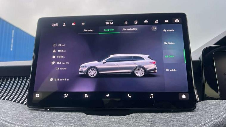 13" touchscreen display with satellite navigation, 4x USB-C ports (2x in front centre console and 2x in rear) (45W), Adaptive cruise control with speed assist, lane assist plus and traffic tram assist, Blind spot detection with door exit warning, Bluetooth system, CareConnect and Emergency Call, ChatGPT functionality, Drive mode selection, Driver fatigue sensor, Front assist with extended predictive pedestrian protection, Front cross traffic assist, PAS, Quick start all heating software functionality, Stop/start engine system, Traffic sign recognition, Turn assist with evasive assistance, Virtual Cockpit - 10.25" digital display, Voice control system, Washer for rear camera, Wireless charging for one smartphone (15W) with cooling function, Wireless smartlink apple carplay, SmartLink+ android auto, Mode 3 charging cable, 8 Speakers, DAB Digital radio, Display cleaner, FM radio connection, Web radio connection, Acoustic side windows and interior noise suppression, Backdrop lighting, Body colour door handles, Body coloured door mirrors, Chrome roof rails, Chrome window surround, Dark chrome grille surround, Frameless auto-dimming rear view mirror with USB-C, Ice scraper in fuel tank cap, LED 3rd brake light, Light assist with High beam control, Light assistant (coming/leaving home/tunnel light), Privacy glass, Rear fog light (x1), Rear roof spoiler, Rear side wing doors, Rear windscreen wiper, Unique dark chrome design logo on alloy wheels, Windscreen wipers with rain sensor, 12V socket 1x centre console 1x boot, 2x cargo elements in boot, 2x light in boot, 3 seat bench in 2nd row, 4x foldable bag hooks in boot, 60:40 Split folding rear seats, Bottle holders in the front doors 1.5 litre bottle and rear 1.5 litre bottle, Cup holder in front with easy open mat, Front armrest with storage box, Heated front seats, Height adjustable front and rear head restraints, Illuminated glovebox, Interior lights with control switches, Isofix child seat fittings in outer rear and front passenger seats, LED front and rear reading lights, Single front passenger seat, Skoda lettering on steering wheel, Standard front seats, Storage compartment with cover, Storage pockets on back of front seats, Sun visors with illuminated vanity mirrors, Ticket holder on A Pillar, Tri zone climate control, Umbrella in driver's door, 3 rear seatbelts, 8 Airbags - Front driver and passenger, front side driver and passenger, centre, curtain front and rear, drivers knee, Crew protect assist, Driver and passenger seatbelts with warning light, Electronic parking brake, ESC including ABS, EBV, MSR, ASR, EDS, HBA, DSR, RBS, CBC, multi-collision brake (MKB) and Auto hold, Hill hold assist, Power operated child lock in rear doors, Alarm with interior monitoring tilt sensor and back up horn, Backrest remote release from trunk, Electronic engine immobiliser, Keyless start/stop, Remote central locking with SAFE system, Third key, Decorative front door sills, Tyre repair kit,