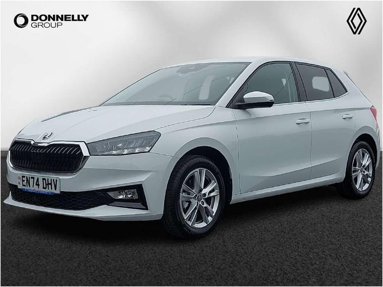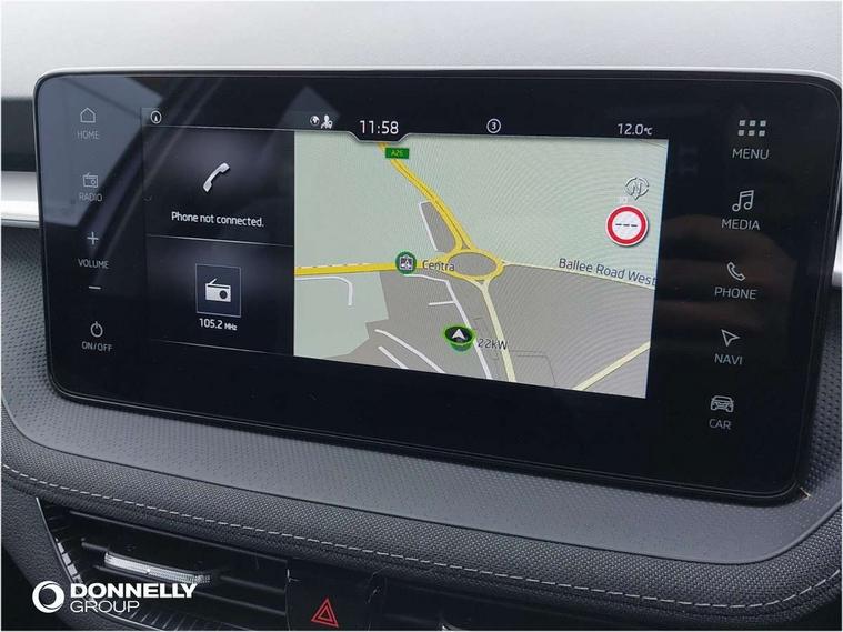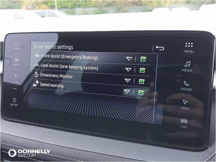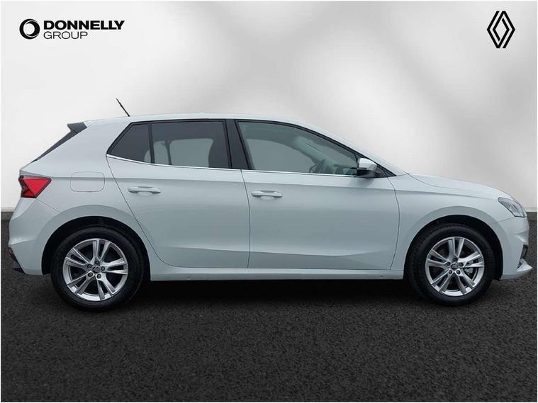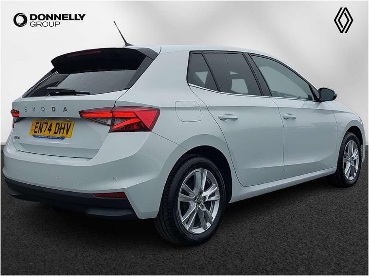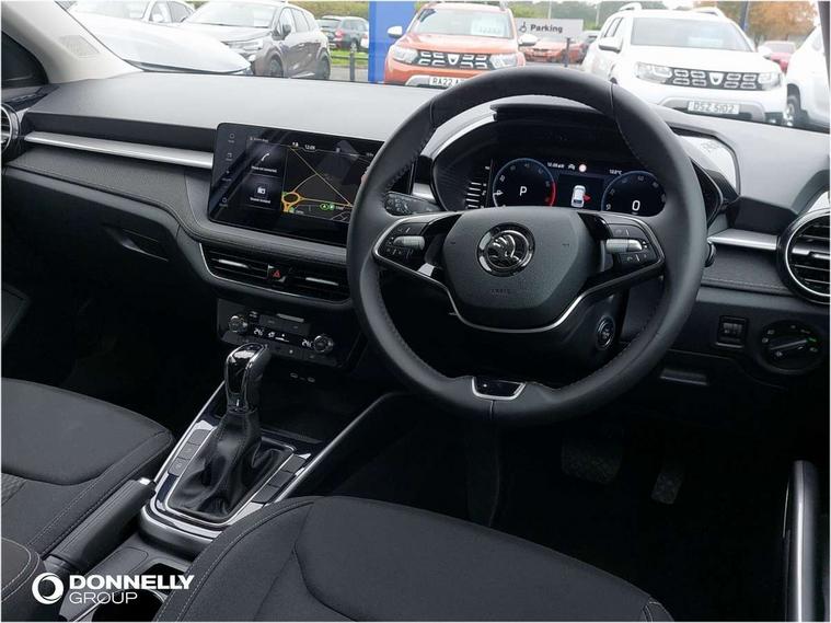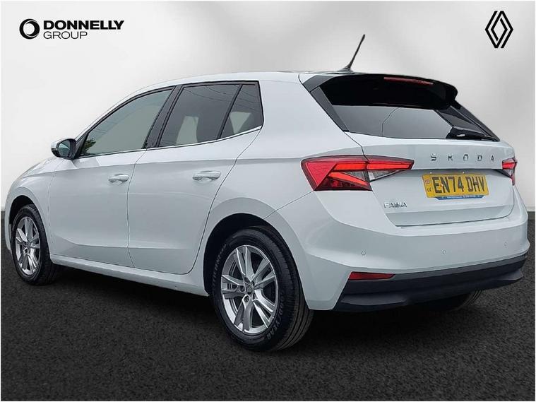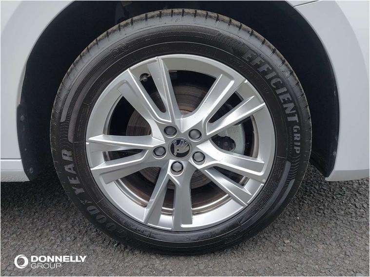 Advanced driver attention and drowsiness monitor, Bluetooth connection, Electromechanical power steering, Exterior temperature gauge, Service interval indicator, Traffic sign recognition, Virtual cockpit with 10.25" colour display, Wireless SmartLink for Apple CarPlay and Android Auto, 6 Speakers (4 in front and 2 in rear), 9.2" colour display skoda navigation system with voice control and web radio, Auxiliary socket for external MP3 player, DAB digital radio reception, Auto dimming rear view mirror, Body colour door mirrors, Body coloured bumpers, Chrome window surround, Door mirror integrated indicators, Front and rear electric windows, Front window wiper intermittent control, Headlight range control - Automatic, Ice scraper in fuel cap, LED daytime running lights with coming and leaving home feature, LED rear lights, Privacy glass, Rear LED fog light, Rear side wing doors, Rear window wiper with washing nozzles, Roof mounted spoiler, SKODA tailgate lettering in chrome, Third brake light, 2 reading lights in front and 2 reading lights in rear, 3 rear headrests, Backrest split and folding, Central console with removable cup holder and storage box, Chrome handbrake release button, Comfort seats, Door sills with fabia badging, Dual zone air conditioning with climatronic electronic control, Fabric upholstery, Front centre armrest, Gearshift knob/handle in leather, Hand brake lever handle in leather, Height adjustable front headrests, Height adjustable front seats, Height adjustable steering wheel, ISOFIX and TopTether anchorage points to the outer rear seats, ISOFIX and TopTether on the front passenger seat, Luggage compartment lighting, Manually adjustable lumbar support in front seats, Metallic grey interior door handles, Pollen filter, Rear seat bench unsplit, Single front passenger seat, Storm grey headlining, Sun visors with mirror and airbag label on passenger side, Textile floor mats, Ticket holder, Umbrella in drivers door, 3-point height adjustable front seats belts with pretensioner and force limiter, Automatic warning lights in case of crash, Driver and passengers airbag with switch off function, e-Call+, ESC including ABS, MSR, ASR, EDS, HBA and XDS, Front and rear seat belt warning, FRONT ASSIST (AEB City and AEB Inter Urban), Front side airbags, Head airbags, Hill hold control, One tone horn, Pedestrian protection, Three rear 3-points safety seat belts with pretensioner and force limiter including stop function for outer rear seat belts, Tyre pressure monitoring system, Anti-theft alarm system including immobiliser, interior monitoring, backup horn, and towing protection, Central locking with radio remote control, interior controls, SAFE function and 2 foldable keys, Chrome edged air vents, Metallic grey central console cover, Metallic grey upper decorative trim, Satin black door and side trim panel in front, Textile microsuede grey lower decorative trim with art grey stitching, Anti-theft wheel bolts protection, Super-low rolling resistance tyres,