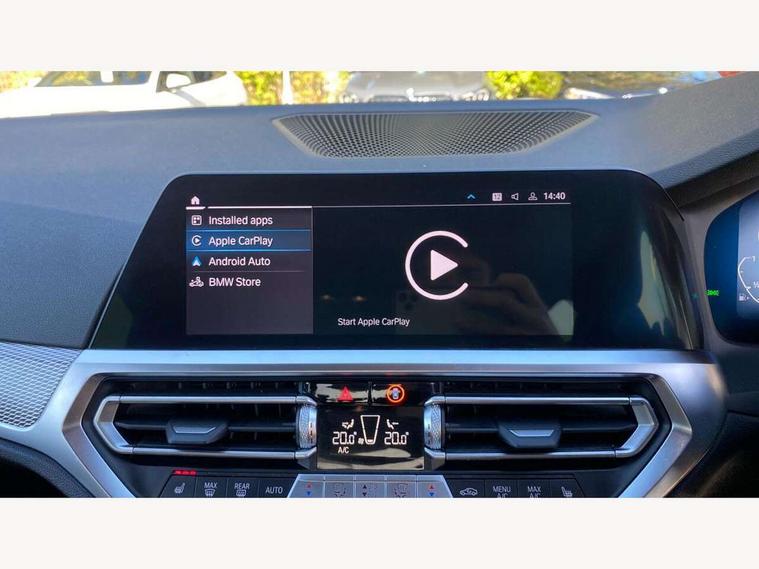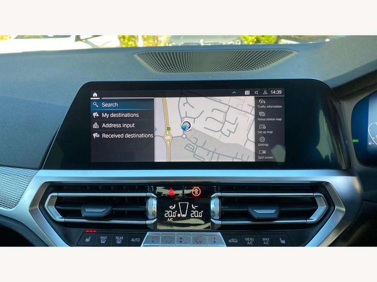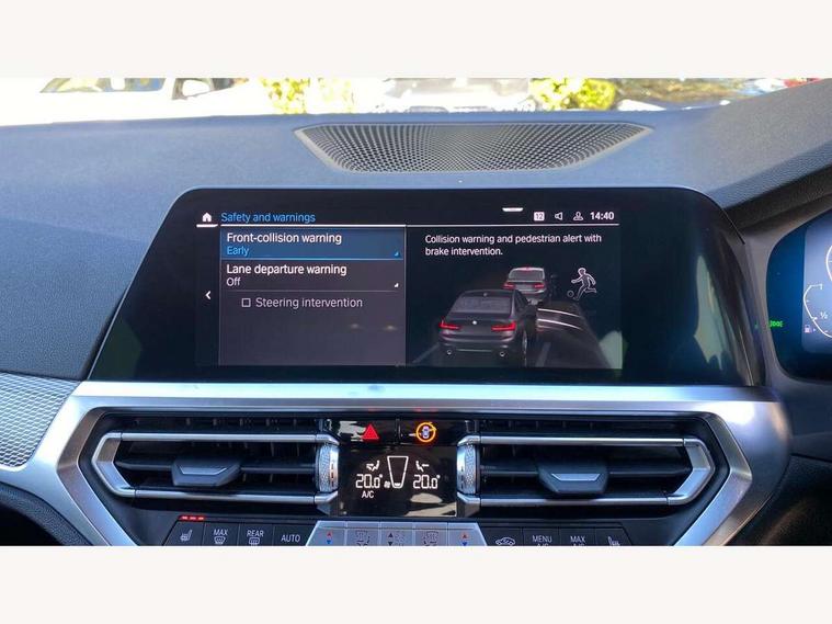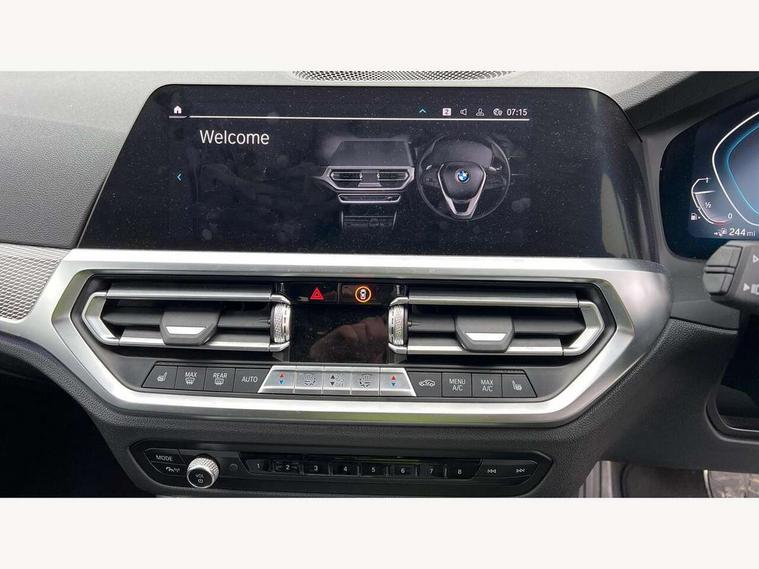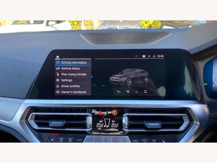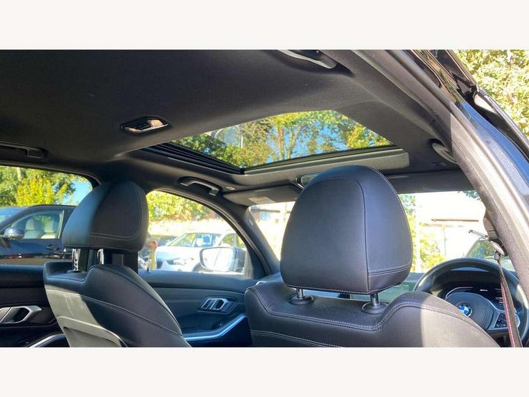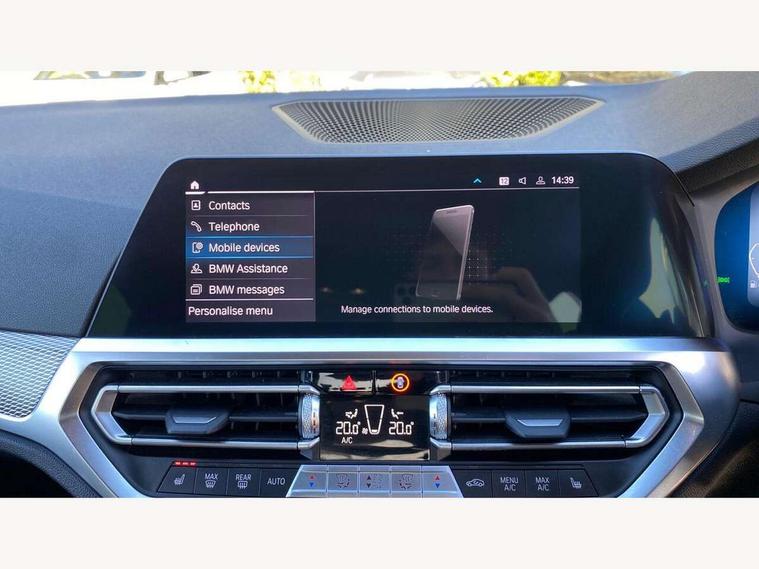 Active guard plus, Attentiveness assist, Auto start-stop, BMW Live Cockpit Professional Nav with 12.3" instrument display + 10.25" display, Intelligent Voice Assist, BMW OS 7, HDD, 2USB, 4G LTE connect, BMW service history, BMW Teleservices, Brake pad wear indicator in front and rear, Check Control warning system for monitoring of lights and door/luggage compartment open warning, Condition based service, Electric power steering with Servotronic steering optimised at all speed ranges, iDrive controller on centre console, Instrument cluster with speedometer with mph readout, tachometer, fuel gauge and oil temperature gauge, Integrated owners handbook, Oil sensor for level and grade, warning by check control system, On board computer - average speed+fuel consumption, service interval, clock/date, odometer/trip meter, outside temperature display and ice warning, Optimum shift indicator, Personal Profile - automatic lock when driving away selectable, Balanced 50/50 weight distribution, Battery cut-out switch, Drive performance control - ECO PRO, comfort and sport modes, Petrol Particulate Filter, Stroke dependent dampers, DAB tuner, Electronic service booklet, Acoustic glazing, Active airstream chrome frame kidney grille with 8 high gloss black vertical slats, Automatic headlight beam throw control with load dependent regulating reaction, dynamic compensation of braking dive and acceleration squat, Black roof mouldings, Body colour door handles, Body colour front and rear bumpers, Body colour fuel filler flap, Body colour mirror caps with bottom segment in matt black, Dynamic brake lights, Electric windows - front and rear, with open/close fingertip control, anti-trap facility and comfort closing, Exhaust tailpipe - split left and right, Exterior mirrors - electrically folding with anti-dazzle, Fading support, Front and rear bumper system with replaceable deformation elements, Front black door sill finishers with BMW designation, Green tinted heat protection glazing, High gloss shadow line exterior trim, Interior rear view electrochromatic mirror with automatic anti dazzle function, LED daytime running lights, LED front fog lights, Lightweight engineering, M designation on front side panels, left and right, Matt black exterior B pillar, Model designation on right side of tailgate, Rain sensor with automatic headlight activation, Shark fin antenna, Two part LED tailights in L-shape with components in smoked glass, brake light, LED turn indicator and rear fog light, Visible VIN plate, Welcome lights in interior and door handle area, Windscreen wipers with integrated washing jets, 12V power socket in front storage compartment, 2 front cupholder in centre console with clamping elements and matt black inlay, 3 rear seats with non folding headrests with 3 point seat belts, 3 zone automatic air conditioning, 4 pieces lashing eyelets in luggage compartment, 40:20:40 split folding rear seat with loading system, Ambient lighting with welcome carpet light, Anthracite headlining, Armrest integrated in front and rear door trim + front centre console armrest, Centred top Luggage compartment lights, Four grab handles integrated in roof lining, Front and rear door exit lighting (left / right), Front and rear door pockets, Front and rear reading lights, Front and rear velour floor mats, Front head restraints, Front sport seats, Heated driver and front passenger seats, Height adjustable mechanically and infinitely variable steering column, Illuminated armrest storage compartment, Illuminated glove compartment with separate small compartment, Interior lighting - front centre over interior mirror with soft light, rear centre and front and rear footwell lighting, M sport leather steering wheel, Make-up mirror lights, Rear centre armrest with 2 cupholders, Rear centre console with storage compartment and ventilation grille, Sunvisors with vanity mirrors and ticket pocket, Toolkit located in luggage compartment, Connected pack professional - 3 Series Saloon/Touring, M sport exterior styling pack - 3 Series Saloon/Touring, 2 tone horn, BMW emergency call, Brake energy regeneration, Braking pre-tensioning, Child proof locking system in rear door, Child seat ISOFIX attachment rear outer seats, Coasting in idle in ECO PRO mode, Crash sensor activating of airbags, Unlocking doors, hazard warning lights, fuel cut off, interior lighting+activation of safety battery terminal clamp, Driver and front passenger side airbags, integrated in the door side seat backrest bolsters for all seat variants, Driver/Front Passenger airbags, Dry braking, Dynamic brake control, Dynamic stability control + (DSC+) - Anti-lock Braking System (ABS) with brake assist and cornering brake control + Automatic Stability Control (ASC), Dynamic Traction Control - DTC, Electromechanical parking brake including automatic hold function and automatic release of the parking brake when pulling away, Electronic differential lock control (EDLC), Front passenger manual airbag deactivation, Head airbags for all 4 outer seats, Hill start assist, Seat belt security check for driver and front passenger, Side impact protection, Three 3 point seat belts on all seats including front belt stopper, pyrotechnic belt tensioners and belt force limiters, Tyre pressure monitoring with three level warning strategy, Ventilated front and rear disc brakes, Warning triangle and first aid kit, Alarm system (Thatcham 1) with remote control and electronic engine immobiliser, Central locking switch for all doors, fuel filler cap and luggage compartment, Remote control with integrated key one button open/close vehicle and windows, sole opening of the luggage compartment lid and panic mode, Start/stop button with Comfort Go keyless engine start and auto Start/stop deactivation button, Vehicle key with M specific designation, Reduced rolling resistance tyres,