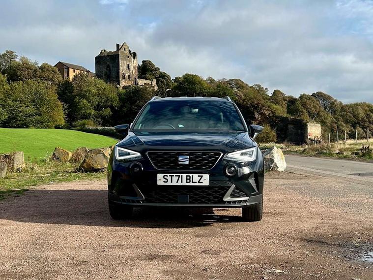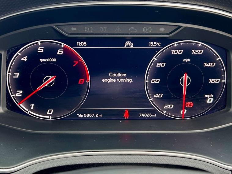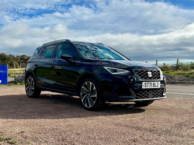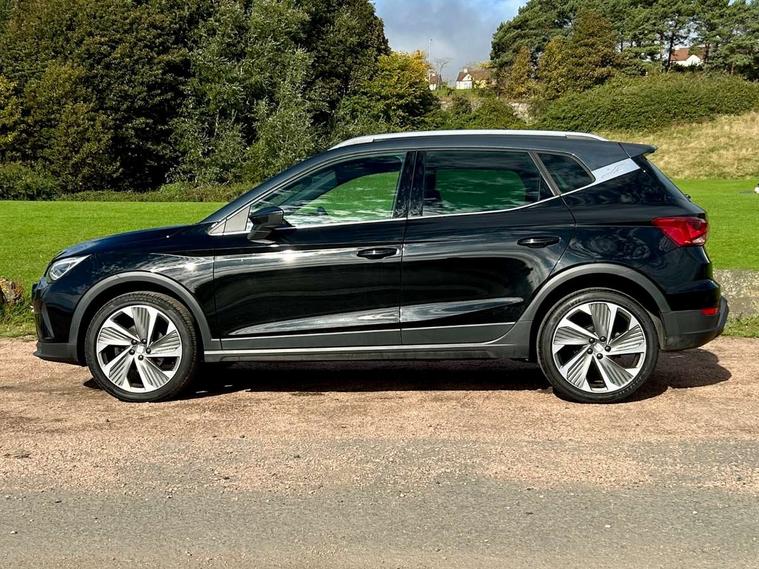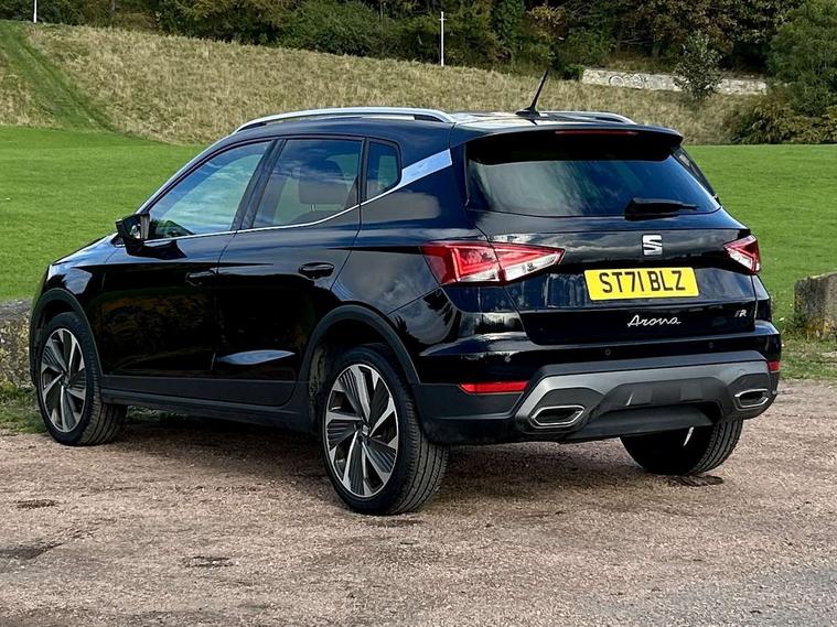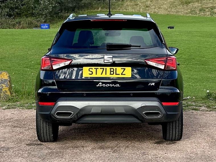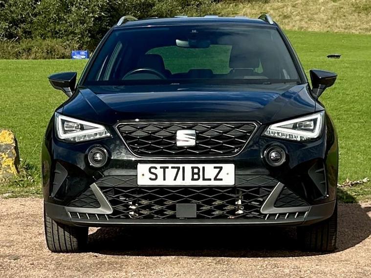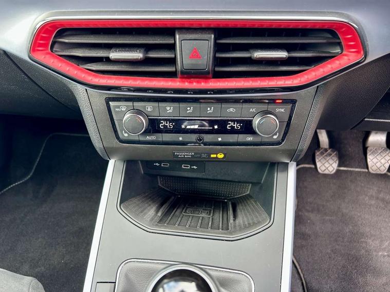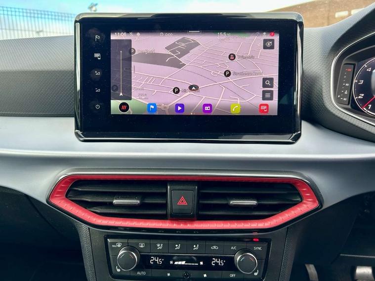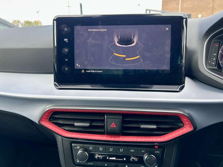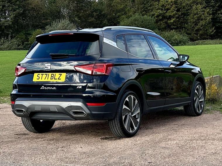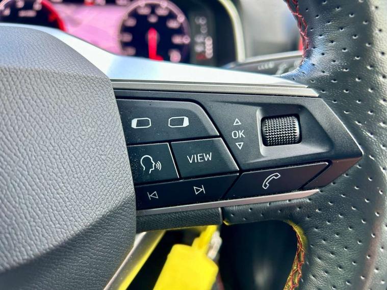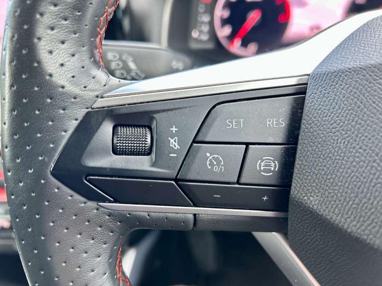 Digital cockpit, Electric speed sensitive power steering, Full Link Smartphone Integration with Mirror Link, Apple Car Play, Google Android Auto with USB Type C cable for Apple and Android compatibility, Lane keeping system, Rear parking sensor, Seat connect with safety, service, remote and online, SEAT Drive profile - Four different models normal-sport-eco-individual, steering response, throttle response, Bluetooth interface for hands free and audio streaming, DAB digital radio and AM/FM radio, Steering wheel mounted audio controls, Anti theft roof antenna, Auto dimming interior rear view mirror, Automatic activation of hazard warning lights, Body coloured bumpers, Body coloured door handle inserts, Chrome roof rails and window surrounds, Chrome window trim, Dark tinted rear windows, Electric front/rear windows, Electrically adjustable, heated and folding door mirrors, FULL LED automatic headlights with dynamic headlight range control, coming and leaving home, LED daytime running lights, LED rear tail lights and licence plate lights, Protective side mouldings, Rain sensing wipers, Rear spoiler, Rear window wash/wipe, Roof colour door mirrors, Twin exhaust pipe styling hidden exhaust pipe, Visible VIN plate, Windshield wiper with intermittent control and potentiometer, 2 cupholders, 60/40 split folding rear seat, Aircare filter, Black interior roof, Daring red Illuminated coloured air vent, Double boot floor, Driver sunvisor with covered mirror + card holder, Dual zone climate control, Front courtesy light with 2x front and 2x rear reading lights, Front seat back storage pockets, Front sport seats, Heated front seats, Height adjustable front seats, Height/reach adjustable steering column, Illuminated boot, Interior ambient lighting, Interior light in footwell, central console and door panel, ISOFIX points in outer rear seats with top tether anchorage points, Microsuede cloth upholstery, Passenger sunvisor with vanity mirror, Perforated flat bottomed leather steering wheel/gear knob/handbrake with red stitching and FR logo, Two front and three rear height adjustable headrests, Connectivity pack plus - Arona, Interior chrome pack - Arona, 3 point seatbelts on all rear seats, ABS, Active front headrests, Child locks on rear doors, Driver and front passenger airbags with front passenger airbag de activation, front side and curtain airbags, Electronic stability control, Emergency Brake Assist (EBA) and front assist, Front and rear seatbelt reminder, Hill hold control, Multi-Collision braking, Tiredness recognition system, Traction control, Tyre pressure monitoring system, Alarm with back-up horn, Electronic engine immobiliser, Locking wheel bolts, Remote central locking + deadlocks, Tow away protection, Titan black dashboard, 18" Performance Cosmo grey matt alloy wheels,