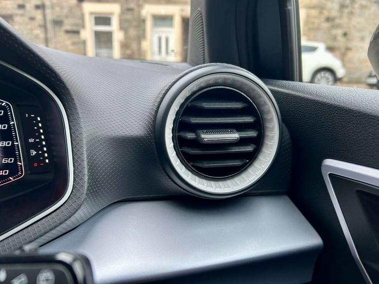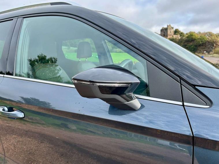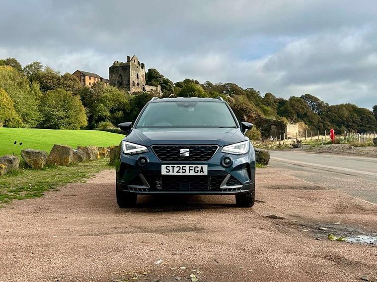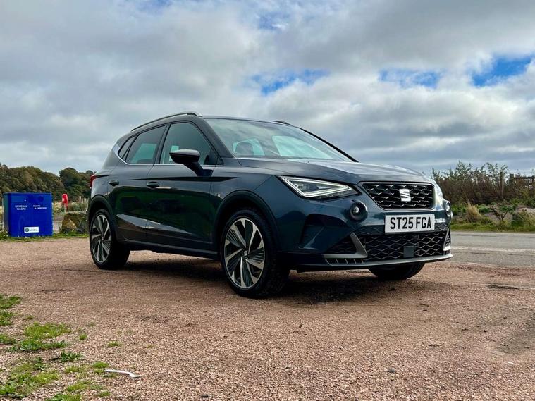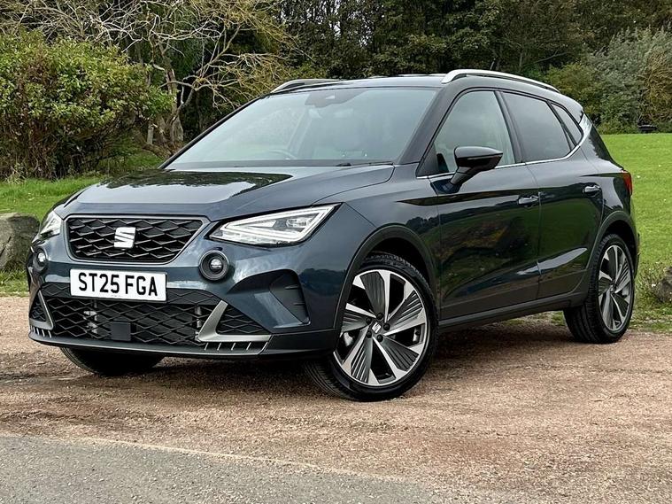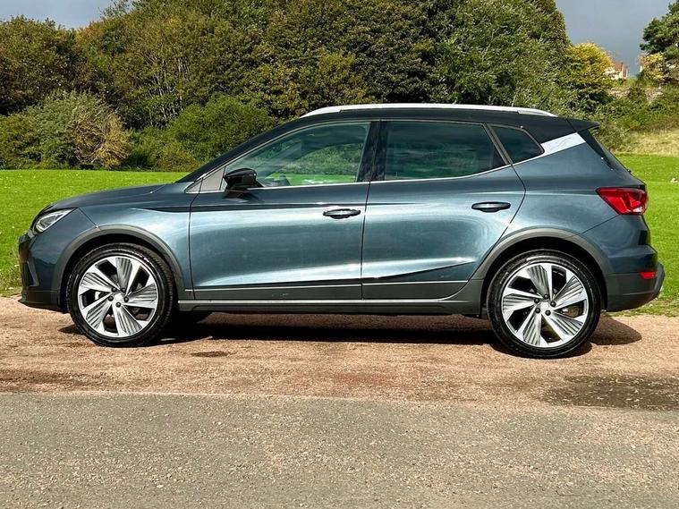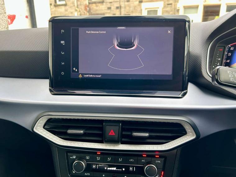 'Lights On' Reminder warning buzzer, 10" Digital cockpit, Digital clock, E-call, Electric speed sensitive power steering, Full link smartphone integration with mirror link, wireless apple carplay, Google android auto + USB Type C cable for apple and android devices, Lane keeping system, Low fuel warning light, Outside temperature display, RPM counter, SEAT Drive profile - Four different models normal-sport-eco-individual, steering response, throttle response, Trip computer, Wireless phone charger, 6 speakers, 9.2" colour touchscreen with navigation system, voice control and USB port (type c), Bluetooth interface for hands free and audio streaming, DAB digital radio and AM/FM radio, Steering wheel mounted audio controls, Anti theft roof antenna, Auto dimming interior rear view mirror, Automatic activation of hazard warning lights, Body coloured bumpers, Body coloured door handle inserts, Chrome roof rails and window surrounds, Dark tinted rear windows, Electric front/rear windows, Electrically adjustable, heated and folding door mirrors, Front fog lights with cornering function and rear fog light, FULL LED automatic headlights with dynamic headlight range control, coming and leaving home, LED daytime running lights, LED rear tail lights and licence plate lights, Protective side mouldings, Rain sensing wipers, Rear side wing doors, Rear spoiler, Rear window wash/wipe, Roof colour door mirrors, Third brake light, Twin exhaust pipe styling hidden exhaust pipe, Visible VIN plate, 2 cupholders, 3 seat bench in 2nd row, 60/40 split folding rear seat, Aircare filter, Black interior roof, Double boot floor, Driver sunvisor with covered mirror + card holder, Dual zone climate control, Front comfort seats, Front courtesy light with front reading lights, Front seat back storage pockets, Gear shift indicator, Heated front seats, Height adjustable front seats, Height/reach adjustable steering column, Illuminated air vent surrounds, Illuminated boot, Instrument lighting with brightness control, Interior ambient lighting, Interior light in footwell, central console and door panel, ISOFIX points in outer rear seats with top tether anchorage points, Microsuede cloth upholstery, Passenger sunvisor with vanity mirror, Perforated flat bottomed leather steering wheel/gear knob/handbrake with red stitching and FR logo, Potentiometer, Single front passenger seat, Two front and three rear height adjustable headrests, Interior chrome pack - Arona, Safe and driving pack (S) - Arona, 3 point seatbelts on all rear seats, ABS, Active front headrests, Child locks on rear doors, Driver and front passenger airbags with front passenger airbag de activation, front side and curtain airbags, Emergency Brake Assist (EBA) and front assist, Front and rear seatbelt reminder, Hill hold control, Multi-Collision braking, Tiredness recognition system, Traction control, Tyre pressure monitoring system, Alarm with back up horn with tow away protection, Deadlock, Electronic engine immobiliser, Locking wheel bolts, Remote central locking, Titan black dashboard, 18" Performance Cosmo grey matt alloy wheels,