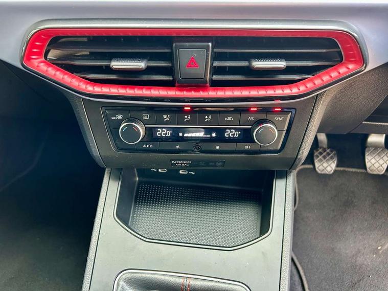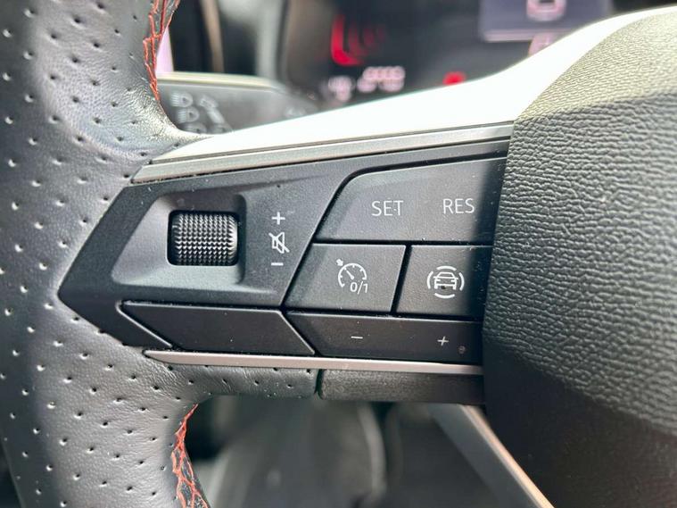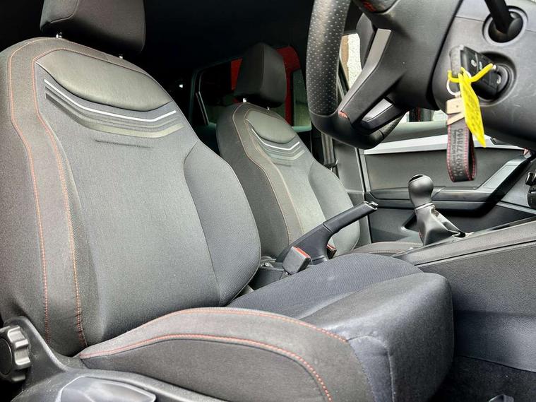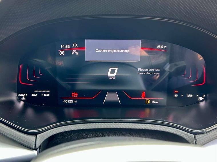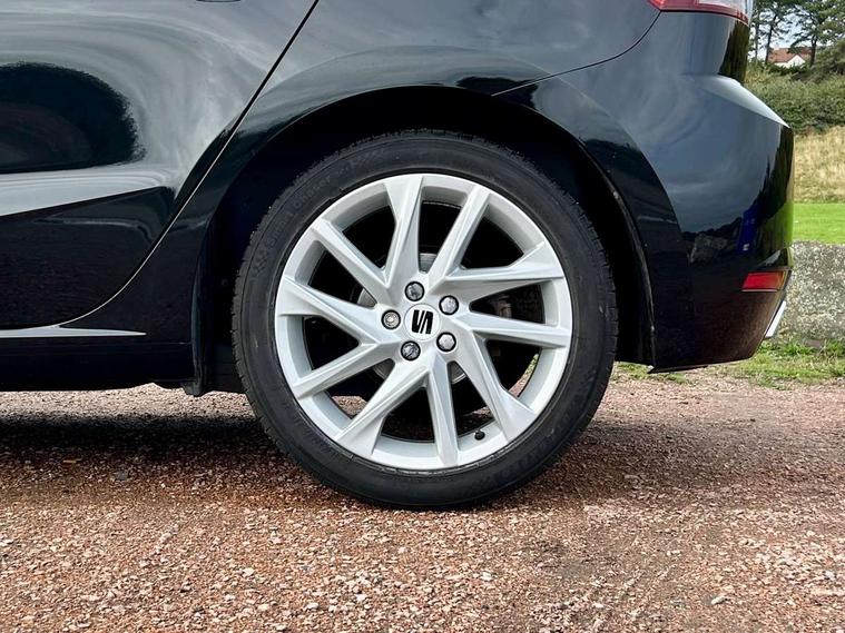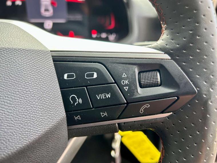 'Lights On' Reminder warning buzzer, 8" Digital cockpit, 9.2" touchscreen navigation system with type C USB socket, Voice control and DAB/AM/FM radio, Auto start and stop system, Bluetooth audio streaming with handsfree system, Digital clock, E-call, Full link smartphone integration with mirror link, wireless apple carplay, Google android auto + USB Type C cable for apple and android devices, Lane assist, Low fuel warning light, Outside temperature gauge, Power Steering, Seat connect with safety, service, remote and online, SEAT drive profiles and ECO function, SEAT logo boot release, Speed limiter, Trip computer, Sports suspension, Auxiliary input socket, Radio/MP3 player, SD card slot, Steering wheel mounted controls, Anti theft roof antenna, Auto dimming rear view mirror, Automatic rain sensing wipers, Black door mirrors, Body colour bumpers, Body colour door handles, Brilliant black window surrounds, Dark tinted rear windows, Electric adjustable/heated/folding door mirrors, Electric front windows, Electric headlight adjustment, Electric rear windows, Front/rear fog lights, FULL LED automatic headlights with dynamic headlight range control, coming and leaving home, LED daytime running lights, LED tail lights, Rear roof spoiler with FR twin exhausts, Rear side wing doors, Rear wiper, Third brake light, 3 seat bench in 2nd row, 60/40 split folding rear seat, Ambient interior lighting, Chrome detailing and black headlining, Cloth upholstery, Dual zone climate control with combination filter, Front courtesy lights, Front cupholders x 2, Front reading lights, Gear shift indicator, Glovebox, Height adjustable front and rear headrests (five), Height adjustable front seats, Height/reach adjust steering wheel, Illuminated air vent surrounds, Illuminated boot, Instrument lighting with brightness control, Isofix, Leather multifunction flat bottomed sports steering wheel, Passenger sunvisor, Single front passenger seat, Sports seats, Sunvisors with mirror and driver side card holder, 3 point seatbelts on all 3 rear seats, ABS, Active front headrests, Child locks on rear doors, Electronic stability control, Energy recovery system, Front assist forward collision warning and autonomous emergency braking, Front driver and passenger side airbags with curtain airbag and front passenger airbag deactivation, Hill hold control, Multi-Collision braking, Seat belt reminder for front and rear seats, Tiredness recognition system, Tyre pressure monitoring system, Electronic engine immobiliser, Locking wheel bolts, Perimeter alarm and interior monitoring with backup horn and tow away protection, Remote central locking + deadlocks, 17" Alloy wheels in Brilliant silver,