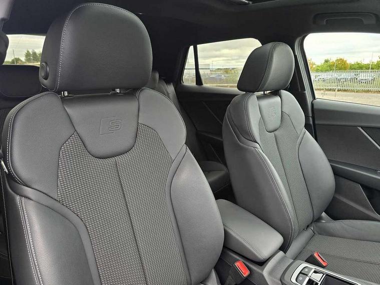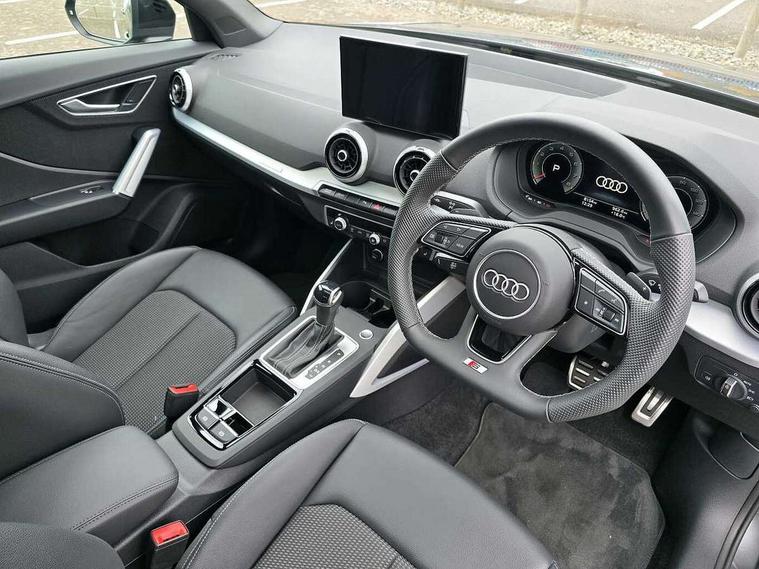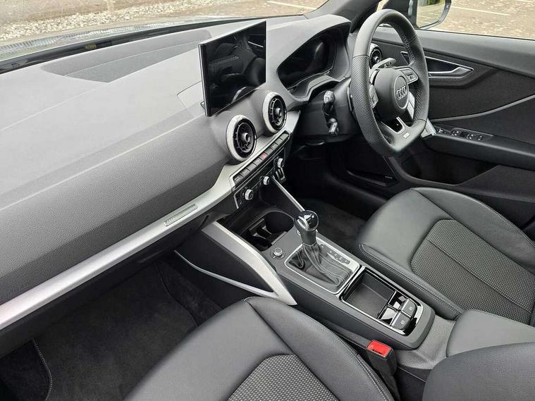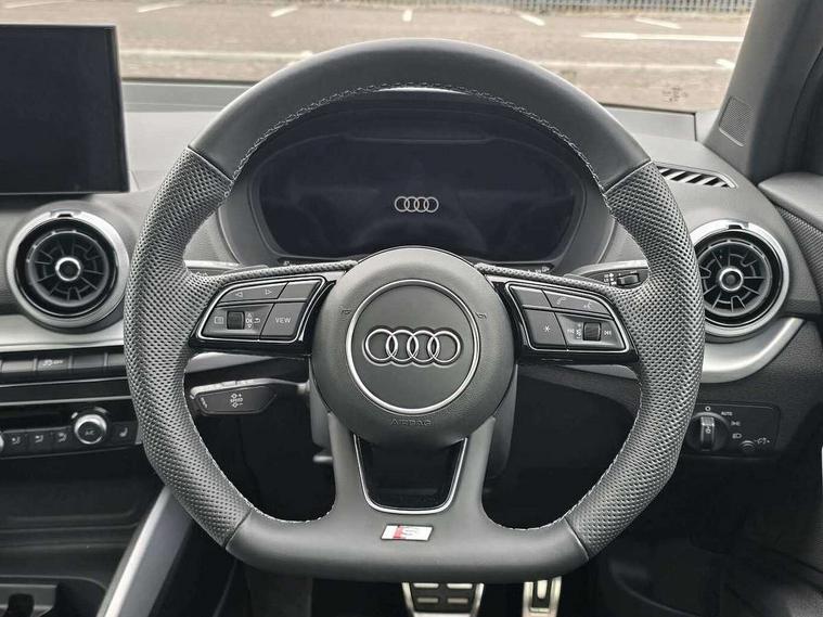 3D map display, Audi connect navigation and infotainment includes innovative services, Audi connect remote and control connects your vehicle to your smartphone, Audi drive select: S tronic - power steering assistance + engine + gearshift (modes: comfort, auto, dynamic, efficiency, individual), Audi smartphone interface - Apple carplay/Android Auto, USB connect, 2xSDXC card readers, voice control for navi, telephone, music and 3rd party apps, Audi virtual cockpit, Automatic start/stop system with recuperation, Bluetooth interface includes bluetooth audio streaming, Camera based traffic sign recognition, Cruise control, Distraction and Fatigue warning, E-call, Jukebox hard drive memory for music (10GB), Lane departure warning, MMI navigation plus with 8.8" touchscreen, Natural voice recognition, Power operated tailgate, Progressive steering, Rear parking sensors, Sport suspension, 6 passive loudspeakers, DAB Digital radio, USB type C port, Audi beam, Auto dimming rear view mirror, Black window trims, Bumper in full body colour paint finish, Electrically adjustable, folding, auto dimming and heated door mirrors with integrated LED side indicators, Front windscreen with grey tinted sunband, LED daytime running lights, LED headlights with dipped beam, high beam, position lights, indicators, LED rear lights, LED third brake light, Privacy glass - dark tinted rear and rear side windows from B-pillar backwards, Rear side wing doors, Rear wiper, Variable front intermittent wipers, Wheel arch trims in manhattan grey, 12v socket in front, 3 seat bench in 2nd row, 3 spoke flat bottomed multi-function leather sport steering wheel with gear shift paddles, 4-way electric lumbar support for front seats including manual seat height adjustment for both front seats, 60/40 split folding rear seat bench, Black carpets, Black cloth headlining, Front and rear head restraints, Front centre armrest, Front sport seats, Front/rear floor mats, Height/reach adjust steering wheel, Illuminated door sill trims with S logo, ISOFIX child seat mounting in front passenger and rear outer seats, Manual air conditioning, Single front passenger seat, Stainless steel pedals, Black styling pack - Q2, 3x3 point rear seatbelts, 6 airbags - Front, curtain and front side airbags, Electromechanical parking brake, Electronic stabilisation control including ABS, ASR and EDL, Front passenger airbag deactivation, Hill hold assist, Pre-sense front with pedestrian recognition, Seatbelt monitoring, Tyre pressure warning light with visual and acoustic warning, Warning triangle and first aid kit, Anti theft alarm, Anti theft wheel bolts, Electronically operated child locks, Remote central door locking, Aluminium interior element, Black dashboard, Gloss black centre console, Matt brushed aluminium trim inlays, Tool kit,