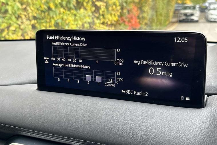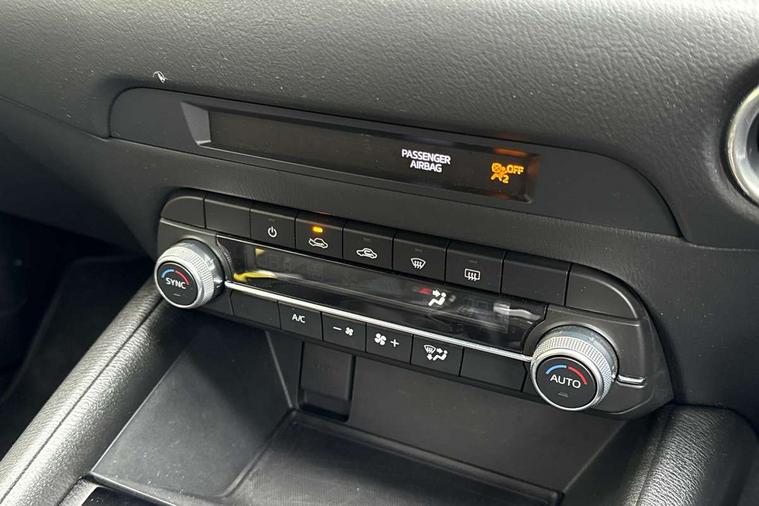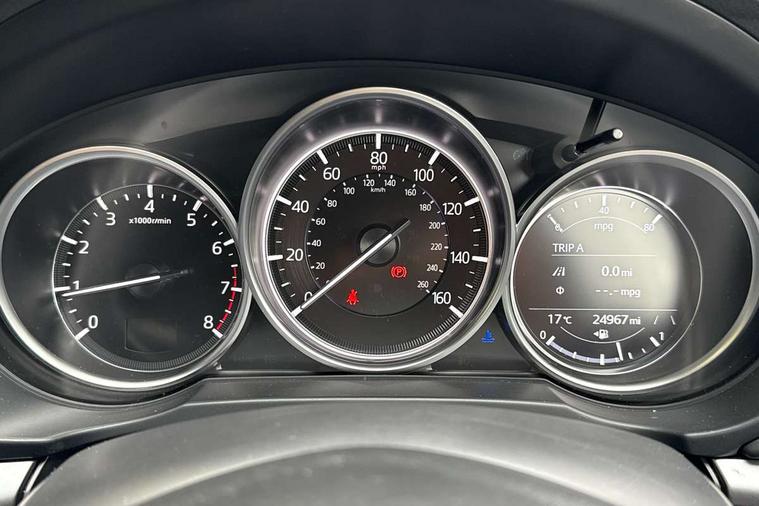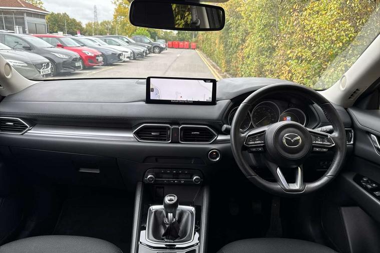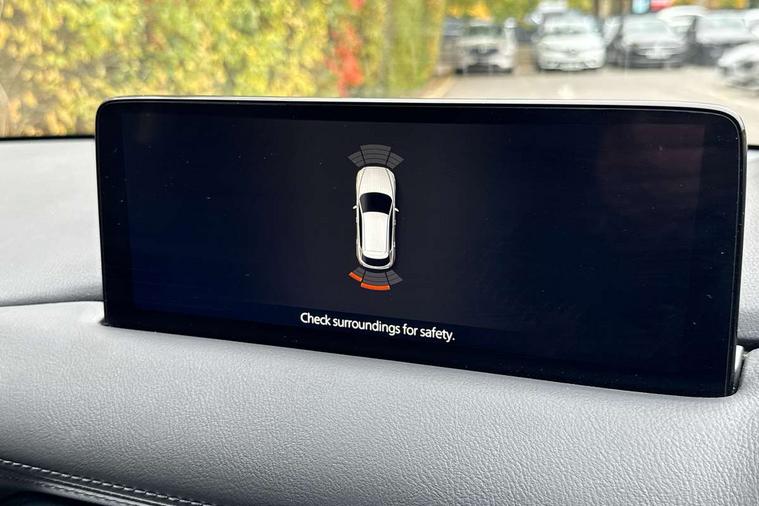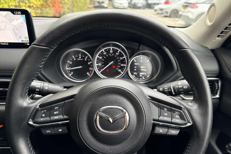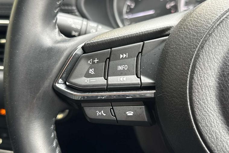 10.25" display with Mazda Connect infotainment, Apple car play/Android Auto, Blind spot monitoring with rear cross traffic alert, Bluetooth connectivity with voice control, Collision prevention assist, Connected services, Electric power steering, Emergency stop signalling system, Engine start/stop button, Forward collision warning, Front and rear parking sensors, High meter TFT display, Integrated navigation system, Intelligent speed assist, Lane departure warning system, Lane keep assist, Radar cruise control, Service indicator, Trip computer, Cylinder Deactivation, i-stop, 2 USB sockets in rear, 2x USB sockets in front, 6 speakers, AM/FM radio, Bluetooth audio streaming, DAB Digital radio, Multimedia Commander including separate volume dial, Steering wheel mounted audio controls, Adaptive front lighting system, Auto dimming rear view mirror, Automatic headlights, Body colour door mirrors, Body colour roof spoiler, Body coloured front and rear black lower bumper mouldings, Bright finish signature wing, Cloth with gunmetal inlay door trim panel, Coming/leaving home lighting function, Door mirror integrated indicators, Dual chrome tailpipes, Dusk sensitive headlamps, Electric front/rear windows with one touch auto up/down, Front grille in gloss black finish, Gunmetal inlay dashboard panel, High beam assist, Intermittent rear wash/wipe, LED auto levelling, LED daytime running lights, LED front fog lights, LED Headlights, LED third brake light, Power folding and heated door mirrors, Privacy glass (rear side windows only), Rain sensing front wipers, Rear side wing doors, Satin black B and C pillars, Satin black side mouldings, Scuff plates, Shark fin antenna, Signature LED rear combination lights, 12v electrical power outlet, 3 seat bench in 2nd row, 40:20:40 Karakuri fold-flat seat system, Cargo room flat floor board with waterproof undertray, Driver seat lumbar adjustment, Driver seat manual slide, recline and height adjust, Driver, Front passenger and two rear grab handles with coat hooks, Driver/passenger front seatback pockets, Driver/passenger sunvisors + illuminated vanity mirrors (drivers with ticket holder), Dual zone climate control, Folding centre armrest with 2 cup holders, Front and rear door pockets, Front centre storage with two cupholders, Front passenger seat manual slide, recline and height adjust, Gear shift indicator, Height adjustable passenger seat, Humidity sensor, Illuminated glovebox, Interior dome light with integral spotlight, ISOFIX child seat anchorage points attached on outer rear seats, Karakuri tonneau cover, Leather wrapped steering wheel and gear knob, Light roof lining, Luggage compartment LED lighting, Luggage compartment power outlet, Premium cloth upholstery, Rear air vents, Rear headrests, Rear seat recline, Roof mounted sunglasses holder, Single front passenger seat, Three height adjustable head restraints, Tilt/height adjustable steering wheel, White interior LED illumination lighting, 3 point front seatbelts with pre-tensioners, 3 rear 3 point seatbelts, ABS, Advanced Smart City Brake Support - SCBS, Child locks on rear doors, Driver and front passenger side airbags, DSTC-Dynamic Stability and Traction Control, Dual front airbags, Electronic brake force distribution, Electronic parking brake with auto hold, ESP, Front and rear curtain airbags, Front passenger airbag deactivation, G-Vectoring control, Hill hold assist, Seatbelt reminder front and rear, Single stage passenger airbags, Smart brake support with forward obstruction warning, Tyre pressure monitoring system, Automatic door locking when moving off, Deadlock, Immobiliser, Power door locks, Remote central locking, Thatcham Cat.1 alarm, 17" Silver alloy wheels, Tyre repair kit,