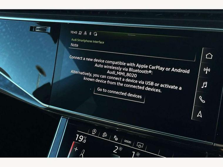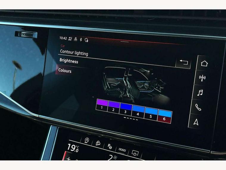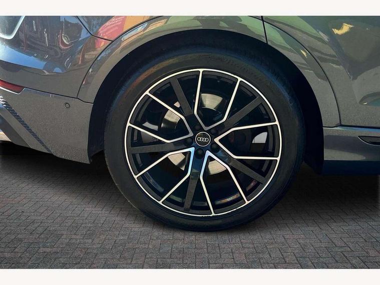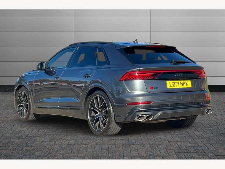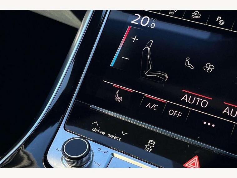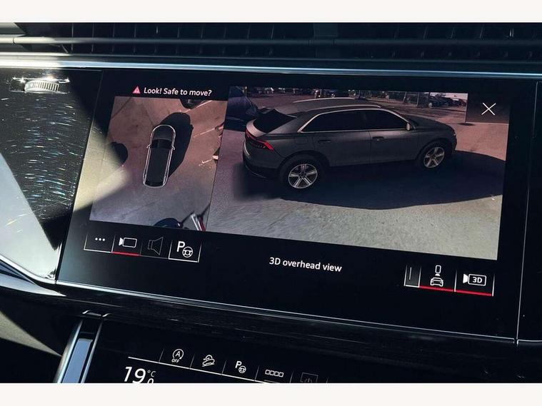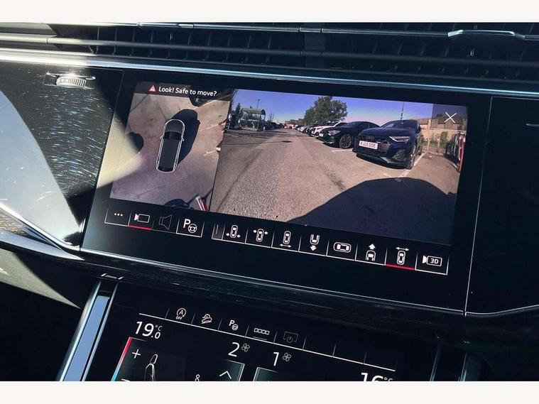 10.1" and 8.6" Dual colour touchscreens, All wheel steering, Audi connect safety and service (e-call), Audi connect with Amazon Alexa Integration, Audi drive select, Audi parking system plus includes 360 degree display with front and rear sensors, Audi virtual cockpit - 12.3" high resolution LCD display with fully customisable instrument cluster, Automatic start/stop system, Electro-mechanical PAS, Low washer fluid indicator, MMI - Multi Media Interface control system, MMI navigation plus with MMI touch, Natural voice recognition, On board computer, Operating buttons in black, glass look with haptic feedback, Power operated tailgate, Rear view camera, Service interval indicator, Smartphone interface includes wireless Apple carplay/Android Auto, 48V Mild hybrid technology, 85 litre fuel tank, Quattro all wheel drive with self locking centre differential, S specific Adaptive air suspension, Audi music interface with 2 USB ports with charge and data functions, Audi sound system with 6 channel amplifier, 180 watt amplifying capacity and 10 loudspeakers including subwoofer, Aux-in socket, DAB Digital radio, Acoustic windscreen, Audi Beam uses LEDs to project the Audi logo, Audi HD Matrix LED headlights with dynamic front and rear indicators, Auto dimming frameless rear view mirror, Body coloured bumpers, Coming/leaving home lighting function, Electric front+rear windows, Electrically folding auto dimming/adjustable/heated door mirrors with memory function, LED side indicators and kerb view function for passenger side, Gloss black finish for exterior Audi rings and SQ8 logo, Headlight washers, Heat insulating glass in windshield, LED signature daytime running lights, Platinum grey front spoiler lip and diffuser insert, Privacy glass - dark tinted rear and rear side windows from B-pillar backwards, Rain and light sensors, Rear wiper, S specific dual brach chrome tailpipes on both the left and right, S specific front and rear bumpers, S specific side skirts in matt selenite silver, Side air inlet grilles in matt titanium black, Trim and underbody protection in matt selenite silver, 4 zone deluxe automatic climate control, 4-way lumbar support for front seats, 40:20:40 split folding rear bench seat, Black cloth headlining, Comfort front centre armrest, Driver seat memory function, Electrically adjustable front seats, Front head restraints, Front/rear floor mats, Heated front seats, Illuminated door sill trims, ISOFIX child seat mounting for front passenger seat and 2 outer rear seats with top tether child seat mounting for all 3 rear seats, LED interior ambient lighting, Luggage compartment sill protection in stainless steel, Rear centre armrest with 2 cupholders, Rear headrests, Rear seat bench plus, Stainless steel pedals, Sunvisors with illuminated vanity mirrors, Upper and lower interior elements in leather, leather door armrests, Titanium Black Styling Pack - Q8, 3 point seatbelts on all seats, Audi pre sense front, Driver and front passenger, front side and curtain airbags, Electromechanical parking brake, Electronic Stability Control (ESC) including ABS, ASR and EDL, Front passenger airbag deactivation, Hill descent control, Hill hold assist, Predictive pedestrian protection, Seatbelt monitoring, Traction control, Tyre pressure loss indicator, Warning triangle and first aid kit, Anti theft alarm with tow away protection, Anti-theft wheel bolts and wheel loosening detection, Immobiliser, Keyless go with remote central locking, Polished oak trim with grey finish inlay, Tool kit, Tyre repair kit,