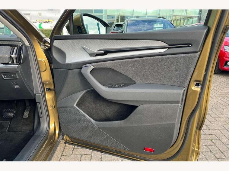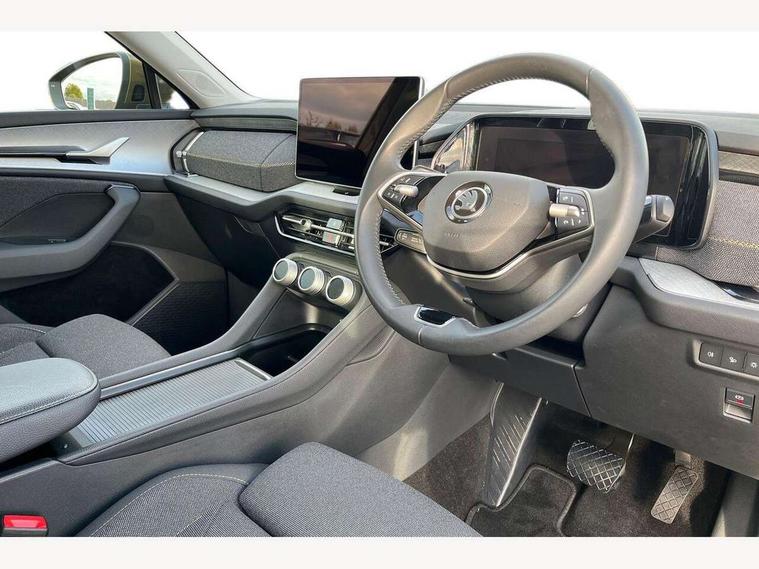 13" satellite navigation touchscreen display, Blind spot detection with door exit warning, Bluetooth system, ChatGPT functionality, Drive mode selector, Driver alert with fatigue sensor, Driver drowsiness alert system, Dry display cleaner, e call+, Front and rear parking sensors, Front cross traffic assist, Lane assist, PAS, Rear traffic assist, Rear view camera, Tailgate unlocking from outside, Traffic sign recognition, USB C Port x 2 in front centre console, Virtual Cockpit - 10.25" digital display, Voice control system, Wireless charging for two smartphones (15W) with cooling function, Wireless SmartLink for Apple CarPlay and Android Auto, Stop/start function, 2x USB-C in the rear, 8 Speakers, DAB Digital radio, Aero front windscreen wipers with intermittent function, All weather light, Auto dimming rear view mirror, Black wheel arch surrounds, Body colour bumpers, Body colour door mirrors and handles, Cornering light and poor weather light, Electric folding /adjustable/separted heated/folding door mirrors, auto dimming with boarding sports and memory function, Electric front and rear windows, Exterior black decorative trims, Heat insulating glass in windshield, Heated rear window, Ice scraper in fuel tank cap, Invisible tailpipe, LED daytime running lights, LED front fog lamps, LED Headlights, LED rear fog light, LED rear lights, LED third brake light in rear spoiler, Light assistant with automatic headlight control and coming home feature, Logo projection in door mirrors, Rear side wing doors, Rear spoiler, Rear window wiper, Safety reflectors on front and rear doors, Unique dark chrome design logo on alloy wheels, Window control switches with black trim, Windscreen wipers with rain sensor, Without engine designation, 1.5l bottle holder points in all door, 12V socket in boot, 1x centre rear reading light, 2 seat bench in 3rd row, 3 configurable smart dials with 32mm coloured display, 3 seat bench in 2nd row, 4 foldable roof handles with rear coat hooks, Ambient interior lighting - Dashboard, front-door stowage compartments, front and rear door panels and footwell lighting, Automatic gear selector on steering wheel, Chrome interior door handles, Driver/front passenger reading lights, Fabric headlining, Fixed bench 40:60:40 split folding backrests, Front and rear floor mats, Front centre armrest with jumbo box storage compartment, cup holder and 12V socket, Front courtesy lights, Height adjustable front headrests, Isofix child seat fittings in outer middle row rear seats and front passenger with top tether, Manual height adjustment for front passenger seats and thigh support extender, Manual lumbar support for front passenger seat, Manually adjustable steering column, Pollen filter, Rear centre armrest with cupholders, Rear seat boot backrest release, Retractable luggage compartment cover, Single front passenger seat, Skoda lettering on steering wheel, Sliding trunk cover, Small Bags on the inner sides of the front backrests, Storage pocket including mobile phone pockets on the backs of the front seats, Sunvisors with illuminated vanity mirrors, Three rear height adjustable headrests, Ticket holder on A Pillar, Tri zone climate control, Umbrella in door panel x1 made from sustainable materials, Upper and lower glovebox with card holder and coin compartment, USB C port by rear view mirror for charging only (15W), Variable boot floor, Auto door release and activation of warning lights in the event of an accident, Driver and front passenger airbag with knee airbag and front passenger airbag deactivation, Electric child locks, Electronic parking brake, ESC (incl. ABS+EMD+MSR+ASR+EDL+HBA+DSR+RBS+ESBS+MCB+TSA+XDS), Front assist with braking reaction to vehicles, pedestrians and cyclists, Front disc brakes, Fuel cut off safety device, Height adjustable front 3 point seatbelts + pretensioners, Hill hold control, Junction assist with automatic emergency braking, Rear disc brakes, Safety vest holder in door, Seat belt reminder for all seats, Three point rear seat belts, Two tone horn, Tyre pressure monitor, Alarm with interior monitoring and tilt sensor with safe function, Anti-theft wheel bolts, Immobiliser, Remote central locking with 2 keys, Breakdown kit,