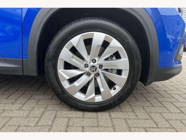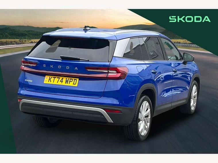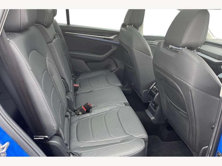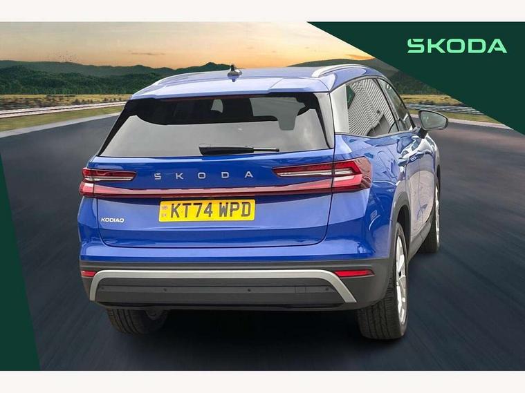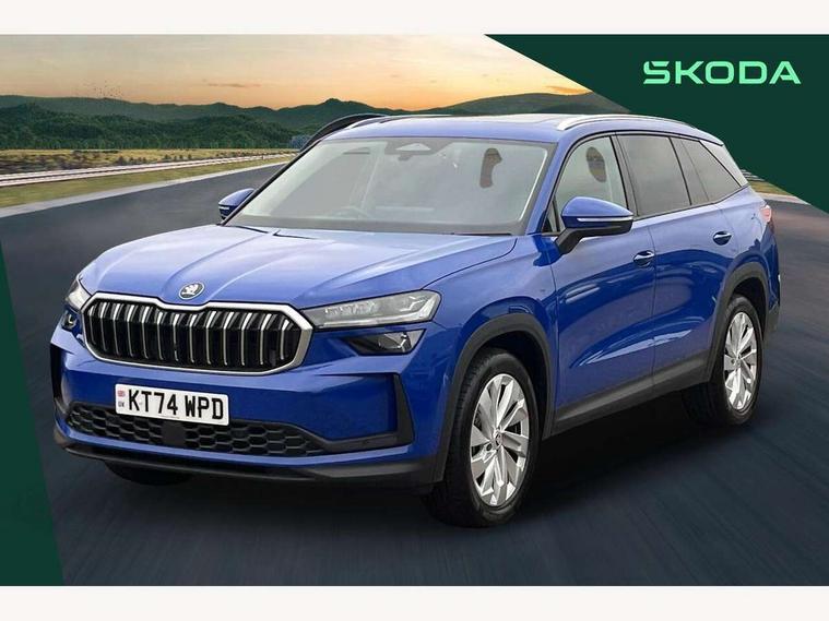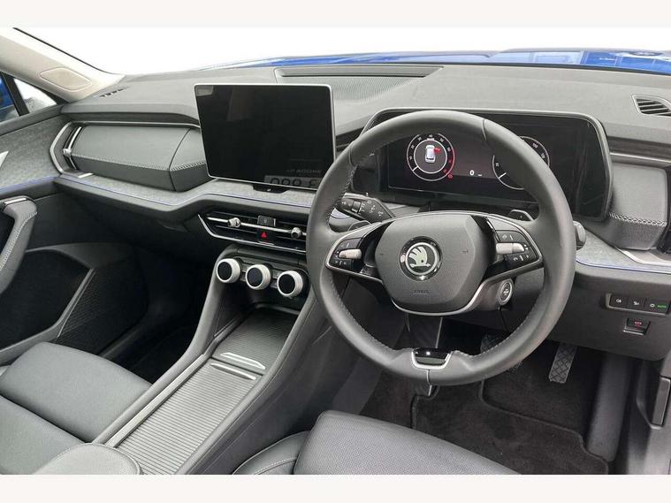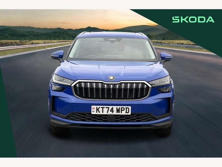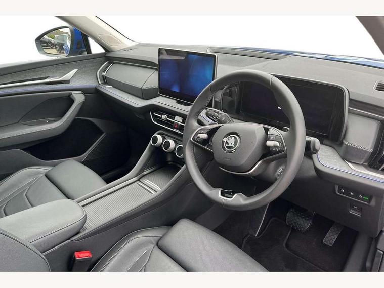 13" satellite navigation touchscreen display, Blind spot detection with door exit warning, Bluetooth system, ChatGPT functionality, Driver alert - Fatigue and drowsiness monitor, Dry display cleaner, Emergency call, Front and rear parking sensors, Front cross traffic assist, Lane assist, PAS, Rear traffic assist, Tailgate unlocking from outside, Traffic sign recognition, USB C Port x 2 in front centre console, Virtual Cockpit - 10.25" digital display, Voice control system, Wireless charging for two smartphones (15W) with cooling function, Wireless SmartLink for Apple CarPlay and Android Auto, Stop/start function, 2x USB-C in the rear, DAB Digital radio, Aero front windscreen wipers with intermittent function, Auto dimming rear view mirror, AWL (all weather lighting) and all weather light with cornering function, Black wheel arch surrounds, Body colour bumpers, Body colour door mirrors and handles, Cornering light and poor weather light, Electric folding /adjustable/separted heated/folding door mirrors, auto dimming with boarding sports and memory function, Electric front and rear windows, Exterior black decorative trims, Heat insulating glass in windshield, Heated rear window, Ice scraper in fuel tank cap, Invisible tailpipe, LED daytime running lights, LED third brake light in rear spoiler, Light assistant with automatic headlight control and coming home feature, Logo projection in door mirrors, Privacy glass, Rear roof spoiler, Rear side wing doors, Rear window wiper, Red decorative strip between rear LED lights, Safety reflectors on front and rear doors, Unique dark chrome design logo on alloy wheels, Window control switches with black trim, Windscreen wipers with rain sensor, Without engine designation, 1.5l bottle holder points in all door, 1x centre rear reading light, 2 seat bench in 3rd row, 3 configurable smart dials with 32mm coloured display, 3 seat bench in 2nd row, 4 foldable roof handles with rear coat hooks, Ambient interior lighting - Dashboard, front-door stowage compartments, front and rear door panels and footwell lighting, Automatic gear selector on steering column, Chrome interior door handles, Driver/front passenger reading lights, Fabric headlining, Fixed bench 40:60:40 split folding backrests, Front and rear floor mats, Front centre armrest with jumbo box storage compartment, cup holder and 12V socket, Height adjustable front headrests, Isofix child seat fittings in outer middle row rear seats and front passenger with top tether, Manually adjustable steering column, Pollen filter, Rear centre armrest with cupholders, Rear seat boot backrest release, Single front passenger seat, Skoda lettering on steering wheel, Storage pocket including mobile phone pockets on the backs of the front seats, Sunvisors with illuminated vanity mirrors, Three rear height adjustable headrests, Ticket holder on A Pillar, Tri zone climate control, Umbrella in door panel x1 made from sustainable materials, Upper and lower glovebox with card holder and coin compartment, USB C port by rear view mirror for charging only (15W), Exterior styling pack - Kodiaq, Auto door release and activation of warning lights in the event of an accident, Driver and front passenger airbag with knee airbag and front passenger airbag deactivation, Electric child locks, Electronic parking brake, ESC (incl. ABS+EMD+MSR+ASR+EDL+HBA+DSR+RBS+ESBS+MCB+TSA+XDS), Front assist with braking reaction to vehicles, pedestrians and cyclists, Front disc brakes, Fuel cut off safety device, Height adjustable front 3 point seatbelts + pretensioners, Hill hold assist, Junction assist with automatic emergency braking, Rear disc brakes, Safety vest holder in door, Seat belt reminder for all seats, Three point rear seat belts, Two tone horn, Tyre pressure monitor, Anti-theft wheel bolts, Immobiliser, Remote central locking with 2 keys,