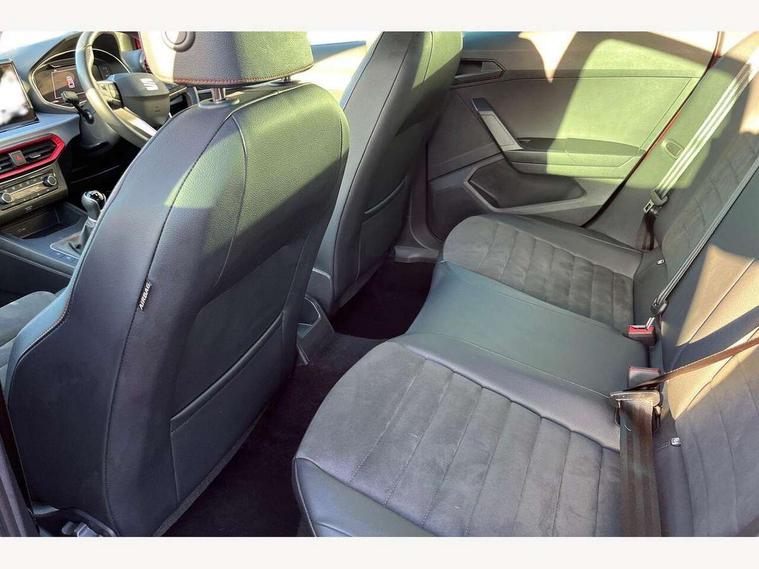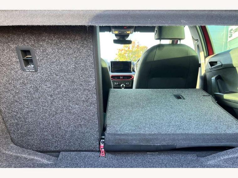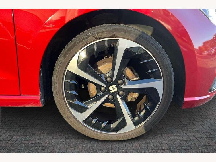 'Lights On' Reminder warning buzzer, 10" Digital cockpit, 9.2" touchscreen navigation system with type C USB socket, Voice control and DAB/AM/FM radio, Auto start and stop system, Bluetooth audio streaming with handsfree system, Cruise control, Digital clock, E-call, Full link smartphone integration with mirror link, wireless apple carplay, Google android auto + USB Type C cable for apple and android devices, Lane assist, Low fuel warning light, Outside temperature gauge, Power Steering, Seat connect with safety, service, remote and online, SEAT logo boot release, Speed limiter, Trip computer, Sports suspension, Auxiliary input socket, Radio/MP3 player, SD card slot, Steering wheel mounted controls, Anti theft roof antenna, Auto dimming rear view mirror, Automatic rain sensing wipers, Black door mirrors, Body colour bumpers, Body colour door handles, Brilliant black window surrounds, Dark tinted rear windows, Electric adjustable/heated/folding door mirrors, Electric front windows, Electric headlight adjustment, Electric rear windows, Front/rear fog lights, FULL LED automatic headlights with dynamic headlight range control, coming and leaving home, LED daytime running lights, LED tail lights, Rear roof spoiler with FR twin exhausts, Rear side wing doors, Rear wiper, Third brake light, 3 seat bench in 2nd row, 60/40 split folding rear seat, Ambient interior lighting, Chrome detailing and black headlining, Comfort seats, Dual zone climate control with combination filter, Front courtesy lights, Front cupholders x 2, Front reading lights, Gear shift indicator, Glovebox, Height adjustable front and rear headrests (five), Height adjustable front seats, Height/reach adjust steering wheel, Illuminated air vent surrounds, Illuminated boot, Instrument lighting with brightness control, Isofix, Leather multifunction flat bottomed sports steering wheel, Microsuede cloth upholstery, Passenger sunvisor, Single front passenger seat, Storage pockets on back of front seats, Sunvisors with mirror and driver side card holder, 3 point seatbelts on all 3 rear seats, ABS, Active front headrests, Child locks on rear doors, Electronic stability control, Energy recovery system, Front assist forward collision warning and autonomous emergency braking, Front driver and passenger side airbags with curtain airbag and front passenger airbag deactivation, Hill hold control, Multi-Collision braking, Seat belt reminder for front and rear seats, Tiredness recognition system, Tyre pressure monitoring system, Electronic engine immobiliser, Locking wheel bolts, Perimeter alarm and interior monitoring with backup horn and tow away protection, Remote central locking + deadlocks, 18" Performance machined alloy wheels in black and grey, Emergency tyre repair kit,