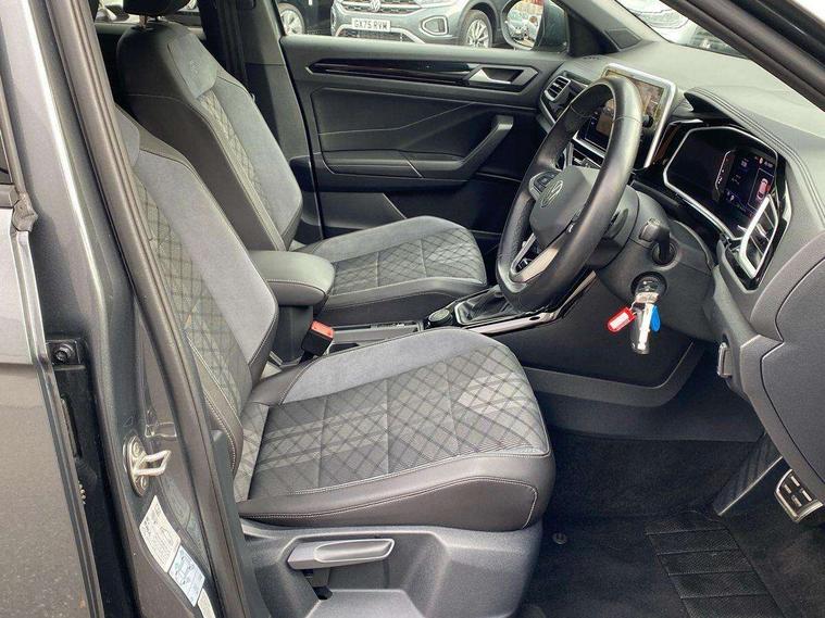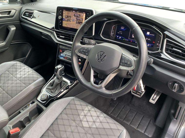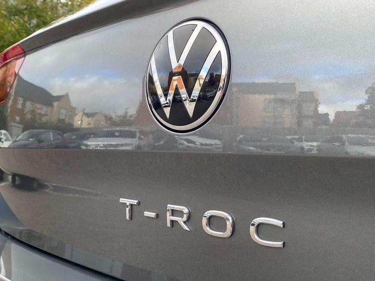10.25" Digital cockpit pro, Advanced driver attention and drowsiness monitor, Bluetooth mobile phone interface, Emergency call service, Lane keeping system Lane Assist, Modified key software - reduce switch off time for key status change to Long no motion, Online services, Park assist including front and rear parking sensors, Service interval indicator, Tailgate/trunk lid release from outside, Think blue trainer driver tips and journey analysis, Warning sound and light for front seatbelts unfastened, Wireless app connect, Battery regeneration during braking, Four wheel drive, Start/stop function with battery regeneration, Diversity antenna for FM reception, Music playback - MP3, WMA and AAC files, Premium USB cable in choice of either Apple or Android smartphone compatibility, SD card slot, Simultaneous pairing of 2 compatible mobile devices, Title and cover art display, We Connect and We Connect Plus functionality, 3rd brake light, Auto dimming interior rear view mirror, Automatic hazard lights activation under emergency braking, Automatic headlight control with LED separate daytime running lights with coming/leaving home function, Electrically adjustable and heated door mirrors, Extended roof spoiler, Exterior mirrors aspherical on driver side, convex on front passenger side, External USB type C socket and charging sockets, Front windscreen wiper with intermittent wipe and 4 position delay, Heated rear window, LED rear combination lamps, LED rear number plate lights, Power windows with comfort operation and circuit breaker, R-Line design body coloured bumpers, Rain sensor, Rear exhaust tailpipe, Rear fog light on one side and reversing lights on both sides, Rear side wing doors, Rear wash/wipe with intermittent wipe setting, Remote electrically foldable door mirrors, puddle lights and reverse activated passenger's door mirror, 12V power socket in centre console, 3 rear head restraints, 3 seat bench in 2nd row, 4 load lashing points in luggage compartment, Air care climatronic air conditoning system with active combination filter and 2-zone temperature control, Black roof lining, Chrome plated radiator grille inserts, air vent surrounds and light switch surrounds, Door and side trim panel with leatherette insert, Front + rear carpet mats, Front centre armrest, Front cupholders x 2, Front footwell illumination, Front reading light, Front scuff plates with R Line logo, Front seat back storage pockets, Glove compartment door with light, Instrument lighting, white adjustable panel illumination, Interior ambient lighting and surround lighting, Interior light delay, Isofix child seat preparation, Leather gearshift handle, Load-through provision with cup holder when folded down ('Unsplit rear seat bench, split folding backrest, with centre armrest), Luggage compartment lighting, Single front passenger seat, Stainless steel pedals, Storage compartment in left and right luggage area, Storage compartment in rear doors, Storage compartments in driver and front passenger doors, Sunvisors with illuminated vanity mirrors, Variable boot floor, height adjustable and removable, Driver assistance pack without proactive passenger protection - T-Roc, 3 point height adj front seatbelts + pretensioners, 3 point seatbelts in outer rear with ECE label, ABS, Child locks on rear doors, City emergency braking and pedestrian monitoring, Driver and front passenger airbag with front passenger airbag deactivation, Driver and front passenger safety-optimised head restraints, Drivers seatbelt reminder, Electronic parking brake, Electronic Stability Control (ESC) inc EDL (Electronic Differential Lock) and ASR (Traction Control), Front and rear passengers curtain airbag system including front side airbags, Hill start assist, Predictive pedestrian protection, Rear disc brakes, Two tone horn, Tyre pressure loss indicator, Volkswagen roadside assistance, Anti-theft alarm system with interior monitoring, backup horn, and towing protection, Remote central locking with SAFELOCK, radio remote control with 2 remote control folding keys, Trims for alloy wheels,