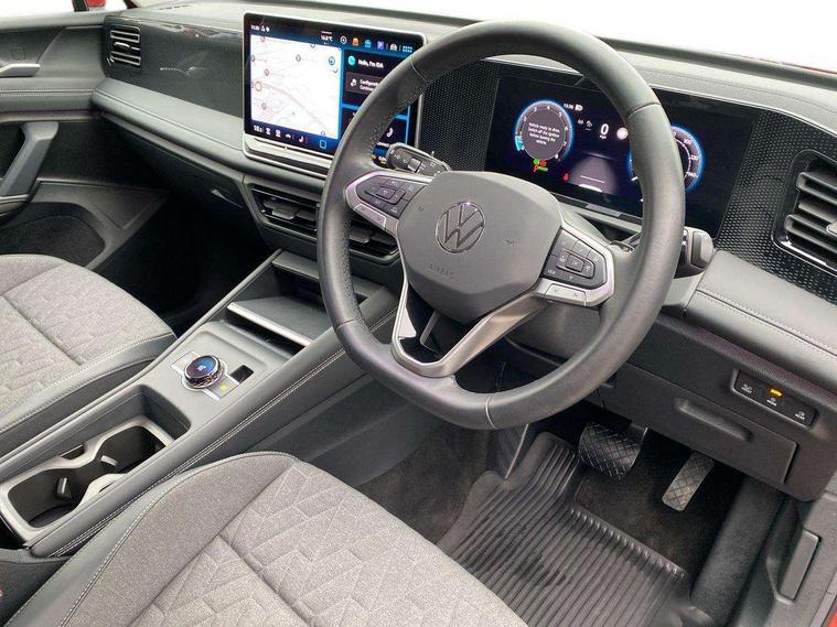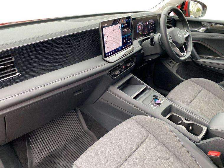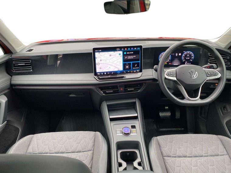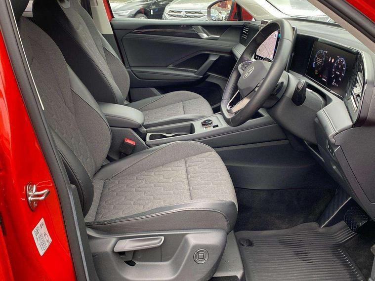 Adaptive cruise control (ACC), Advanced driver attention and drowsiness monitor, Bluetooth mobile phone interface, Digital Cockpit Pro - 10.25" high resolution dash display screen with customisable menus and information, Dynamic road sign display, E-Sim card for online connectivity, eCall emergency call service, Front Assist - Autonomous emergency braking with pedestrian and cyclist monitoring, Lane change system, Side assist, Rear traffic alert and Exit warning system, Lane keeping system Lane Assist, Multifunction front facing camera, Oncoming vehicle braking when turning including swerve support, Park assistance plus with front and rear parking sensors, Power assisted steering with speed sensitive, Start/stop system with regenerative braking, Warning signal and warning light for front and rear seatbelts not fastened, Wireless App-Connect, Front wheel drive, Digital radio reception (DAB), Diversity antenna for FM reception, Ambient lighting with logo projection, Auto dimming interior rear view mirror, Automatic headlight control system, Body coloured bumpers and air intake with chrome trim, Body coloured door handles, Body-coloured exterior mirror housings, Coming/leaving home lighting function, Heat insulating glass in side and rear windows, Heat insulating windshield, Heated rear window, High level 3rd brake light, Illuminated door handle recesses, Illuminated lightline between headlamps, Rain sensor windscreen wipers, Rear fog light on one side, reversing light on both sides, Rear side wing doors, Rear wiper, 12V outlet in center console rear and in luggage compartment, 12V socket in centre console, 3 bench rear seats in 2nd row, Air care climatronic 3 zone air conditioning system with rear air conditioning control panel, Carpet mats, front and rear, Centre console with illuminated storage compartment with sliding cover and two drinks holders, Ceramique headlining, Door and side trim panel in foam film and woven fabric, Front centre armrest, ISOFIX anchors for child seats on outer rear seats and front passenger seat compatible with i-Size, Mechanical rear seat release, Power adjustable lumbar support in front, Rear bench seat, split folding, longitudinally movable and folding with load-through hatch and centre armrest, Safety optimised front head restraints, Single front passenger seat, Sun visors with illuminated vanity mirrors, Three rear head restraints, Variable luggage compartment floor, Comfort package incl. Memory feature for Park assist and Safelock - Tiguan, Design package - Tiguan, 3 point seat belt for centre rear seats, 3 Point seat belts in front with pretensioners, 3 point seatbelts in outer rear with ECE label, Driver and front passenger airbag with front passenger airbag deactivation, Electronic parking brake with auto hold, Front and rear curtain airbags, Front and rear side airbags, Front centre airbag, Front disc brakes, Manual child proof rear door locks, Rear disc brakes, Two tone horn, Warning triangle, Anti theft wheel bolts, Soul instrument panel,