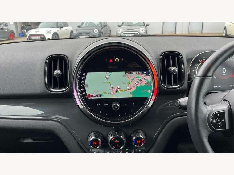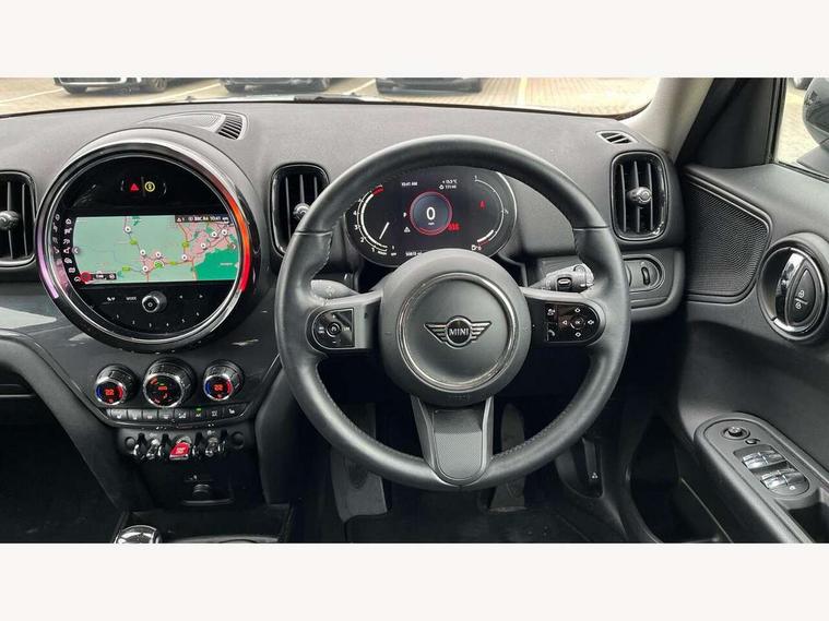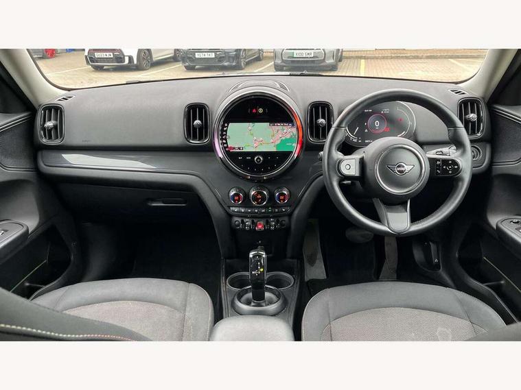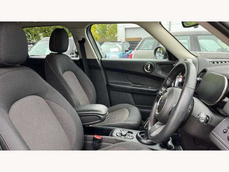 Active Guard incl speed limiting and lane departure functions with auto steering, and front collision warning with brake intervention, Automatic start/stop function with brake energy recuperation, Compatible mobile phone bluetooth with audio streaming, Cruise control with brake assist, Electro-mechanical speed dependant steering assistance, Instrument cluster, Mini E-call, On board computer, Rear parking distance control, 51 Litre fuel tank, Double Vanos system, Fully variable valve control, High precision injection, Performance Control, Steptronic transmission with double clutch, FM tuner and DAB digital radio, 3rd brake light, Body colour fuel filler cap, Day time driving lights, Door sill strips, Dynamic brake lights, Electric windows, Heated rear window, Heated windscreen washer jets, LED fog lights, LED Headlights, Left exhaust tailpipe with chrome finisher, Model logo, Model logo on Tailgate, Radiator grille, Rain sensor with auto headlights, Rear fog lights, Rear side wing doors, Rear window wiper, Side scuttle panel with integrated indicator, Split rear doors, Sun/heat protection glass, White indicator lenses, 12V socket in centre console, 3 seat bench in 2nd row, 3 spoke sport leather steering wheel + limiter function and audio controls, 360L luggage compartment capacity, 4 lashing eyes in luggage compartment, 40:20:40 split folding rear seats, Chrome interior highlights, Colour line - Carbon black, Cupholders, English handbook, Floor mats, Front headrests, Glove compartment, Headliner with grab handles and clothes hooks, Height and length steering column adjustment, Interior lighting with 12 basic colours selectable via toggle switch in roof, Isofix rear child seat preparation, Leather gearshift lever and handbrake gaiters, LED reading lights, vanity mirror lights, front foot well light and spotlight on front seats, Manual air conditioning, Mechanical seat adjustment, driver seat height adjust, forward/back and front seats backrest, Multifunction steering wheel, Passenger seat height adjuster, Rear headrests, Single front passenger seat, Storage compartments in doors, Sunvisors with vanity mirrors, Excitement pack - Countryman, Navigation pack - Countryman, 2 tone horn, 3 point seatbelts on all seats, 6 Airbags - front, side, head and seat belt tensioners, Anti-lock braking system (ABS), DSC - Dynamic Stability Control, Electronic handbrake, Front and rear disc brakes, Hill start assist, Manual rear child locks, Tyre pressure monitoring system, Alarm system with tilt sensor, monitoring doors, bonnet interior and tailgate, Auto drive away locking, Deadlocking function, Electronic vehicle immobiliser, Locking wheel bolts, Start/stop toggle with keyless go, Tool kit,