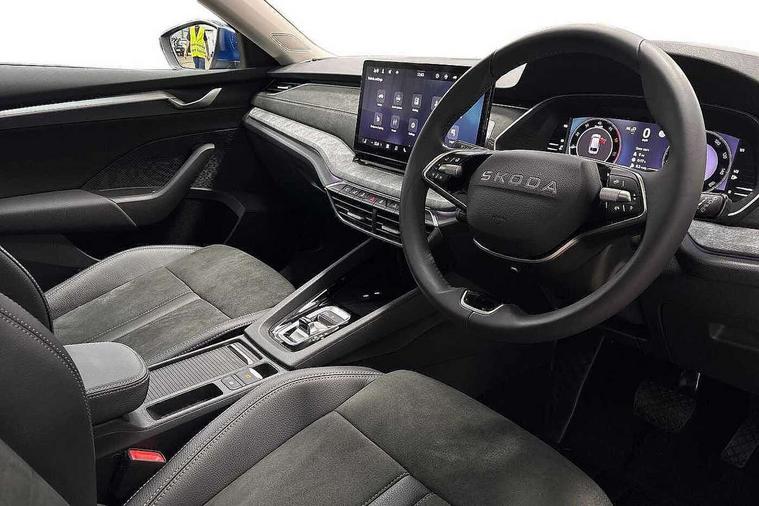 1x USB Typc C port in rear view mirror, 4x USB Type C ports - 2x in front centre console and 2x in rear (45W), Drive mode selection, Driver fatigue sensor, eCall emergency system, Electro-mechanical power steering, Front assist system, Traffic jam assist, Traffic sign recognition, Turn Assist, Virtual Cockpit - 10.25" digital display, Voice control system, Wireless charging (15W) with cooling function, Wireless SmartLink for Apple CarPlay and Android Auto, 13" touchscreen display with navigation, DAB Digital radio, Aero front windscreen wipers with intermittent function, Auto dimming rear view mirror, Body colour bumpers, Body colour door mirrors and handles, Chrome grille surround, Chrome roof rails, Chrome strip in lower front bumper, Chrome window surrounds, Electric front and rear windows, Heated rear windscreen, High level third brake light, Ice scraper in fuel cap, LED daytime running lights, LED Headlights, Logo projection in front doors, Rain and light sensors, Rear fog light on one side, Rear privacy glass, Rear side wing doors, Rear spoiler, Rear window wiper, 12 volt socket in boot, 3 rear headrests, 3 seat bench in 2nd row, 4 foldable roof handles, Electric auxiliary air heater, Front head restraints, Heated front seats, Illuminated glovebox, Interior door handles in dark chrome, Jumbo Box storage, Luggage compartment lighting x2 lights, Mechanical rear seat release from boot, Single front passenger seat, Steering wheel in black leather with black stitching, Storage compartments in left and right of boot, Sun visors with mirrors, Sunglasses storage, Ticket holder, Umbrella in door panel, Unsplit rear bench seat, split folding backrest with centre armrest with cupholder, Comfort package - Octavia Estate, Simply clever package premium with Storage compartment under passenger seat - Octavia, 3x3 point rear seat belts, Alarm with interior monitoring, tilt sensor and back up horn, Curtain airbags and front side airbags, Driver and front passenger airbags, Drivers knee airbag, Electronic parking brake, ESC including ABS, EBV, MSR, ASR, EDS, HBA, DSR, Front central airbag, Hill hold assist, ISOFIX on front passenger seat and outer rear seats, Passenger airbag deactivate switch, Three point seat belts in front and rear, Two tone horn, Tyre pressure monitor, Visual and acoustic seat belt reminder, Warning reflectors in front door, Anti-theft wheel bolts, Keyless start/stop, Remote central locking, Chrome air vent surrounds,