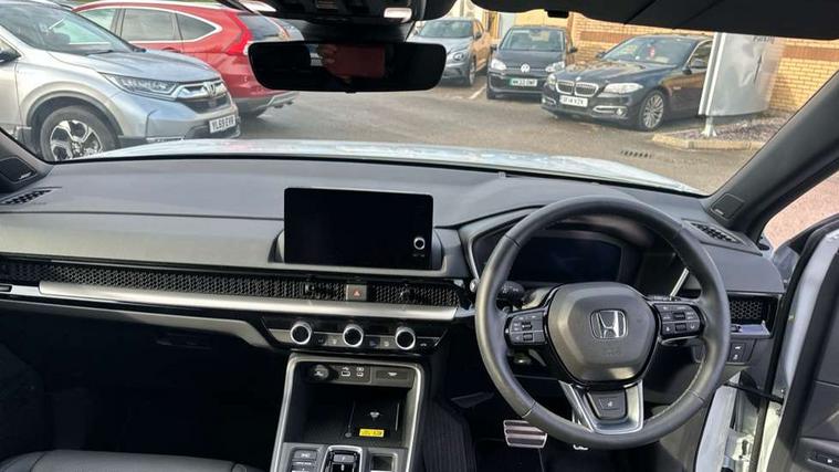 10.2" Multi information display, 4 x front 4 x rear 4 x side parking sensors, Active lane change assist, Adaptive cruise control with Cornering speed assist, Adjustable speed limiter, Agile handling assist, BLIS (Blind Spot Information System) with Cross Traffic Monitor, Bluetooth hands free telephone connection, Crossing traffic warning front, Drive Mode (EV, Econ, Sport, Normal, Snow, Tow), Driver attention monitoring system, E-call, eCall emergency call system, Electric power steering, Emergency stop signalling system, Forward collision warning, Handfree power tailgate with kick sensor and walk away close, Head up Display, HEV mode, Honda 360 sensing, Honda CONNECT navigation with My Honda+ 9" touchscreen, AM/FM/DAB, Apple Carplay and Android Auto, live traffic info, Honda parking pilot, Intelligent speed limiter, Lane change collision mitigation, Lane departure warning system, Lane keep assist system, Lane watch, Lead car departure notification system, Low speed following, Power meter, Road departure mitigation, Traffic jam assist, Traffic sign recognition, Wireless apple carplay, Wireless charging, Adaptive performance damper, Vehicle stability assist, 12 speakers, 1X USB (A/2.5A) and 1x Charger (C/3A) on Front, Bose premium sound system, Centre speakers, DAB+ radio, Dashboard centre speaker, Front tweeters, Rear USB 2x Charger (C/3A), Steering wheel mounted controls, Subwoofer, Active cornering lights, Adaptive driving beam, Auto dimming rear view mirror, Auto headlight adjuster, Auto headlights, Auto wipers, Black door mirror caps, Black paint + exculsive grille, Black Shark-fin antenna, Body colour bumpers, Body colour door handles, Body colour plus black colour roof spoiler, Electrically adjustable and heated door mirrors, Electrically folding door mirrors, Exhaust pipe finisher, Exterior mirror tilt for reverse, Front and rear electric windows, Front LED Indicator lights, Front turn type led with sequential, Headlight auto on/off timer, High gloss black window garnish, LED 3rd brake light, LED daytime running lights, LED front fog lights, LED Headlights, LED rear lights, Multi view camera system in door mirrors, Panoramic opening glass sunroof, Privacy glass, Rain sensor, Rear side wing doors, Rear wiper, Roof rails, Trailer stability assist, Welcome home function, 3 seat bench in 2nd row, 4 way driver lumbar support, 4 way electrically adjustable passenger seat without height adjust, 60/40 split folding rear seat, 8 way electrically adjustable drivers seat + mirror memory, Accessory sockets in Front & Trunk, Air conditioning - Rear vent, Ambient light in roof, Cargo net hooks, Courtesy lights, Dark roof lining, Driver and front passenger seat armrests, Driver/passenger front seatback pockets, Driver/passenger sunvisors and vanity mirrors, Driver/passenger sunvisors with illuminated vanity mirrors, Dual zone automatic climate control, Film layered honeycomb metal interior panels, Footwell ambient interior light front and rear, Front and rear ambient light (door handle&door line) and front cup holder, Front centre armrest, Front map lights, Front ventilated seats, Genuine leather steering wheel, Heated front seats, Heated rear seats, Heated steering wheel, Hybrid emblem, I-Size ISO Fix Points, Instrument panel with garnish wood film, Leather upholstery, Luggage floor box, Meter illumination, Platinum chrome interior door handles, Rear centre armrest, Rear headrests, Rear reading lights, Reclining rear seats, Single front passenger seat, Sport pedals, Sunglasses holder with mirror, Synthetic headrest, Tilt/telescopic adjustable steering wheel, Tonneau cover, Trunk light, Exclusive styling with sport paint pack - CR-V, 5 x 3 point seatbelts, ABS/EBD, Anti-whiplash front headrests, Brake assist function, Collision mitigation braking system, Deflation detection system, Driver airbag, Driver SRS airbag (single stage inflation), Electronic parking brake with auto hold, Front and rear collision mitigation throttle control, Front and rear curtain airbags, Front and rear seat belts with emergency locking retractor (ELR), Front centre airbag, Front passenger airbag, Front side airbags, Hill descent control, Hill start assist, Knee airbags (DR) and (AS), Low speed brake system, Manual child lock in rear doors, Paddle deceleration control, Passenger SRS airbag with cut off switch, Rear side airbags, Honda super locks, Immobiliser, Mirrors and windows key fob operation, Remote central locking with 2 key fobs, Security alarm, Selectable door unlock, Smart entry + Smart start, Tilt sensors, Ultrasonic security sensor, Flat tyre solution temper tyre/repair kit,