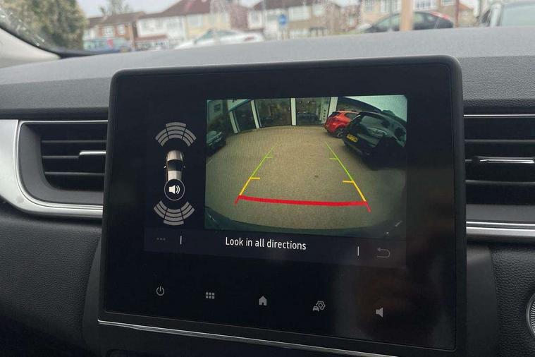 7" TFT Driver information display, Cruise control + speed limiter, eCall emergency call system, Eco mode, Front and rear parking sensors with rear view camera, Gear change indicator, Lane departure warning system, Lane keep assist, Multisense with 3 driving modes + 8 ambient lighting colours, Traffic sign recognition with over speed prevention, Trip computer, Variable assistance power steering, EasyLink 7" touchscreen with navigation, bluetooth, DAB radio, USB ports, compatible with Apple carplay/Android auto, Auto dimming rear view mirror, Automatic front wipers with rain sensors, Automatic headlights, Automatic high beam - AHB, Black side door protection with chrome effect, Body colour door handles, Body coloured bumpers, C Shaped LED front and rear lighting signatures with 3D effect on the rear lights, Chrome around front air deflectors, on front wing deco element and window lining, Drivers one touch window with anti-pinch feature, Electric adjustable/heated/folding door mirrors, Electric rear windows, Extra tinted glass in rear windows and tailgate, Front grille with chrome upper trim, Full LED headlights, Gloss black side door protection with chrome effect, Grey front and rear skid plate, LED front fog lights, LED rear fog light, Longitudinal roof bars, Rear wiper, Variable speed on front windscreen wipers, 12V Accessory socket, 3 rear headrests, 60/40 split and fixed base rear seat bench, Automatic climate control with one touch demist function, Centre console storage tray, Front head restraints, Glovebox, Heating system with pollen filter, Height adjustable driver's seat, Height adjustable passenger seat, Height/reach adjust steering wheel, ISOFIX child seat fixing points on rear outermost seats, LED front roof lights, Middle console with armrest and storage, Rear air vents, Sliding rear bench, Synthetic leather steering wheel, Synthetic leather/cloth upholstery, 3 rear seatbelts, ABS+EBA, AEBS, Distance warning alert, Driver and front passenger, side, head and curtain airbags, Driver height adjustable seat belt, Electric parking brake with auto hold function, Electronic stability control, Front and rear no seatbelt warning sound, Front dash warning indicator in case of heavy braking, Front driver and passenger side airbag deactivation, Hill start assist, Rear door and window child locking function for rear door, Tyre pressure warning light, Anti drill door locks and locking fuel cap, Central door locking, Deadlocking system, Hands free keycard with push button and start/stop function, RAID (Renault Anti-Intruder Device) automatic door locking, Black soft touch dashboard, 18" Pasadena diamond cut alloy wheels with grey inserts,