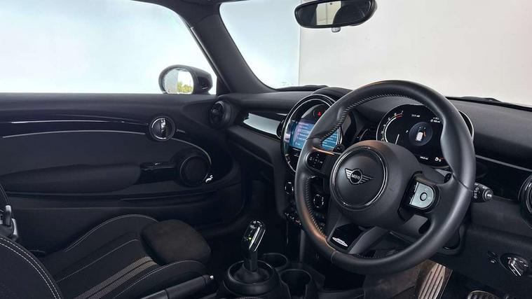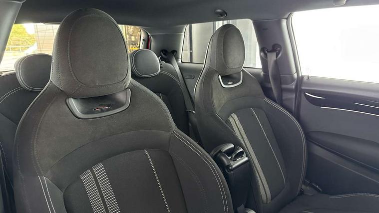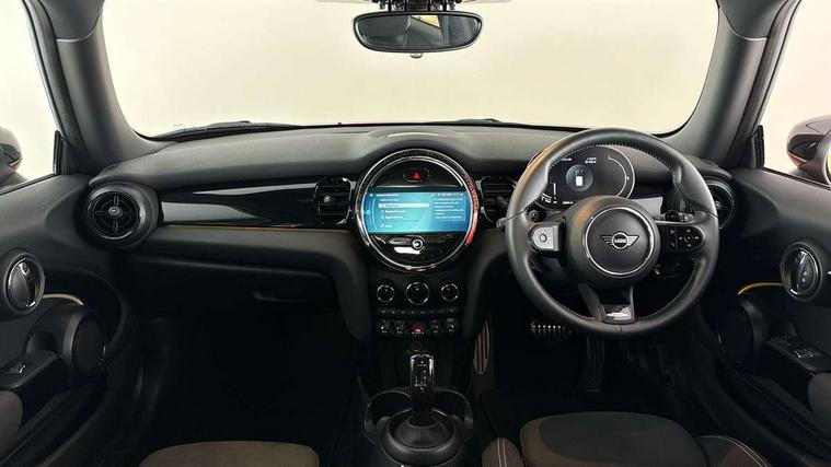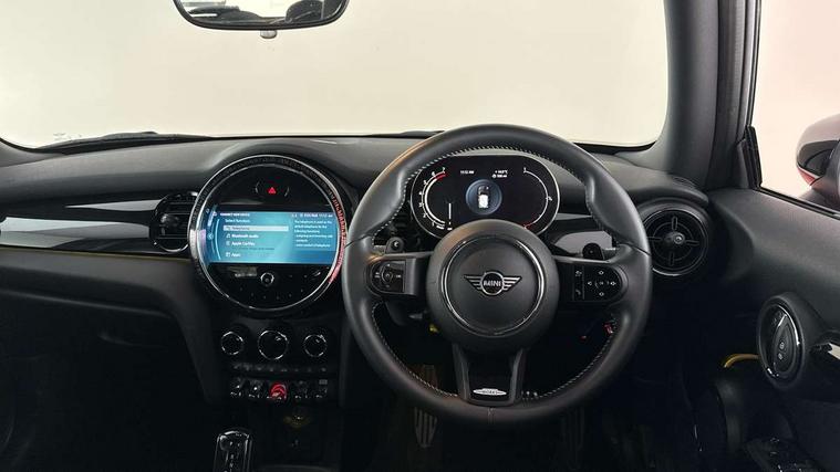 Automatic start/stop function with brake energy recuperation, Compatible mobile phone bluetooth with audio streaming, Cruise control with brake assist, Electro-mechanical speed dependant steering assistance, Flexible car sharing preparation, Instrument cluster, MINI Driving Modes - centre toggle switch to control driving setting (sport, mid and green), Mini E-call, MINI TeleServices, On board computer, Rear park distance control, Service interval indicator, Adaptive suspension, Double Vanos system, Fully variable valve control, High precision injection, Performance Control, Steptronic sport transmission with double clutch and steering wheel paddles, 4 speakers in front door trims and underneath front seats, 8.8" touchscreen with LED ring, FM tuner and DAB digital radio, Automatic headlight activation switch, Bonnet scoop, Dynamic brake lights, Electric front windows, Heated rear window, Heated windscreen washer jets, JCW Aerodynamic kit - Front and rear bumpers with sporty JCW styling and part-painted side sills with MINI John Cooper Works door sill finishers, John Cooper Works rear spoiler, LED headlight with closed ring and daytime driving lights, Metal door sill strips with Cooper S, Model logo Cooper S on right of tailgate, Radiator grille chrome border with honeycomb structure including S Badge, Rain sensor window wipers, Rear fog lights, Rear LED lights with union jack design, Rear window wiper, Side scuttle panel with integrated indicator, Sun/heat protection glass, Two central exhaust tailpipes with chrome finisher, White indicator lenses, 12V Accessory socket in centre console, 4 lashing eyes in luggage compartment, 60/40 split folding rear seat, Anthracite headliner including grab handles and clothes hooks, Carbon black colour line - Knee roll and door armrest, Chrome interior highlights, Cupholders, Front and rear isofix with front passenger airbag deactivation, Glove compartment, Height and length steering column adjustment, Interior lighting with 12 different colours across the dashboard, underneath door bezel with illuminated laser-engraved design on central display, JCW Sport seats with integrated headrests, adjustable thigh support and John Cooper Works logo, Leatherette gearshift lever and handbrake gaiters, LED reading lights, vanity mirror lights, front foot well light and spotlight on front seats, Manual air conditioning, Mechanical seat adjustment - forward/back & backrest for front seats and driver seat height adjust, Multifunction steering wheel, Passenger seat height adjuster, Storage compartments in doors, Storage pocket on back of front seats, Sunvisors with vanity mirrors, Tool kit, Velour floor mats, Walknappa leather steering wheel with grey seam and John Cooper Works badge on Piano Black lower steering wheel spoke, Piano black exterior pack - Mini Hatchback Cooper S, 3 point seatbelts on all four seats, 6 Airbags - front, side, head and seat belt tensioners, Anti-lock braking system (ABS), DSC - Dynamic Stability Control, Front and rear disc brakes, Two tone horn, Tyre pressure monitoring system, Alarm system with tilt sensor, monitoring doors, bonnet interior and tailgate, Electronic vehicle immobiliser, Start/stop toggle with keyless go, Piano black interior trim,