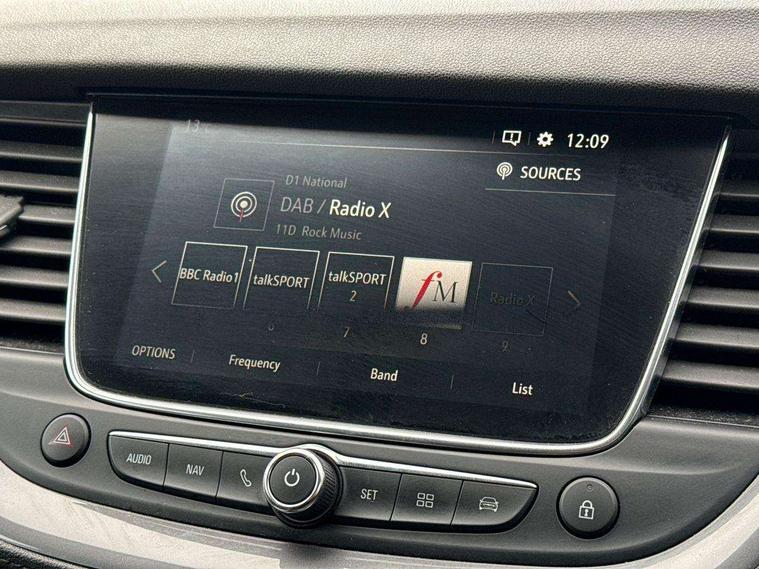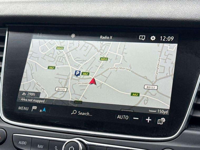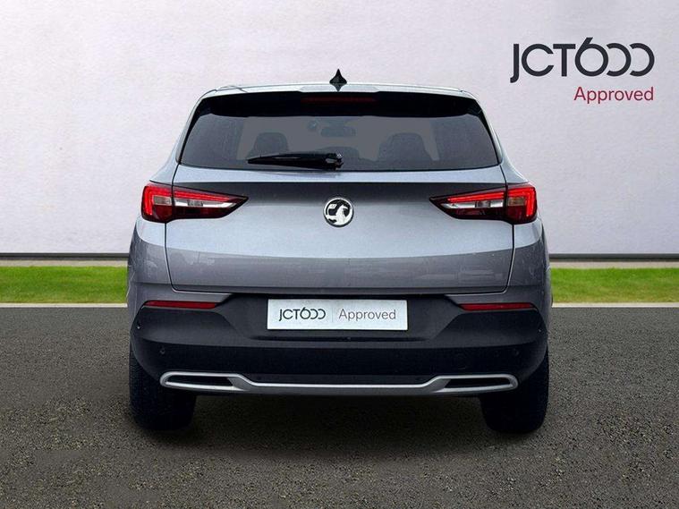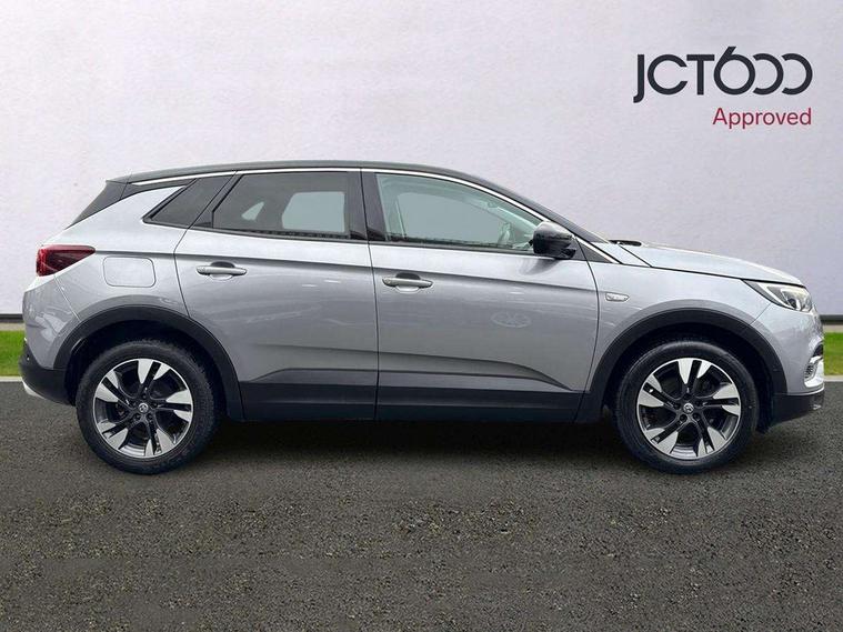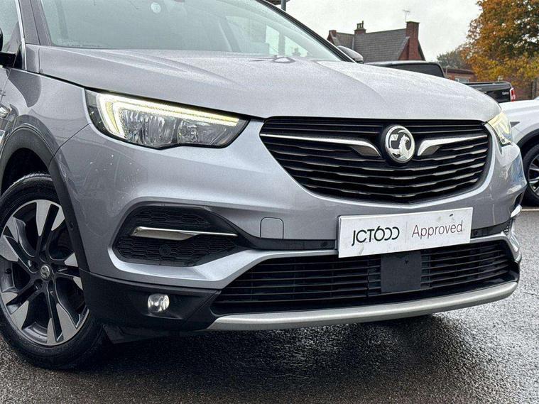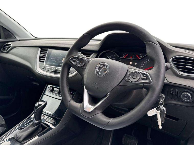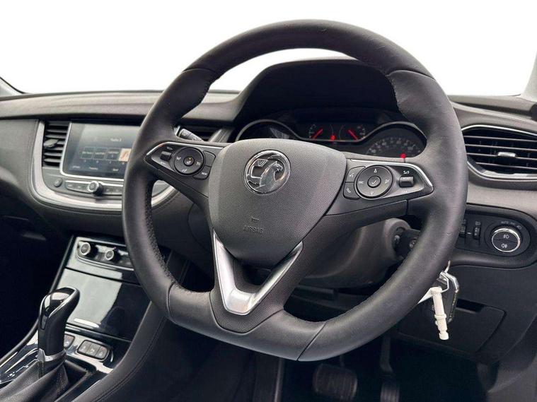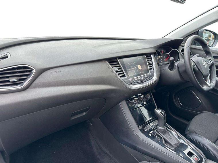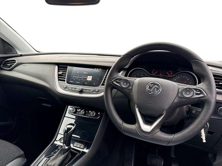 3.5" colour information display, Audible lights on warning, Central facia display with digital clock, outside air temperature and audio information, Cruise control with speed limiter and intelligent speed adaption, Digital water temperature gauge with warning light, eCall emergency call system, Fuel gauge with low fuel level warning light, Multi function trip computer, Nav 5.0 sat nav system + 8" colour touchscreen+DAB radio+RDS traffic programme+European mapping+USB+bluetooth+bluetooth audio streaming+Apple CarPlay, Rev counter, Service interval indicator, Side blind spot alert, Speed sensitive electric power assisted steering, Speed sign recognition, Speedometer, Vauxhall connect including Ecall and connected services, Voice control system, iPod connection, Six speaker - four front + two rear, Steering wheel mounted audio controls, Alloy effect front and rear skid plates, Body colour door handles, Chrome effect bar on front grille, Chrome side window trim, Door to door illumination, Electrically foldable door mirrors with puddle lights, Electrically operated front and rear windows with safety auto reverse and one touch up/down facility with heated rear window, Front fog lights, Gloss black finish B pillar, Halogen headlights with manual beam levelling, Hazard warning lights, High level centre rear brake light, Intermittent rear window wash/wipe, LED daytime running lights, LED tail lights, Rear fog lights, Rear spoiler, Reversing lights, Side protection mouldings, Side window demist vents, Sound absorbing windscreen, Twin electrically adjustable and heated door mirrors, Two speed windscreen wipers with variable intermittent wipe, Two tone black roof with black mirror caps and dark tinted glass, Welcome lighting, Windscreen demist vents, 12V electrical accessory socket in luggage compartment, 3 spoke leather covered steering wheel with satin chrome effect bezel, Alloy effect door sill covers, Ambient centre console downlighter, Ambient interior lighting, Ambient lighting in front doors, Anti submarining front seats, Centre rear head restraint, Chrome effect interior door handles, Covered storage compartment in centre console and in driver armrest, Driver's centre armrest, Driver/passenger sunvisors with illuminated vanity mirrors, Electronic dual zone climate control with air conditioning + advanced predictive logic control using sensor + Charcoal filter + illuminated controls, Four adjustable facia vents, Front and rear passenger assist handles, Front door pockets with 2.6 litre capacity, Front seat back storage pockets, Fully carpeted luggage area, Heated rear windscreen with timed cut-off, Height adjustable and removable front/rear head restraints, Illuminated luggage compartment, Interior courtesy light operated by all doors, Isofix attachment on front seat, Isofix system on outer rear seats, Luggage compartment cover, Reach + rake adjustable steering column, Rear door pockets with 1.8 litre capacity, Rear passenger compartment heating ducts, Rear reading lights, Two drinks holder in centre console, Ventilated glove box with lid, Ergonomic active leather effect front seats pack - Grandland X, Safety pack - Grandland X, Sight and light pack - Grandland X, Versatility pack - Grandland X, 3x3 point rear seatbelts, Active pedestrian safety system, Anti-lock braking system (ABS), Child proof locks on rear doors, CSC - Cornering stability control, Deactivation switch for front passenger front and side impact airbags, Deflation detection system, Deformation zones front and rear, Driver/Front Passenger airbags, Dual seatbelt pretensioners on front seats, EBD - Electronic brakeforce distribution, Electronic parking brake, Energy absorbing steering column, Engine drag torque control, Front and rear seatbelt reminder, Front seat side impact airbags, Full size curtain airbags for driver, front passenger and outer rear passenger seats, Hill start assist, Hydraulic Brake Assist (HBA), Inertia reel lap and diagonal seatbelts for all seats, Load limiters on outer rear seatbelt retractors, Outer rear seatbelt pretensioners, Reinforced passenger safety cell, Side impact protection beams, Switchable electronic stability programme, Traction control, Tyre pressure monitoring system, 2 remote folding keys, Electronically protected audio equipment, Engine deadlock and immobiliser, Locking wheel nuts, Remote control central locking, Remote security alarm system, Visible vehicle identification number, Black door panels with black premium leather effect inserts,
