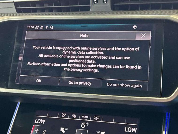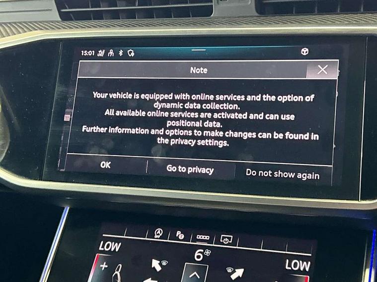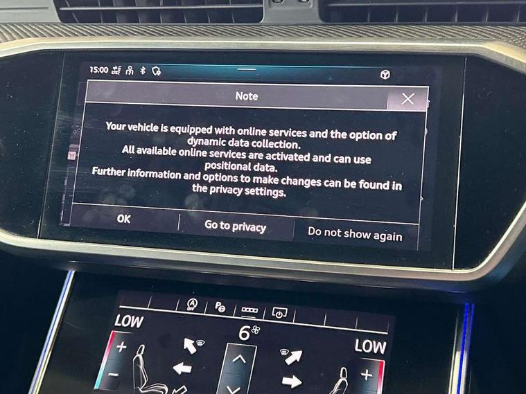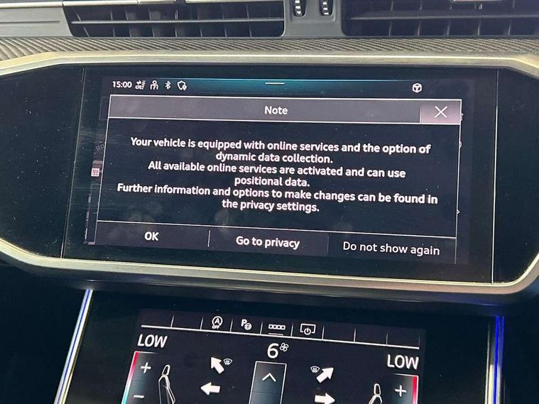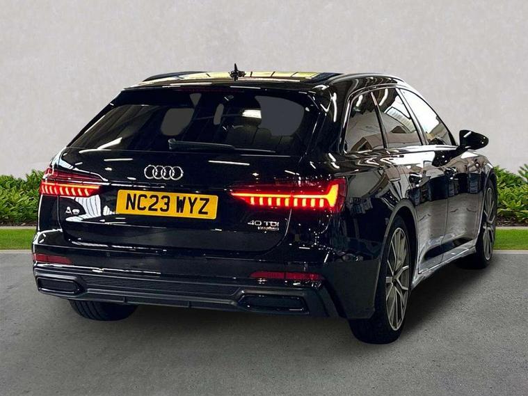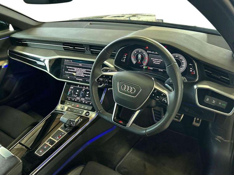 7" high resolution colour driver information display system, Audi connect safety and service (e-call), Audi connect with Amazon Alexa Integration, Audi drive select, Audi parking system plus - acoustic and visual park assist system for front and rear, Automatic start/stop system with coasting functionality, Bluetooth interface, Lane departure warning system, Power operated tailgate, Progressive steering, Rear view camera, Service interval indicator, Smartphone interface includes wireless Apple carplay/Android Auto, Voice control system, 12V Mild hybrid, 24 litre AdBlue tank, Diesel particulate filter, Quattro on demand, Sports suspension, Audi front music interface, Audi sound system, Auxiliary input socket, DAB Digital radio, USB connection, Black roof rails, Electric front/rear windows, Frameless auto dimming interior rear view mirror, Front intermittent wipers, Gloss black highlights on the exterior area of the Audi Single frame, Gloss black highlights on the front and rear bumpers, Gloss black highlights on the radiator grille, Gloss black highlights on the side windows trim strips, Headlight washers, Heat insulating darkened glass in side and rear windows, Heat insulating glass in windshield, LED signature front daytime running light, LED third brake light, Matrix LED headlights, Matt black rear diffuser with diffuser strip and tailpipes in chrome, Matt black side air intake grille with inlay in matt aluminium, Privacy glass, Rain and light sensors, Rear roof spoiler, Rear side wing doors, Rear wiper, Signature rear LED light design, 2 zone deluxe electronic climate control, 4 way electric lumbar support for driver and front passenger, 40/20/40 split folding 3 rear seat bench in 3 parts with rear centre armrest, Black cloth headlining, Black front and rear carpet floor mat, Black steering wheel insert, Electrically adjustable front seats with driver memory, Front centre armrest, Front head restraints, Heated front seats, Height/reach adjust steering wheel, Illuminated door sill trims with S logo, Illuminated sun visors with vanity mirrors, ISOFIX child seat mounting and Top Tether with front passenger airbag deactivation, Leather gear knob, Luggage compartment system, Rear headrests, Single front passenger seat, Stainless steel pedals and foot rest, LED Interior Ambient Lighting Pack - A6, Non smoking pack - A6, Technology pack - A6, 3 point seatbelts on all seats, Airbags - Front side, front and rear including head, Audi pre-sense front, Black seatbelts, EBD - Electronic brakeforce distribution, Electromechanical parking brake, Electronic Stability Control (ESC) including ABS, ASR and EDL, Extended pedestrian protection measures, Manual child proof rear door locks, Seatbelt monitoring, Tyre pressure warning light, Warning triangle and first aid kit, Anti theft alarm with tow away protection, Anti-theft wheel bolts and wheel loosening detection, Immobiliser, Keyless Go, Remote central locking, Carbon twill inlays, 20" 5 V spoke star design Audi sport cast aluminium alloy wheels in matt grey look,