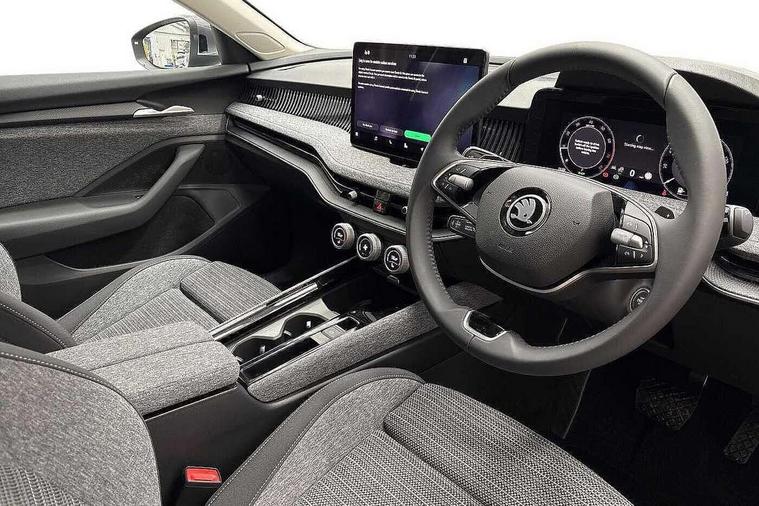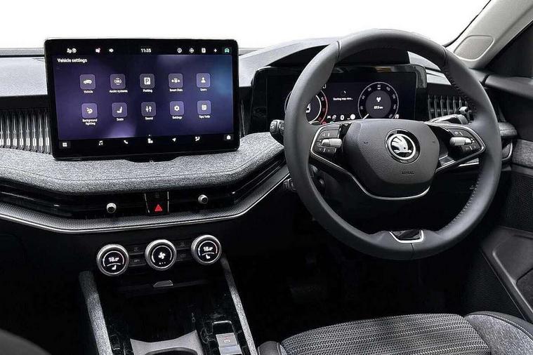 13" touchscreen display with satellite navigation, 4x USB-C ports (2x in front centre console and 2x in rear) (45W), Adaptive cruise control with speed assist, lane assist plus and traffic tram assist, Blind spot detection with door exit warning, Bluetooth system, CareConnect and Emergency Call, ChatGPT functionality, Driver fatigue sensor, Front assist with extended predictive pedestrian protection, Front cross traffic assist, PAS, Quick start all heating software functionality, Rear view camera with washer, Stop/start engine system, Traffic sign recognition, Turn assist with evasive assistance, Virtual Cockpit - 10.25" digital display, Voice control system, Wireless charging for one smartphone (15W) with cooling function, Wireless smartlink apple carplay, SmartLink+ android auto, 8 Speakers, DAB Digital radio, Display cleaner, FM radio connection, Web radio connection, Acoustic side windows and interior noise suppression, Backdrop lighting, Body colour door handles, Body coloured door mirrors, Chrome roof rails, Chrome window surround, Electrically adjustable, heated, folding and driver side auto-dimming door mirrors with integrated indicators and logo projection, Frameless auto-dimming rear view mirror with USB-C, Front windscreen with heat-insulating glass, Ice scraper in fuel tank cap, LED 3rd brake light, Light assist with High beam control, Light assistant (coming/leaving home/tunnel light), Privacy glass, Rear fog light (x1), Rear roof spoiler, Rear side wing doors, Rear windscreen wiper, Tow bar preparation, Unique dark chrome design logo on alloy wheels, Unique dark chrome grille surround with dark chrome rib elements, Windscreen wipers with rain sensor, 12V socket 1x centre console 1x boot, 12V socket and 2x cargo elements in boot, 2 spoke multifunction steering wheel with DSG paddles, 3 seat bench in 2nd row, 4x foldable bag hooks in boot, 60:40 Split folding rear seats, Bottle holders in the front doors 1.5 litre bottle and rear 1.5 litre bottle, Cup holder in front with easy open mat, Front and rear footwell illumination, Front armrest with storage box, Front comfort seats, Heated front seats, Height adjustable driver and front passenger seats with 2-way electric tilt, 4-way pneumatic lumbar support, and extendable thigh support, Height adjustable front and rear head restraints, Height adjustable front passenger seat, Illuminated glovebox, Interior lights with control switches, Isofix child seat fittings in outer rear and front passenger seats, LED front and rear reading lights, Massage function for front seats, Single front passenger seat, Skoda lettering on steering wheel, Storage pockets on back of front seats, Sun visors with illuminated vanity mirrors, Ticket holder on A Pillar, Tri zone climate control, Umbrella in driver's door, 3 rear seatbelts, 8 Airbags - Front driver and passenger, front side driver and passenger, centre, curtain front and rear, drivers knee, Crew protect assist, Driver and passenger seatbelts with warning light, Electronic parking brake, ESC including ABS, EBV, MSR, ASR, EDS, HBA, DSR, RBS, CBC, multi-collision brake (MKB) and Auto hold, Hill hold assist, Power operated child lock in rear doors, Alarm with interior monitoring tilt sensor and back up horn, Backrest remote release from trunk, Electronic engine immobiliser, Keyless start/stop, Remote central locking with SAFE system, Third key, Decorative front door sills,