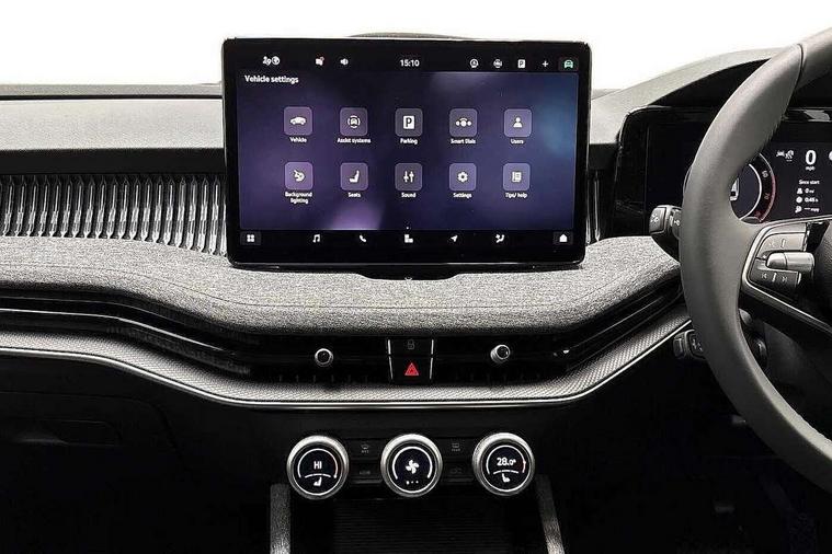 13" touchscreen display with satellite navigation, 4x USB-C ports (2x in front centre console and 2x in rear) (45W), Adaptive cruise control with speed assist, lane assist plus and traffic tram assist, Blind spot detection with door exit warning, Bluetooth system, CareConnect and Emergency Call, ChatGPT functionality, Driver fatigue sensor, Front assist with extended predictive pedestrian protection, Front cross traffic assist, PAS, Quick start all heating software functionality, Rear view camera with washer, Stop/start engine system, Traffic sign recognition, Turn assist with evasive assistance, Virtual Cockpit - 10.25" digital display, Voice control system, Wireless charging for one smartphone (15W) with cooling function, Wireless smartlink apple carplay, SmartLink+ android auto, 8 Speakers, DAB Digital radio, Display cleaner, FM radio connection, Web radio connection, Acoustic side windows and interior noise suppression, Backdrop lighting, Body colour door handles, Body coloured door mirrors, Chrome roof rails, Chrome window surround, Electrically adjustable, heated, folding and driver side auto-dimming door mirrors with integrated indicators and logo projection, Frameless auto-dimming rear view mirror with USB-C, Front windscreen with heat-insulating glass, Ice scraper in fuel tank cap, LED 3rd brake light, Light assist with High beam control, Light assistant (coming/leaving home/tunnel light), Privacy glass, Rear fog light (x1), Rear roof spoiler, Rear side wing doors, Rear windscreen wiper, Tow bar preparation, Unique dark chrome design logo on alloy wheels, Unique dark chrome grille surround with dark chrome rib elements, Windscreen wipers with rain sensor, 12V socket 1x centre console 1x boot, 12V socket and 2x cargo elements in boot, 2 spoke multifunction steering wheel with DSG paddles, 3 seat bench in 2nd row, 4x foldable bag hooks in boot, 60:40 Split folding rear seats, Bottle holders in the front doors 1.5 litre bottle and rear 1.5 litre bottle, Cup holder in front with easy open mat, Front and rear footwell illumination, Front armrest with storage box, Front comfort seats, Heated front seats, Height adjustable driver and front passenger seats with 2-way electric tilt, 4-way pneumatic lumbar support, and extendable thigh support, Height adjustable front and rear head restraints, Height adjustable front passenger seat, Illuminated glovebox, Interior lights with control switches, Isofix child seat fittings in outer rear and front passenger seats, LED front and rear reading lights, Massage function for front seats, Single front passenger seat, Skoda lettering on steering wheel, Storage pockets on back of front seats, Sun visors with illuminated vanity mirrors, Ticket holder on A Pillar, Tri zone climate control, Umbrella in driver's door, 3 rear seatbelts, 8 Airbags - Front driver and passenger, front side driver and passenger, centre, curtain front and rear, drivers knee, Crew protect assist, Driver and passenger seatbelts with warning light, Electronic parking brake, ESC including ABS, EBV, MSR, ASR, EDS, HBA, DSR, RBS, CBC, multi-collision brake (MKB) and Auto hold, Hill hold assist, Power operated child lock in rear doors, Alarm with interior monitoring tilt sensor and back up horn, Backrest remote release from trunk, Electronic engine immobiliser, Keyless start/stop, Remote central locking with SAFE system, Third key, Decorative front door sills,