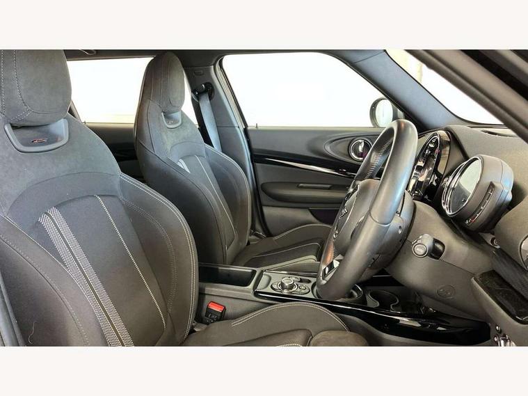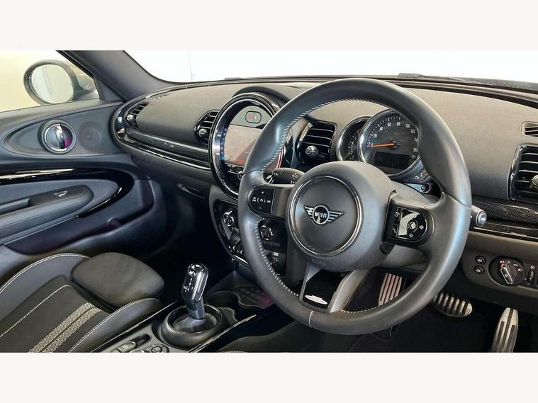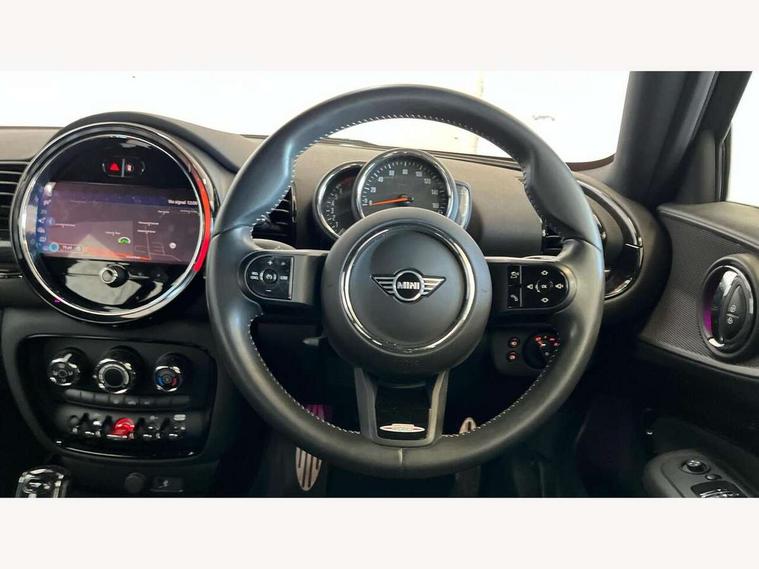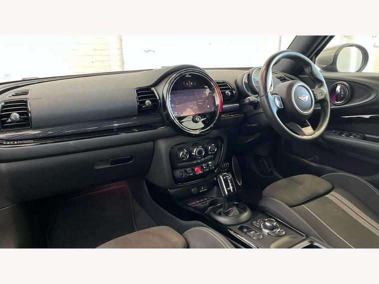 Active Guard incl speed limiting and lane departure functions with auto steering, and front collision warning with brake intervention, Automatic start/stop function with brake energy recuperation, Car sharing preparation, Compatible mobile phone bluetooth with audio streaming, Electro-mechanical speed dependant steering assistance, Instrument cluster, Mini E-call, MINI TeleServices, On board computer, Rear parking distance control, 7 Speed steptronic transmission with double clutch including electronic gear shifter, Double Vanos system, Fully variable valve control, High precision injection, Performance Control, FM tuner and DAB digital radio, A-panel shadow design with integrated scuttle trim, Body colour fuel filler cap, Door sill strips, Dynamic brake lights, Electric windows, Exhaust tailpipe, Heated rear window, Heated windscreen washer jets, John Cooper Works - aerodynamic kit (front and rear apron, spoiler), front and rear sport bumpers and part-painted side sills with door sill finishers, John Cooper Works rear spoiler, LED headlights with closed ring as daytime driving lights, LED rear light with union jack design, Left exhaust tailpipe with chrome finisher, Model logo on rear doors, Piano black exterior, Radiator grille, Rain sensor with auto headlights, Rear fog lights, Rear window wiper, Shadow design bonnet, Silver roof and mirror caps, Special metallic paint, Split rear doors, Sun/heat protection glass, White indicator lenses, 12V Accessory socket in centre console, 360L luggage compartment capacity, 4 lashing eyes in luggage compartment, 60/40 split folding rear seat, Anthracite headlining with grab handles and clothes hooks, Chrome interior highlights, Cupholders, English handbook, Floor mats, Glove compartment, Height and length steering column adjustment, Interior dashboard trim Shadow logo, Interior lighting with 12 basic colours selectable via toggle switch in roof, Interior tread plates in Shadow design, Isofix rear child seat preparation, John Cooper Works leather gearshift lever and handbrake gaiter, John Cooper Works sports seat with integrated headrest, adjustable thigh support and John Cooper Works logo, LED reading lights, vanity mirror lights, front foot well light and spotlight on front seats, Lower roof section Shadow logo, Manual air conditioning, Multifunction steering wheel, Nappa leather steering wheel with JCW badge, Stainless steel pedals, Storage compartments in doors, Sunvisors with vanity mirrors, Toolkit, Excitement pack - Clubman, Extended interior lighting pack - Mini Clubman, Navigation pack - Clubman, 2 tone horn, 3 point seatbelts on all seats, 6 Airbags - front, side, head and seat belt tensioners, Anti-lock braking system (ABS), DSC - Dynamic Stability Control, Electronic handbrake, Front and rear disc brakes, Tyre pressure monitoring system, Alarm system with tilt sensor, monitoring doors, bonnet interior and tailgate, Auto drive away locking, Deadlocking function, Electronic vehicle immobiliser, Locking wheel bolts, Start/stop toggle with keyless go, Piano black interior trim, 19" John Cooper Works circuit spoke alloy wheels, Tyre repair kit,
