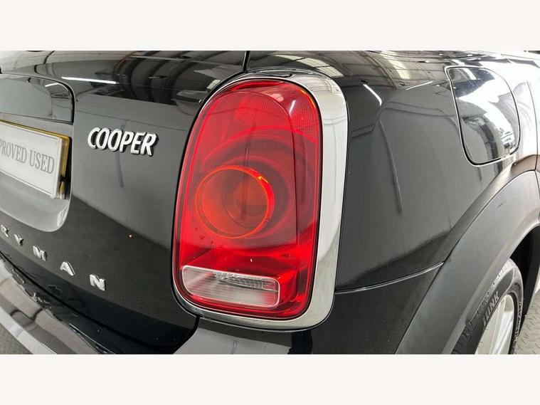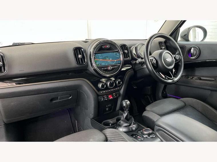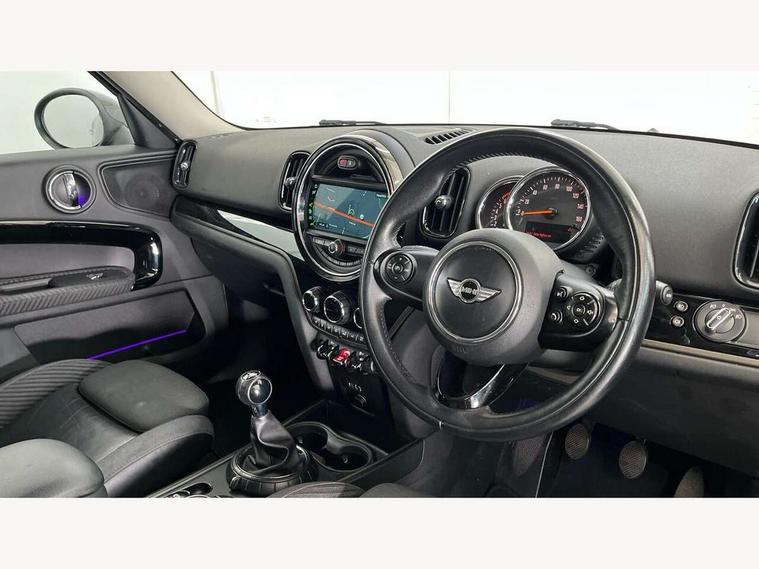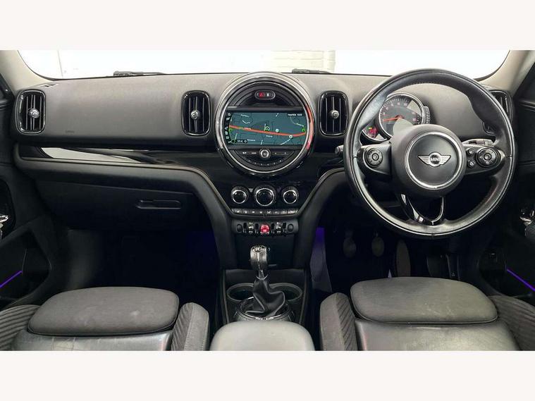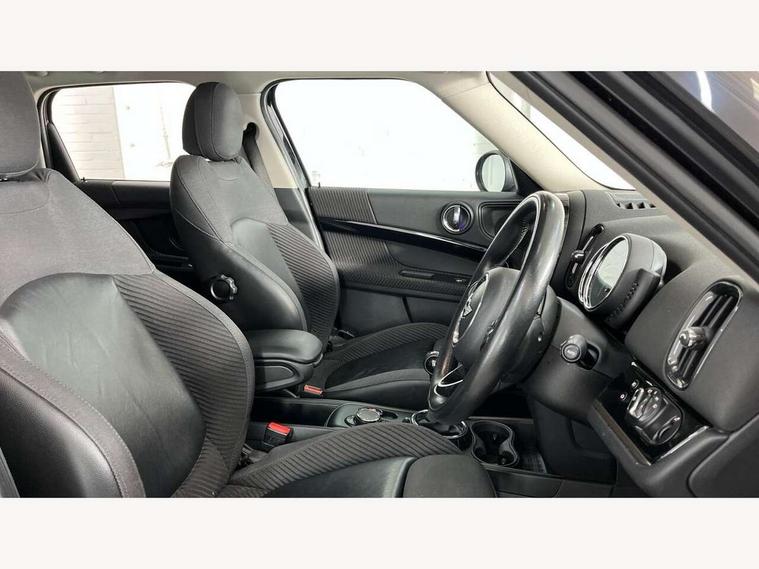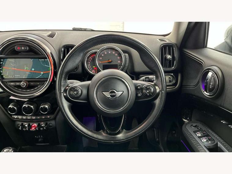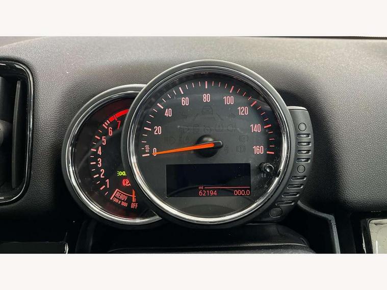 Brake pad wear indicator warning light, DTC - Dynamic traction control, Exterior temperature gauge, Intelligent emergency call, MINI TeleServices, Navigation system, On board computer, Personal Profile, Service interval indicator, Servotronic speed sensitive power steering, Electronic differential lock, Auxiliary input socket, DAB digital radio module, MINI Connected, MP3 compatible radio/single CD player, Radio visual boost, Anti dazzle rear view mirror, Chrome door handles, Chrome exhaust tailpipe, Chrome headlight surround, Chrome plated radiator grille, Chrome window surround, Electric front windows + one touch + anti-pinch, Electrically adjustable door mirrors, Follow me home headlights, Heated door mirrors/heated windscreen washers, Heated rear window with automatic switch off, Metal look door sill finishers, Rain sensor including auto headlights activation, Rear wiper, Roof spoiler, White indicator lights, 12V power point front, 2 cupholders in front centre console, 4 lashing points to secure luggage, 40:20:40 split folding rear seats, Centre console storage box, Chrome interior door handles, Driver/passenger sunvisors, Front and rear headrests, Front and rear Isofix child seat preparation, Front and rear velour floor mats, Front centre armrest with storage compartment, Front interior light, Front passenger grab handle, Front seat backrest storage nets, Heater with recirculation function, Height/reach adjust steering wheel, Luggage compartment lighting, Multifunction steering wheel, Rear grab handles, Sensatec gearshift and handbrake, Storage compartments in doors, Toolkit in luggage compartment, Interior lights pack - Countryman, MINI Excitement Pack - Countryman, 3 point automatic seatbelts, 3 point seatbelts on all rear seats, ABS, Cornering brake control (CBC), Crash Sensor - activates hazard/interior lighting + unlocks doors, Driver and passenger airbags, Driver and passenger side airbags, DSC - Dynamic Stability Control, Electronic brake force distribution, Electronic parking brake, Front curtain airbags, Front passenger airbag deactivation, Fuel cut off safety device, Hill start assist, Pyrotechnically pre-tensioned front seatbelts, Tyre pressure warning, Automatic door locking, Keyless Start, Locking wheel bolts, RF remote control central locking, Second remote key, Thatcham category 1 alarm + immobiliser,