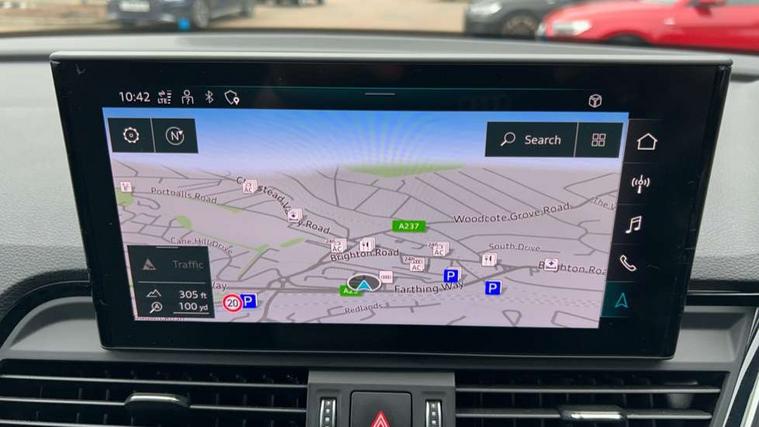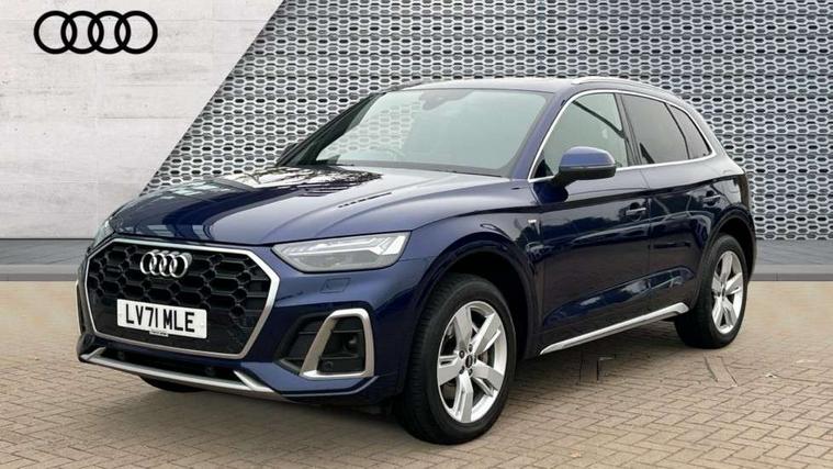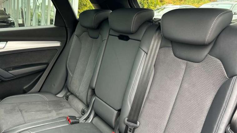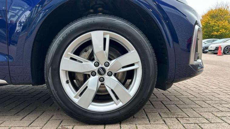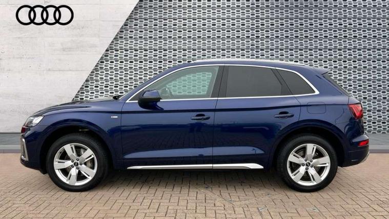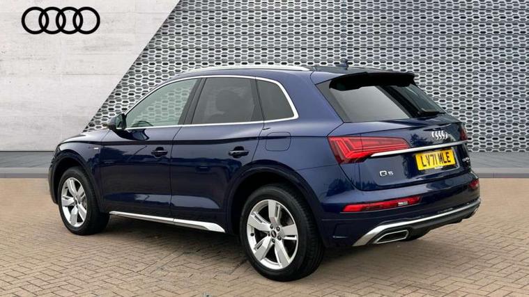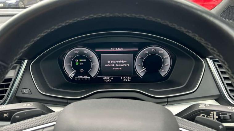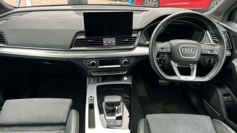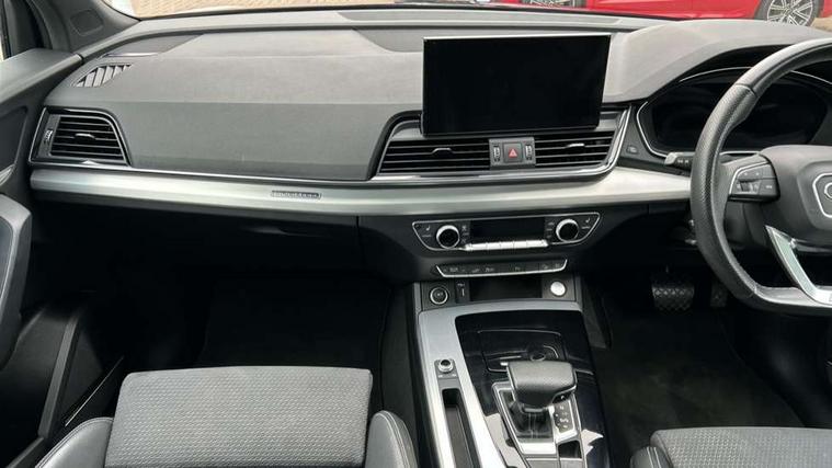 Audi connect safety and service (e-call), Audi connect with Amazon Alexa Integration, Audi drive select, Audi virtual cockpit plus with 12.3" screen and three different layout designs, Audi wireless smartphone interface, Automatic start-stop system with coasting functionality and efficiency programme, Bluetooth interface, Electro - mechanical power assisted steering, MMI navigation plus with 10.1" touch screen, Power tailgate, Reversing camera, Service interval indicator, Voice control system with Audi hotword activation "Hey Audi", 3 pin 10 amp domestic charging cable, Dynamic suspension, Quattro on demand, Type 2 mode 3 22kW 32 amp charging cable, Type 2 socket for AC charging, 2 x USB charging port with aux input socket, DAB Digital radio, Acoustic windscreen, Aluminium roof rails, Audi matrix LED headlights with dynamic front and rear indicators, Auto dimming rear view mirror, Automatic headlights and windscreen wipers, Body colour bumpers, Body colour door mirrors, Body colour rear diffuser with matt aluminium silver surrounds, Body colour underbody protection, Chrome plated exhaust trims, Door sills in Selenite silver, Electric adjustable/heated/folding door mirrors, Front air inlet surrounds in aluminium, Front and rear electric windows, Front radiator grille in honeycomb design, Headlight washers, Lower bumpers painted in contrast Manhattan grey, Rear chrome trim strip below lights, Rear privacy glass and rear side windows, Rear spoiler, Rear wiper, Roof bars, S Line badges on the front wings, S Line front and rear bumpers, S Line side skirts, 3 rear headrests, 40:20:40 split folding rear seat with rear centre armrest, Black cloth headlining, Comfort front centre armrest, Contrast stitching on seats, steering wheel and gear lever gaiter, Deluxe 3 zone electronic climate control, Front/rear floor mats, Gear lever in black leather, Heated front seats, Height adjustable front head restraints, Height/reach adjustable steering column, Illuminated door sill trims with S logo, ISOFIX child seat mounting and top tether, Manual seat adjustment with 4-way electric lumbar support, Rear seat bench plus, Sunvisors with vanity mirrors, Trunk roller cover, High gloss pack - Q5, LED interior light pack - Q5, 3 point seatbelts on all seats, 6 airbags - Driver, front passenger, curtain and side airbags, Electrically operated child locks on rear doors, Electromechanical parking brake, Electronic stabilisation control including ABS, ASR and EDL, Front passenger airbag deactivation, Hill descent control, Hill hold assist, Multi collision brake assist, Pop-up bonnet for pedestrian protection, Pre sense city, Seat belt force limiter, Seatbelt monitoring, Tyre pressure warning, Warning triangle and first aid kit, Anti theft alarm, Anti-theft wheel bolts, Keyless Go access/ignition system, Matt brushed aluminium inlays, Tool kit, Tyre repair kit,