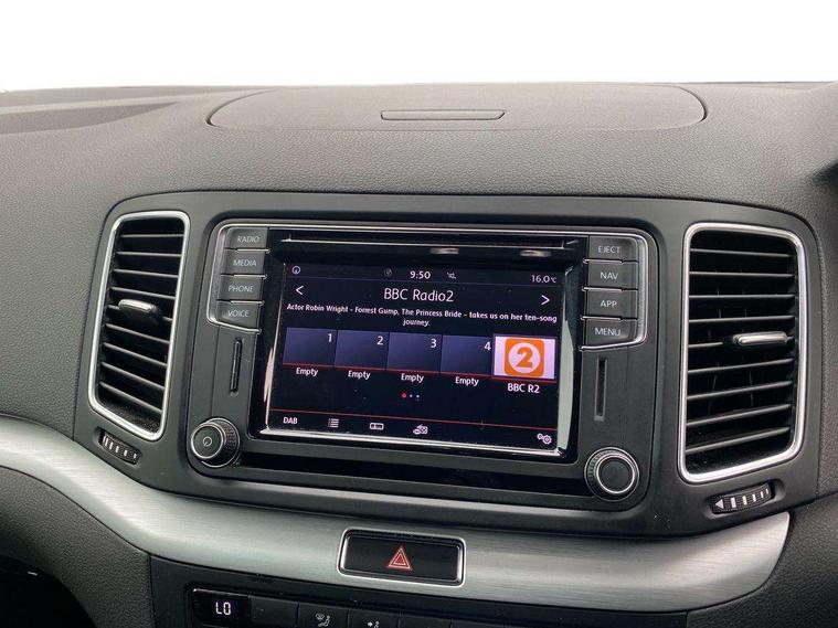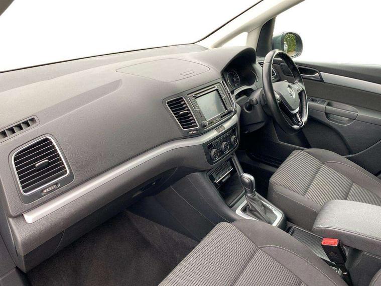 Adaptive cruise control, Bluetooth telephone and audio connection for compatible devices, Door/boot open warning light, Driver alert system, Dynamic traffic sign recognition, Front and rear parking sensors, Front assist with city emergency braking and speed limiter, Lane assist and camera controlled warning system, Low washer fluid warning light, Service interval indicator, Speed sensitive power steering, Start/Stop function, Warning buzzer and light for front seatbelts unfastened, We Connect Go Dongle, Battery regeneration during braking, Stop/start function, 2 USB charging points in 2nd row, Auxiliary socket for external MP3 player, Multi device interface (MDI) with USB connection, Music playback - MP3, WMA and AAC files, Premium USB cable for Apple or Android smartphone compatibility, SD card slot, SMS Functionality, Title and cover art display, Auto dimming rear view mirror, Automatic coming/leaving home lighting function, Body colour bumpers, Body colour door handles, Body colour door mirrors with integrated indicators incorporating LED Technology, Chrome louvres in grille, Chrome trimmed front air intake surrounds, Chrome trimmed side windows, Dusk sensor + auto driving lights, Electrically adjustable and heated door mirrors, Front and rear electric windows, Front windscreen wiper with intermittent wipe and 4 position delay, Gloss black radiator grille, Heated rear window, High level 3rd brake light, Intermittent rear wash/wipe, Load sill protection, Rain sensor, Rear tinted glass 65% approx light absorbing from B pillar backwards, 12V socket in centre console and luggage area, 2 single seats foldable in 3rd row, 2nd row outer seats floor storage compartment in footwell, 2x Rear coat hooks, 3 single seats foldable in 2nd row, 3 spoke multifunction leather steering wheel with gear knob, radio controls, multifunction computer and paddle shift, 4 way adjustable front head restraints, 5 Rear head restraint, Branded points of interest, Carpet mats - front, 2nd and 3rd row, Centre dash storage with lid, Easy folding seating system 2nd and 3rd row seats, Electric adjustable driver's seat with backrest and lumbar support, Folding front centre armrest + storage, Front comfort seats, Front cupholders x2 with covers, Front passenger seat height + lumbar support, Front seat back map pockets, Front seatback folding tables, Front/rear door stowage bins, Height/reach adjust steering wheel, Illuminated vanity mirrors, Interior light with delay, LED reading lights, Load lashing points in luggage compartment chrome plated and folding x 2, rigid x 2, Lockable, illuminated, cooled glovebox, Luggage area lamp, Luggage hooks, Rear seat easy entry, Retractable/removable luggage compartment cover, Storage compartment in 2nd row centre console, Storage compartment in luggage compartment, Storage compartment in rear doors, Storage compartment in roof console, Storage drawers under front seats, Sun visors, Through load system, 3 point rear seatbelts, ABS, Automatic post collision braking system, Curtain airbags for 1st/2nd/3rd rows, Door open warning reflectors, Driver/Front Passenger airbags, Drivers knee airbag, Electronic child locks for rear doors and rear electric windows, Electronic parking brake with auto hold, ESP with EDL + ASR, Front seat side impact airbags, Front ventilated disc brakes and rear disc brakes, Height adjustable front 3 point seatbelts + pretensioners, Hydraulic Brake Assist (HBA), Passenger airbag deactivation system, Tyre pressure loss indicator, Alarm with interior protection, Electronic engine immobiliser, Remote central locking with 2 remote folding keys, Speed sensitive auto door locking (can be switched off), Triangle titan decorative inserts in dash centre console and front doors, Self sealing tyres, Tyre mobility kit including compressor and sealing foam,