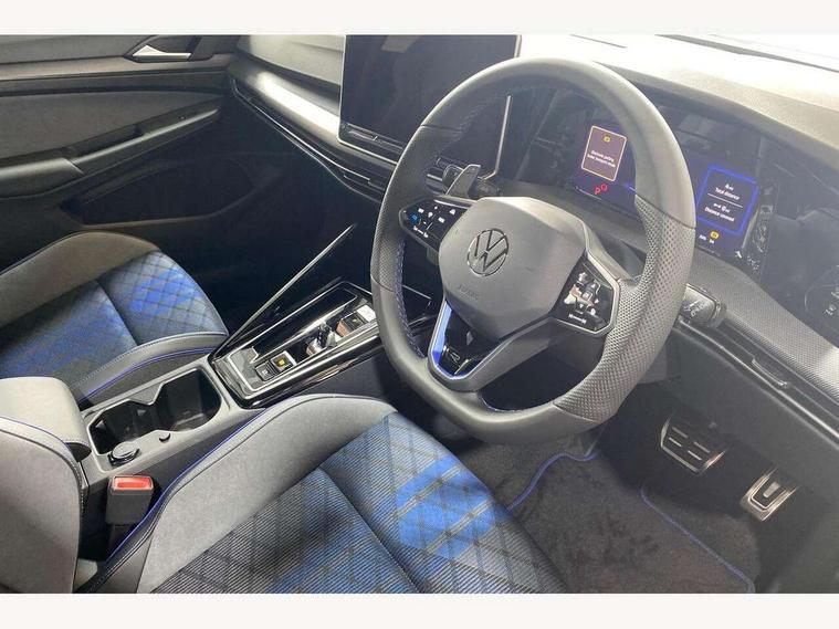 Activated carbon canister, Adaptive cruise control (ACC), Advanced driver attention and drowsiness monitor, Dynamic road sign display, E-Sim card for online connectivity, eCall emergency call system, Multi-color Digital cockpit pro, selection of different info profile possible, Multifunction front facing camera for distance control, Navigation system, Oncoming vehicle braking when turning including swerve support, Side assist blind spot lane change system, rear traffic alert and exit warning system, Speed limiter, Speedo, rev counter, electronic odometer, trip, service interval display, exterior temperature and fuel gauge, Traffic jam assist, Voice enhancer and voice control, Warning signal and warning light for front and rear seatbelts not fastened, We connect plus preparation, We connect preparation, Wireless app connect, All wheel drive - 4Motion, Petrol Particulate Filter, Start-stop system with battery regeneration (recuperation - energy recovery during braking), XDS electronic differential lock for improved traction and handling, 2 USB C ports in front, 2 USB charging sockets on the centre console in the rear charging capacity upto 45W, Digital radio reception (DAB), Diversity antenna for FM reception, Gaming platform via car app, Infotainment system with 12.9" display, Mobile phone interface with inductive charging feature, 3rd brake light, Auto dimming rear view mirror, Automatic headlamp activation with Coming home and Leaving home feature, Body colour door handles, Exterior mirror housings in matte chrome, Exterior mirrors convex on the left and aspherical on the right, Front and rear electric windows, Front fog lamps and cornering light, Heat insulating windshield made of laminated glass, LED matrix headlights with ambient light V2, advanced high beam, dynamic range contol with cornering, LED rear lamp with indicator, poor weather, LED separate daytime running light, R name plate, Rain sensor, Rear fog light on one side and reversing lights on both sides, Rear side wing doors, Rear tinted glass 65% light absorbing from B pillar backwards, Rear windscreen washer and wiper with interval delay, Remote electrically foldable door mirrors, puddle lights and reverse activated passenger's door mirror, Welcome light with surround lighting, 12V socket in front centre console, 12V socket in luggage compartment, 3 rear head restraints, 3 seat bench in 2nd row, 30 colour ambient lighting, illuminated center console storage compartment in front, Air care climatronic 3 Zone automatic climate control with rear air conditioning control panel, Aluminium gearshift handle, Brushed stainless steel pedals, Chrome plated radiator grille inserts, air vent surrounds and light switch surrounds, Entry lights, Front + rear black carpet mats, Front centre armrest, Integrated front head restraints, ISOFIX anchors for child seats on outer rear bench seats and on front passanger seat compatible for i-Size, Luggage compartment lighting, Rear cupholder and loadthough, Single front passenger seat, Soul black instrument panel, Soul black roof lining, Split folding backrest with centre armrest and unsplit rear seat bench, Sun visors with illuminated vanity mirrors, Driver assistance pack - Golf Estate/Hatchback Auto, R styling pack - Golf, Technology park and comfort pro package - Golf Hatchback, 3 point height adj front seatbelts + pretensioners, 3 rear three point seatbelts, ABS, Autonomous emergency braking front assist with pedestrian and cyclist monitoring, Child locks on rear doors, Driver and front passenger airbag with front passenger airbag deactivation, Electronic parking brake with auto hold, ESC (Electronic Stability Control), Extended pedestrian protection measures, Front blue brake callipers with R logo, Hill start assist, Rear disc brakes, Two tone horn, Tyre pressure loss indicator, Volkswagen roadside assistance, Anti theft wheel bolts, Preparation for alcohol interlock, Sporty vehicle dynamics, Tool kit for tyre mobility set, Tyre mobility kit Includes 12V compressor and tyre sealant,