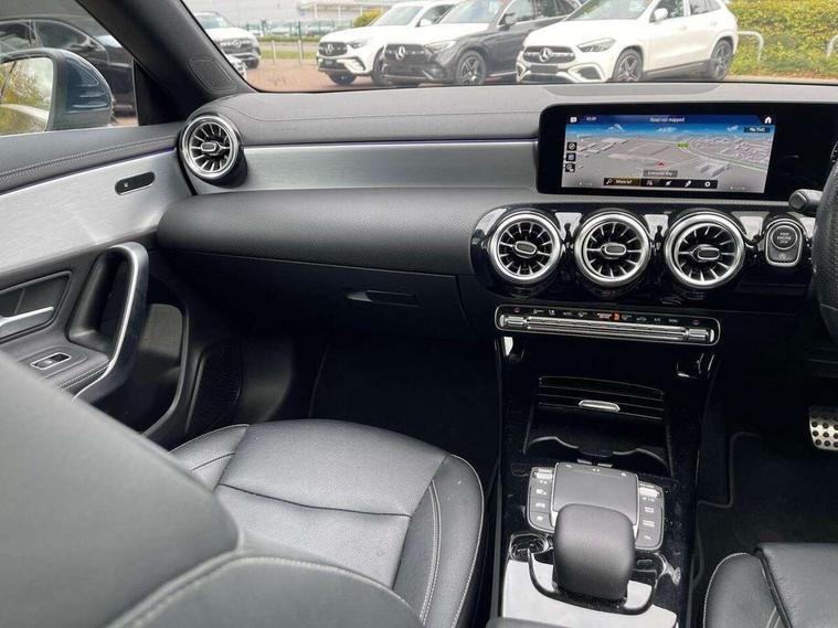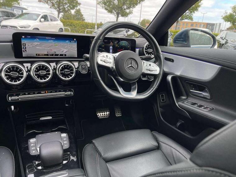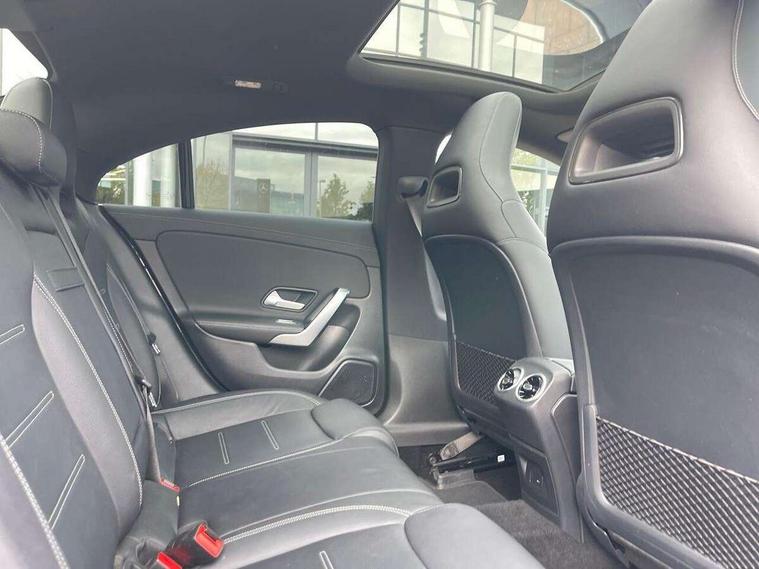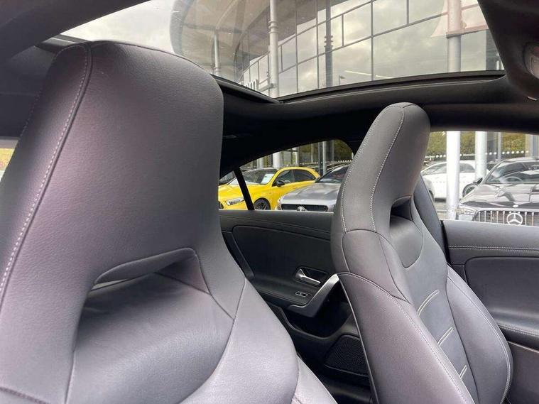 10.25 inch Instrument display with digital cockpit, 10.25 inch touchscreen central media display, Attention assist - Monitors steering behaviour and long journey fatigue, Bluetooth connection, Car wash mode, DYNAMIC SELECT with a choice of driving modes (ECO, Comfort, Sport and Individual), ECO start/stop function, Fluid level warning indicator for fuel, oil, coolant and washer fluid, Hard-disk navigation, Hey Mercedes Voice activation, Lamp failure indicator, Mercedes me connect including emergency call system, accident recovery, breakdown and maintenance management, Mercedes me remote services, Outside temperature gauge, Owners manual and service booklet in English, Pre-installation of private car share, Preinstallation for Mercedes Benz link, Radio aerial integrated into front and rear windshields, Service indicator (ASSYST), Smartphone integration with Apple CarPlay and Android auto, Traffic sign assist, Trip computer in multifunction display with current consumption indicator, 7G-DCT 7 speed automatic transmission, Lowered comfort suspension, Rear axle multi-link, DAB digital radio tuner, MBUX multimedia system with DAB digital radio and touchpad including satellite navigation, Mid-range sound system, USB (type C) ports (2) in stowage compartment and 1 in front of centre console, Adaptive brake lights, AMG body styling with AMG front apron and rear apron and visible exhaust tailpipe in chrome trim elements, AMG bodystyling side skirts, Auto headlights, Body colour bumpers, Body colour door handles, Chrome beltline strips, Chrome weather strip, Diamond radiator grille pins in chrome with silver painted louvres and chrome insert, Electric panoramic sliding sunroof, Electric windows, Electrically adjustable and heated door mirrors with integrated LED indicators, Exhaust system with 2 Visible tailpipe trim elements and rear apron with trim in chrome, Headlamp assist automatic headlamp activation, Heated glass rear windscreen + timer control, High level LED third brake light, Integrated LED daytime running lights, Interior mirror with black reading lamps and frameless, LED tail lamp, Multibeam LED headlamps with adaptive highbeam assist plus, Privacy glass with dark tinting on rear side windows and rear window, Rain sensing windscreen wipers with two sensitivity settings, Rear boot, Rear fog lamp, Rear side wing doors, Window line trim strip in chrome, 3 seat bench in 2nd row, 3 spoke flattened bottom nappa leather multifunction steering wheel with perforated leather in grip area, 40:20:40 split folding rear seat backrests, Air conditioning - Two zone thermotronic luxury automatic climate control with display, Air vents with surround in silver chrome, Automatic child seat recognition sensor, Black roof lining, Brushed stainless steel sports pedals with rubber studs, Floor mats with stitched AMG lettering, Front centre armrest with stowage, Galvanished gear shift paddles on steering wheel, Heated front seats, Illuminated front door sills with changeable cover, Illuminated glove compartment stowage, Interior lighting - 64 colour Ambient lighting, Luggage net on driver/front passenger seat backrest, Manually height and reach adjustable steering column, Rear armrest with two integral cup holders for drinks, Rear head restraints, Single front passenger seat, Sport seats with fixed head restraints, Stowage compartment in centre console with retractable cover, Sunvisors with illuminated vanity mirrors, Touchpad on center console, Twin front cupholders, Two outer rear seat isofix and top tether child seat fixing points, Keyless go pack - CLA, Light and sight pack - CLA, Mirror pack - CLA, Parking package - CLA, Seat comfort pack - CLA, Active bonnet pedestrain safety measure which detects an impact and raises bonnet by 65mm, Adaptive brake assist with hold function and hill start assist, Anti-lock braking system (ABS), Black seat belts, Bonnet with power domes, Brake pad wear warning indicator, Childproof locks manually operated for rear doors and electrically operated for rear power windows, Crash responsive emergency lighting, Driver and front passenger head and sidebags, Driver and front passenger windowbags, Drivers knee airbag, Dual stage driver and front passenger airbags, Electric parking brake, Electronic stability programme with acceleration skid control, ESP curve dynamic assist, Front and rear seatbelt reminder, Front passenger seat occupancy sensor, Three point rear seat belts, Tyre pressure monitoring system, Warning triangle and first aid kit, Remote central locking and crash sensor with emergency opening function, Urban guard vehicle protection system with immobiliser and interior protection, Light aluminium with longitudinal grain interior trim, 18" 5 twin spoke design alloy wheels painted in titanium grey with high sheen finish, Summer tyres, Tirefit tyre sealant kit,